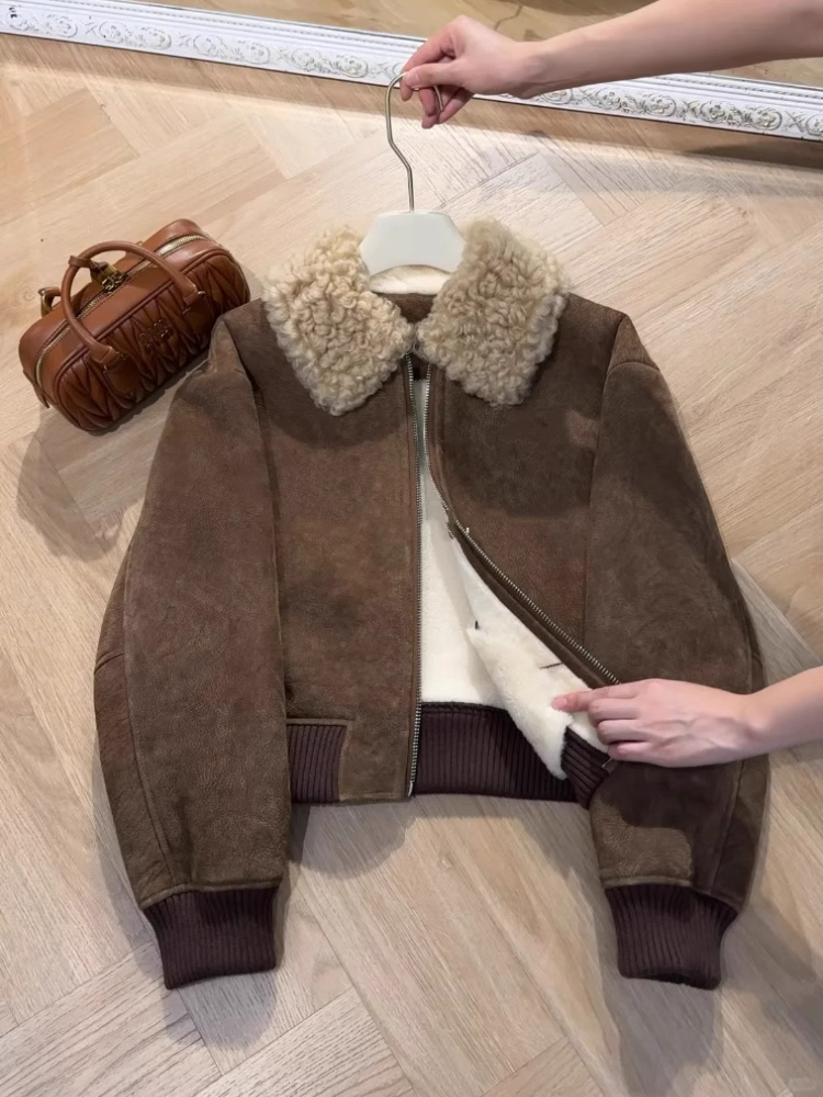 小衆韓系休閒高級感復古短款羊羔毛外套女冬季寬松顯瘦保暖洋氣潮