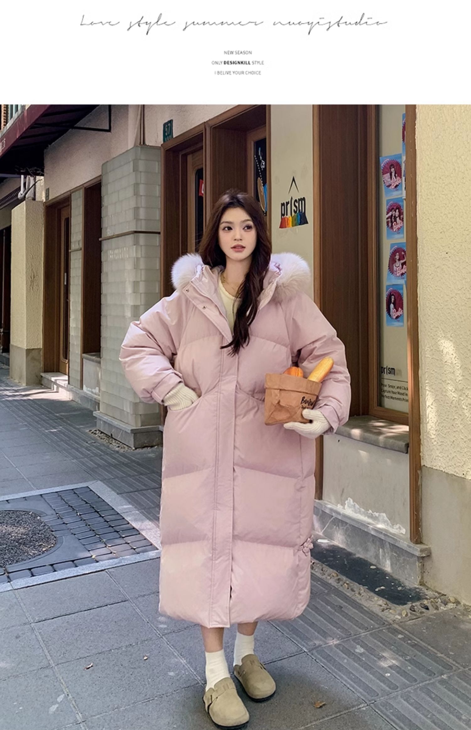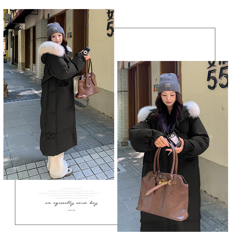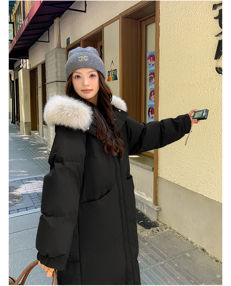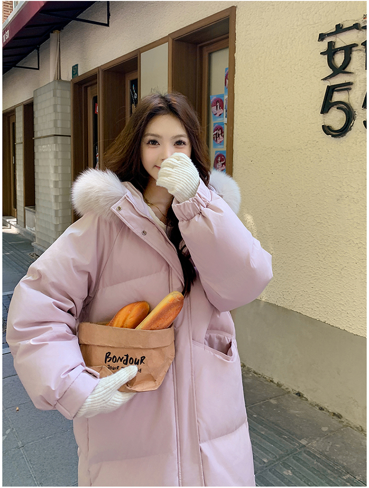 粉色長款羽絨服女2025新款冬季毛領加厚過膝巨好看的冬裝外套女款