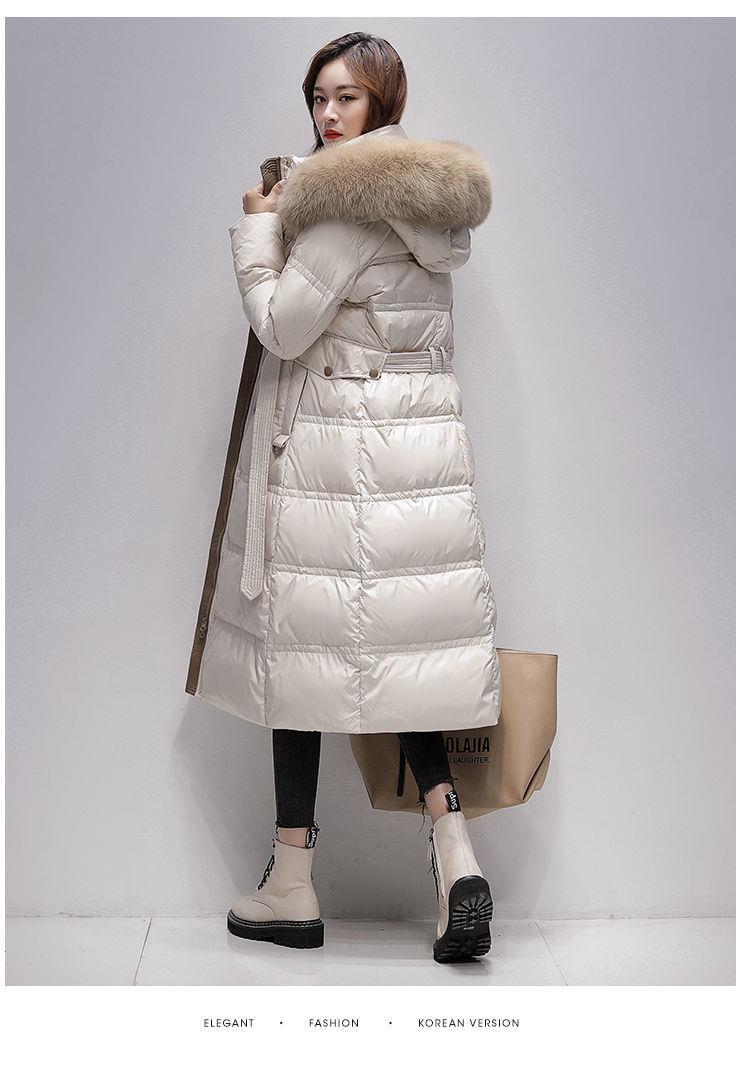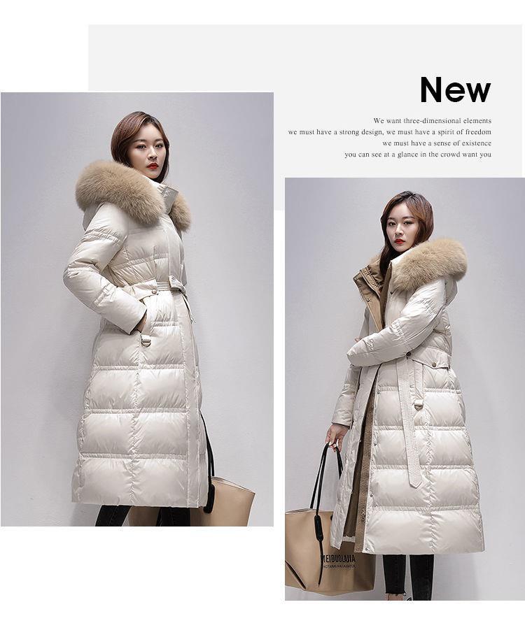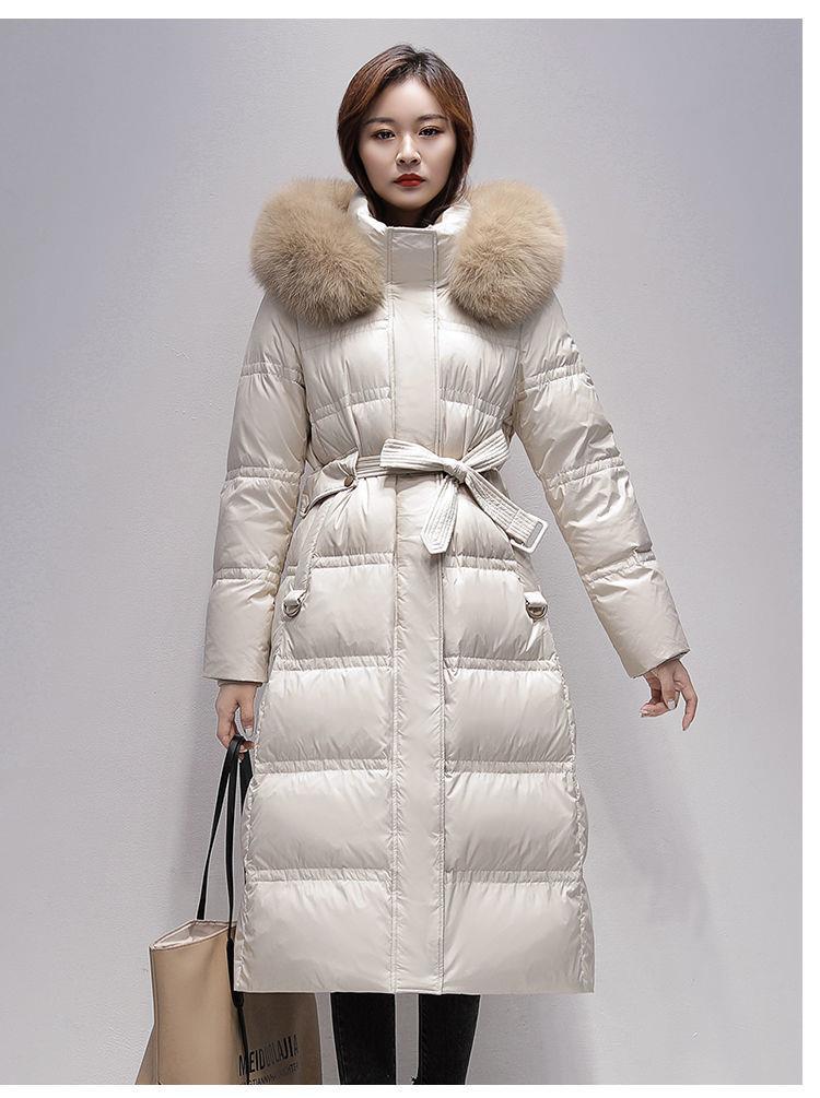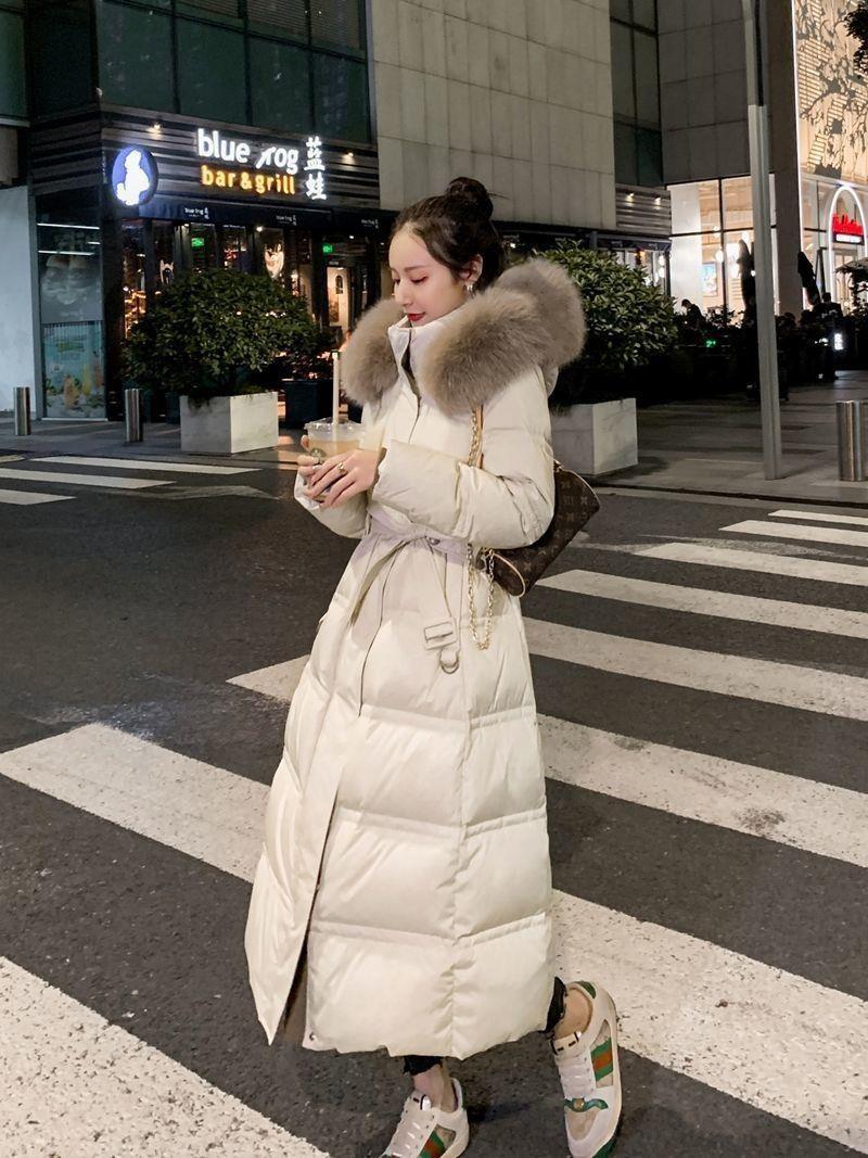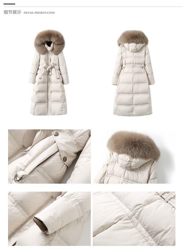 真狐狸毛領羽絨服女2025年爆款新款收腰顯瘦中長款過膝白鴨絨外套