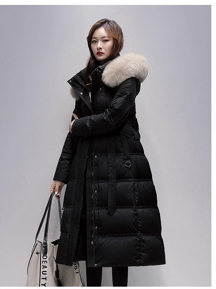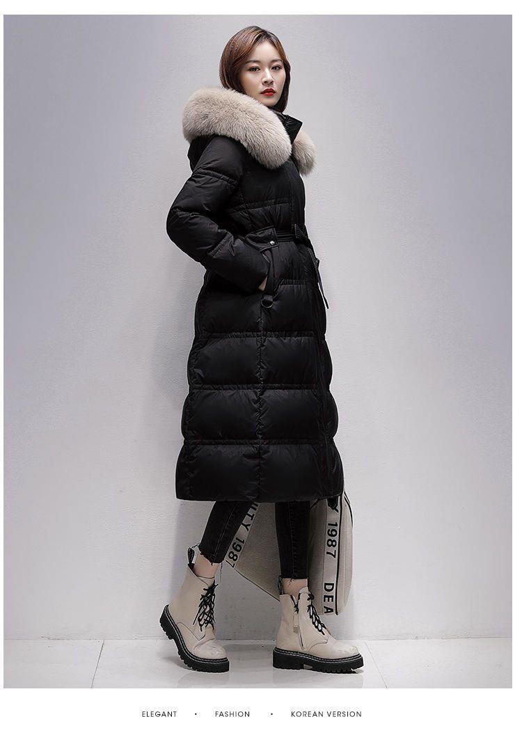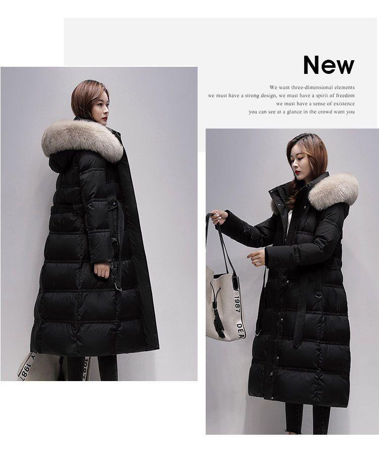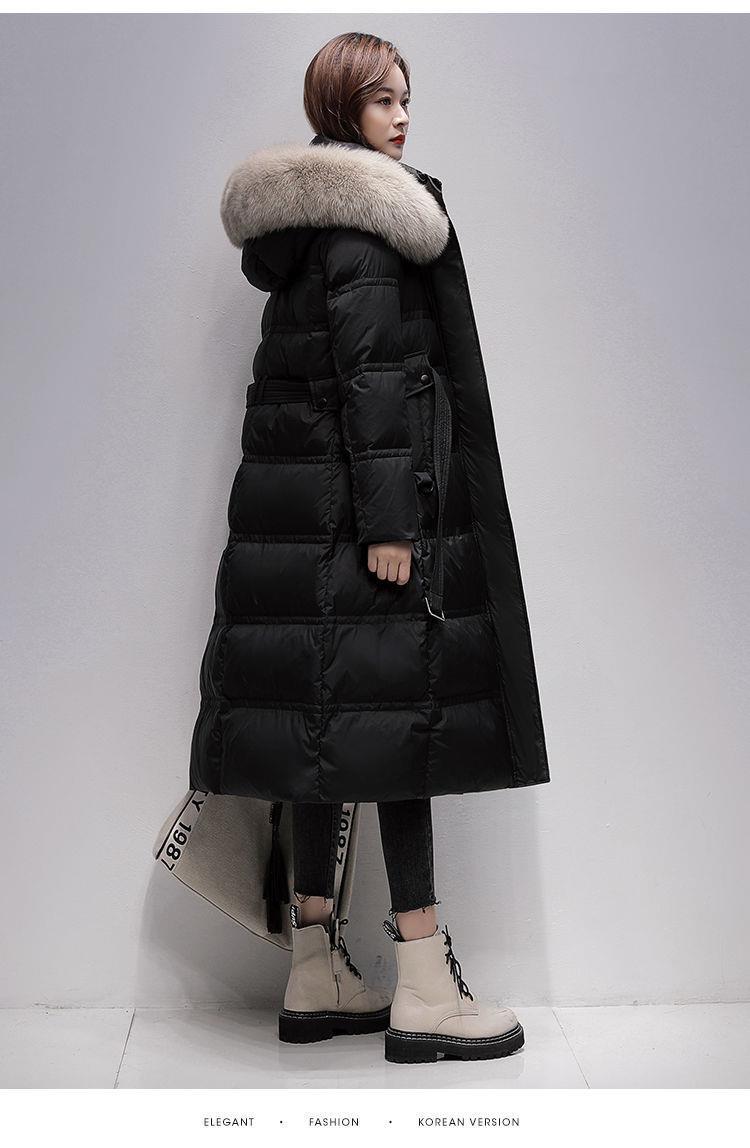 真狐狸毛領羽絨服女2025年爆款新款收腰顯瘦中長款過膝白鴨絨外套