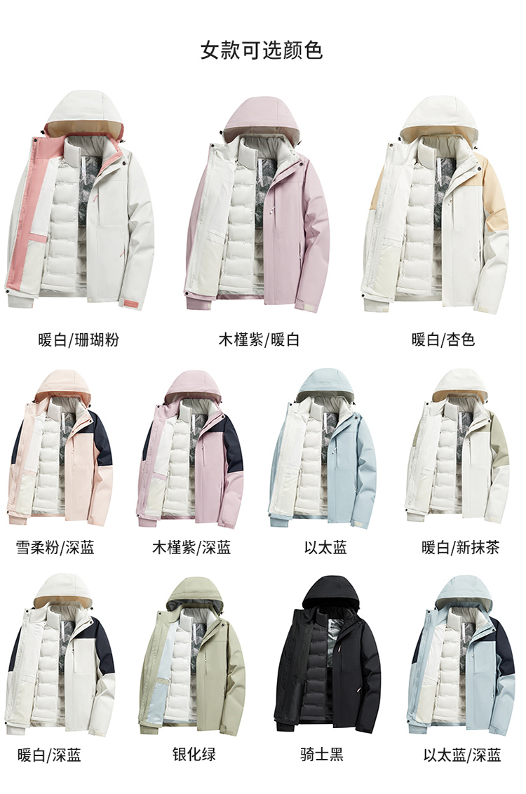 稻草人羽絨沖鋒衣女加絨加厚2025新款三合一可拆卸羽絨內膽外套男