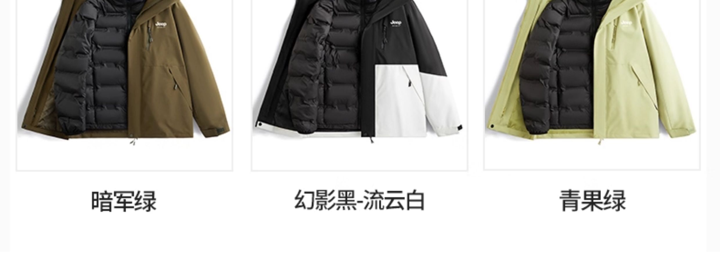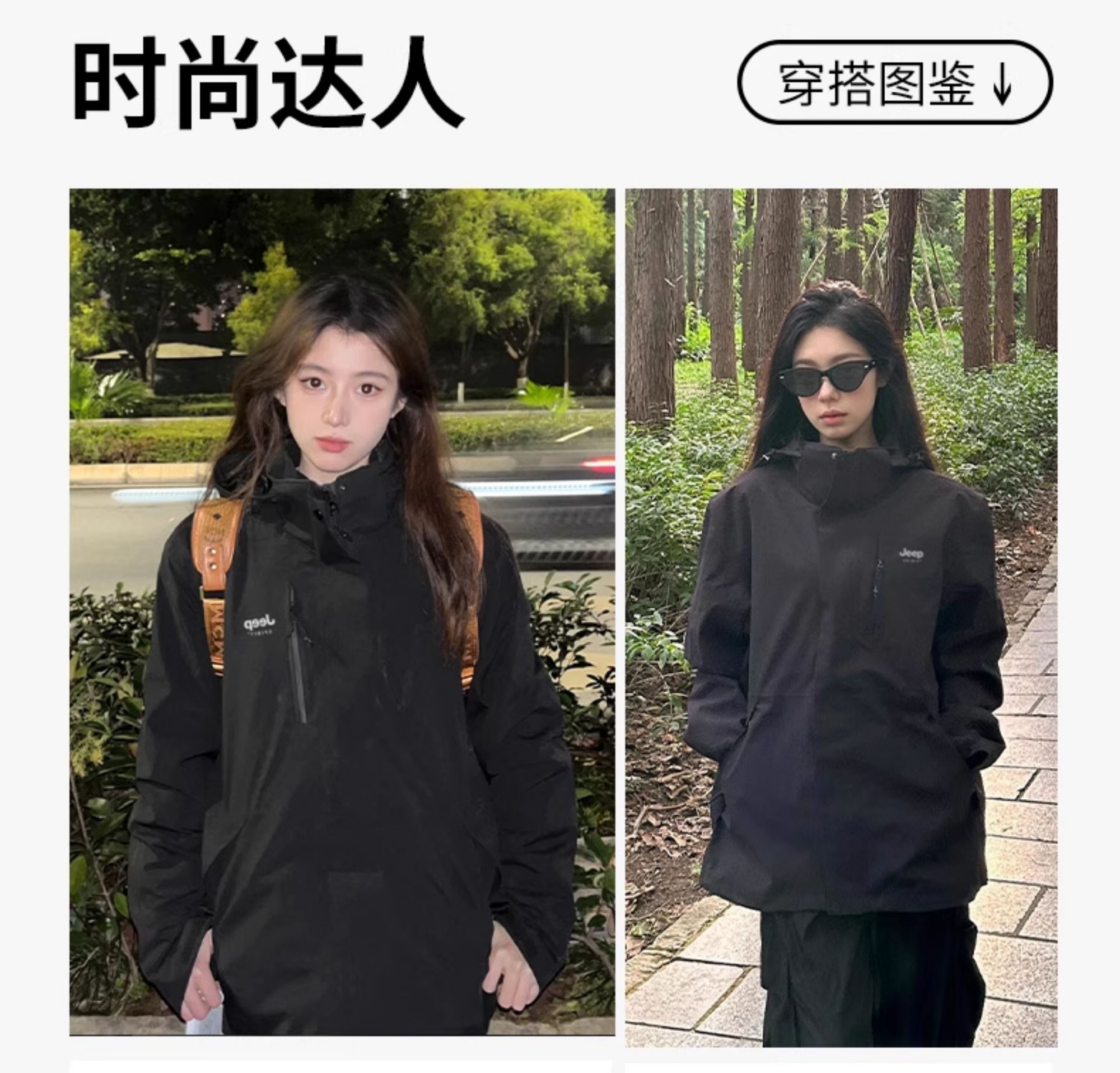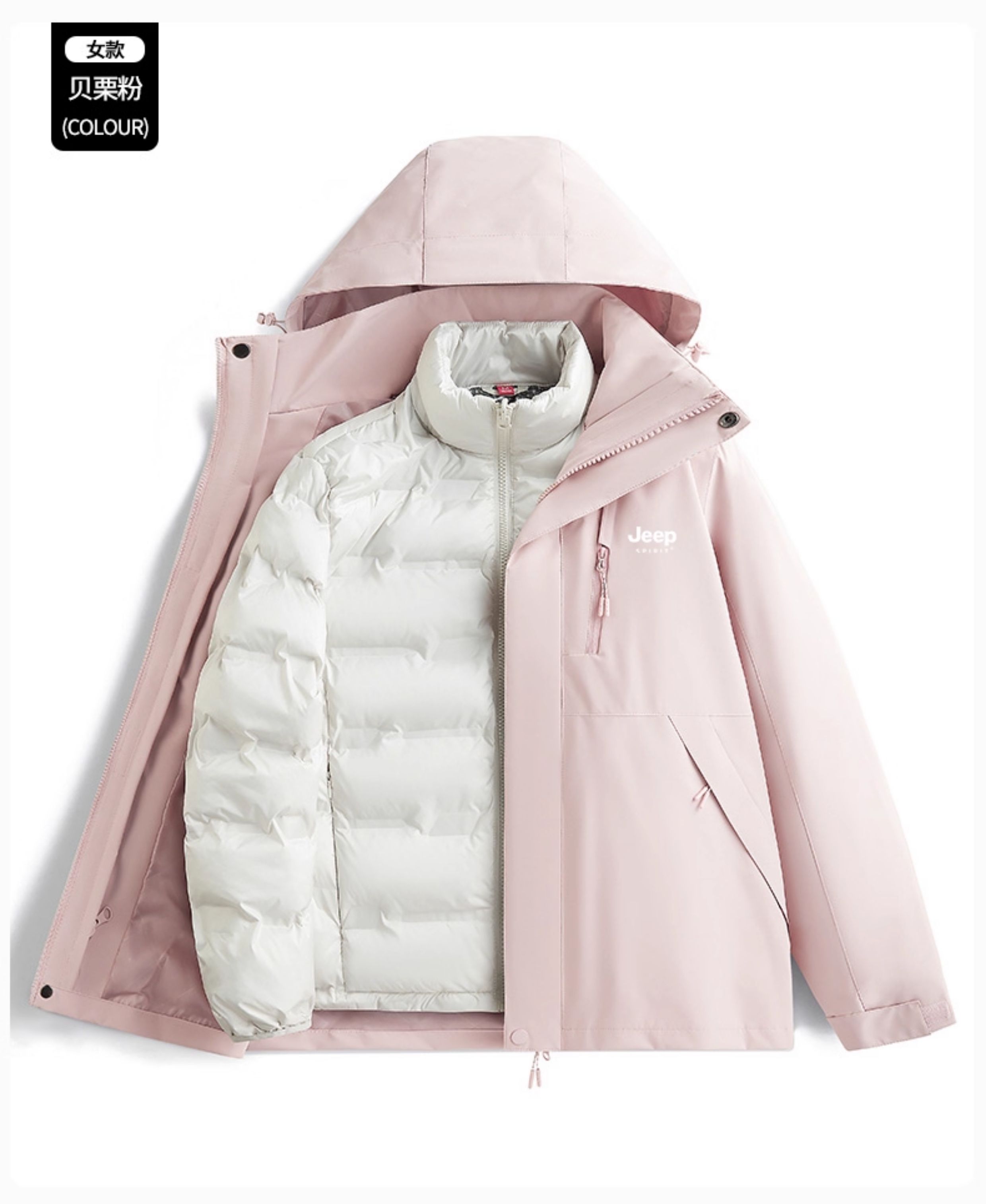 JEEP SPIRIT沖鋒衣羽絨服女2025新款冬季三合一戶外防風加厚外套