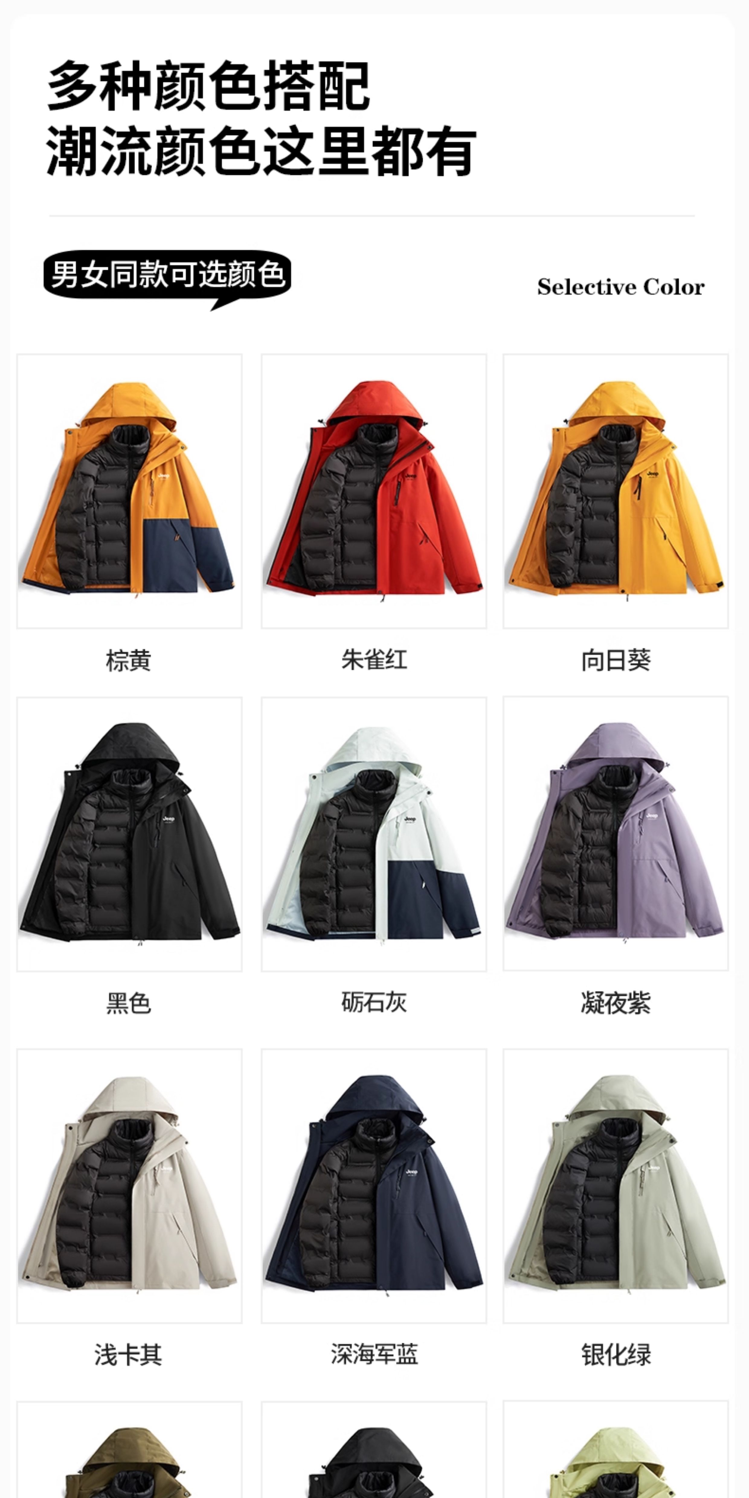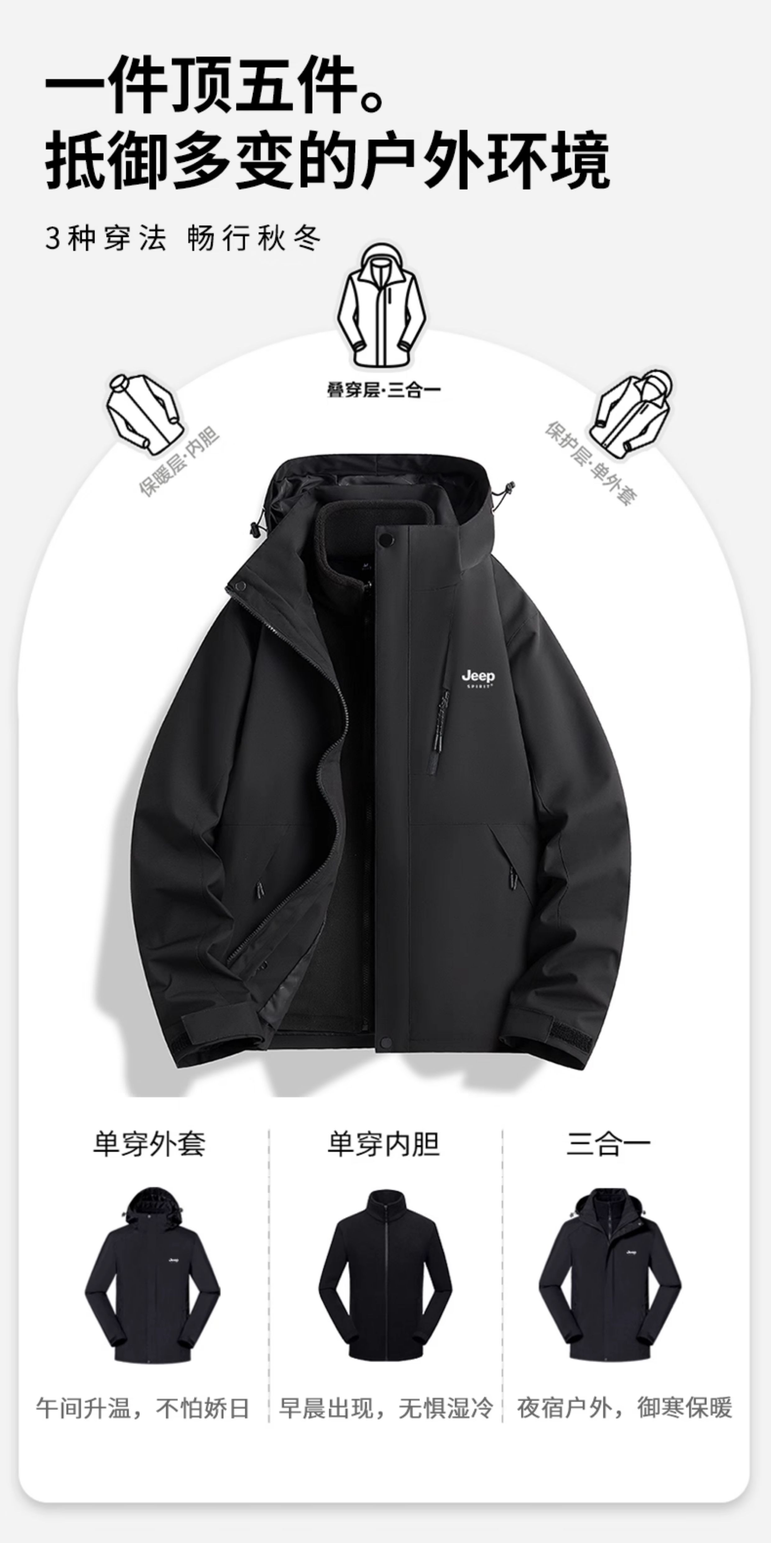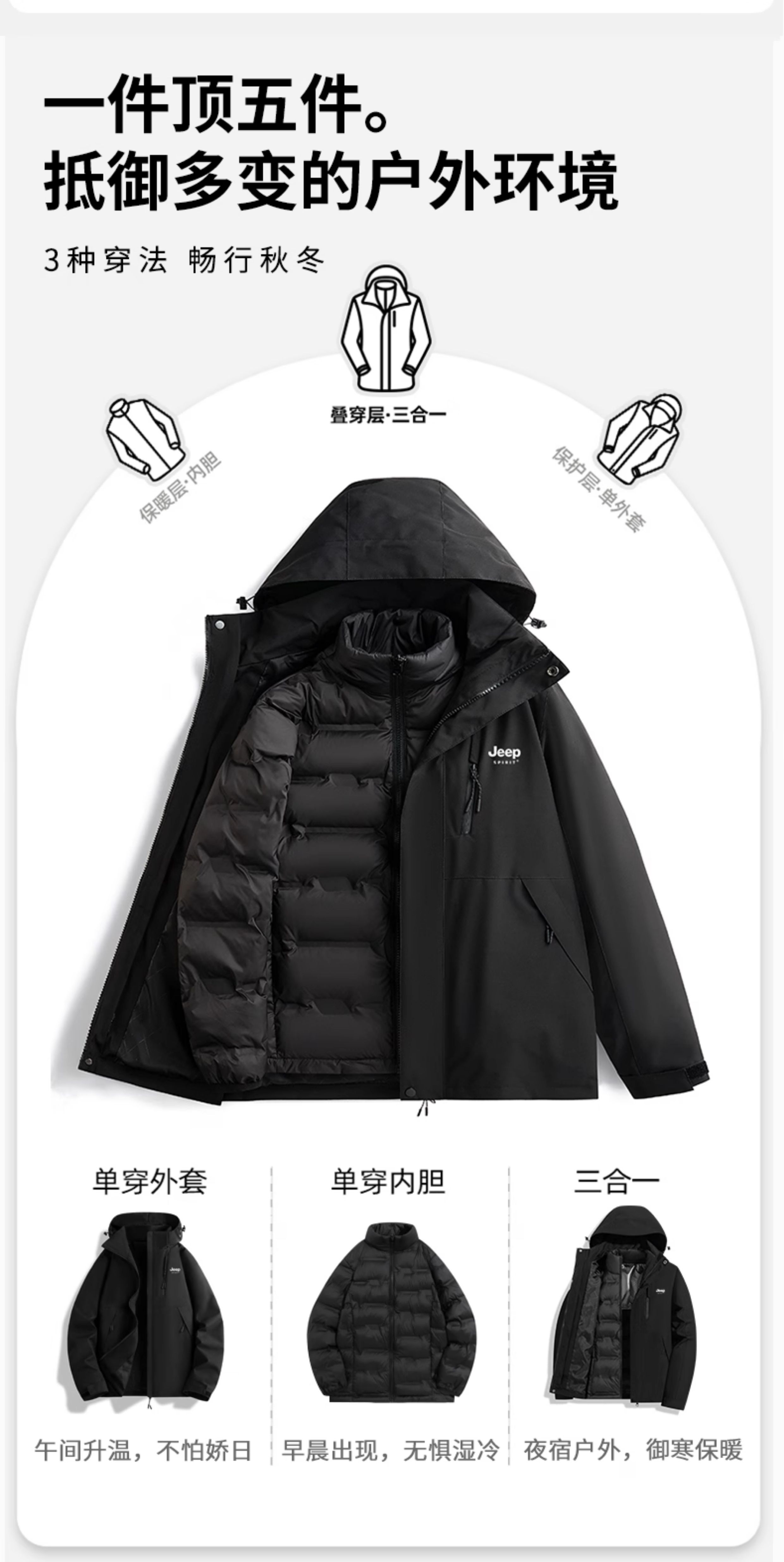 JEEP SPIRIT沖鋒衣羽絨服女2025新款冬季三合一戶外防風加厚外套