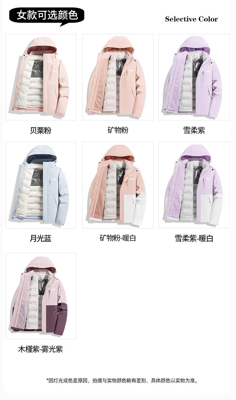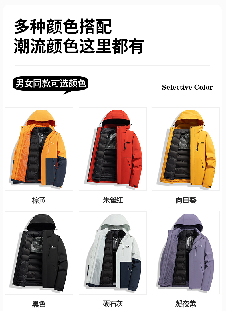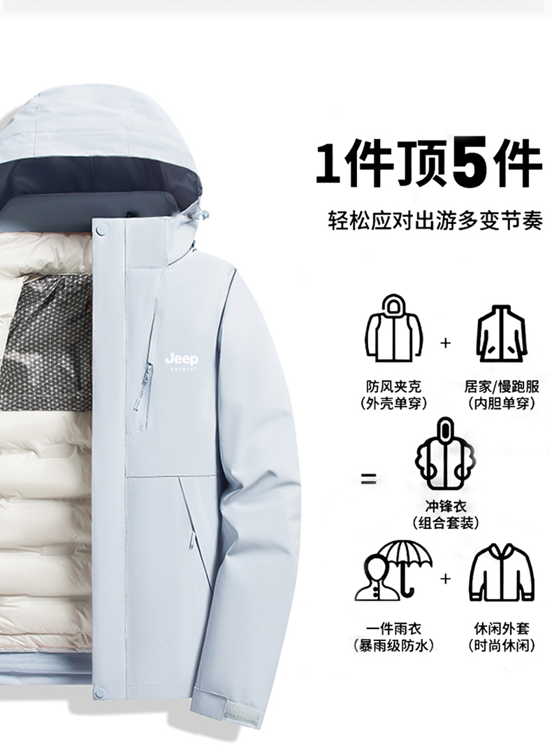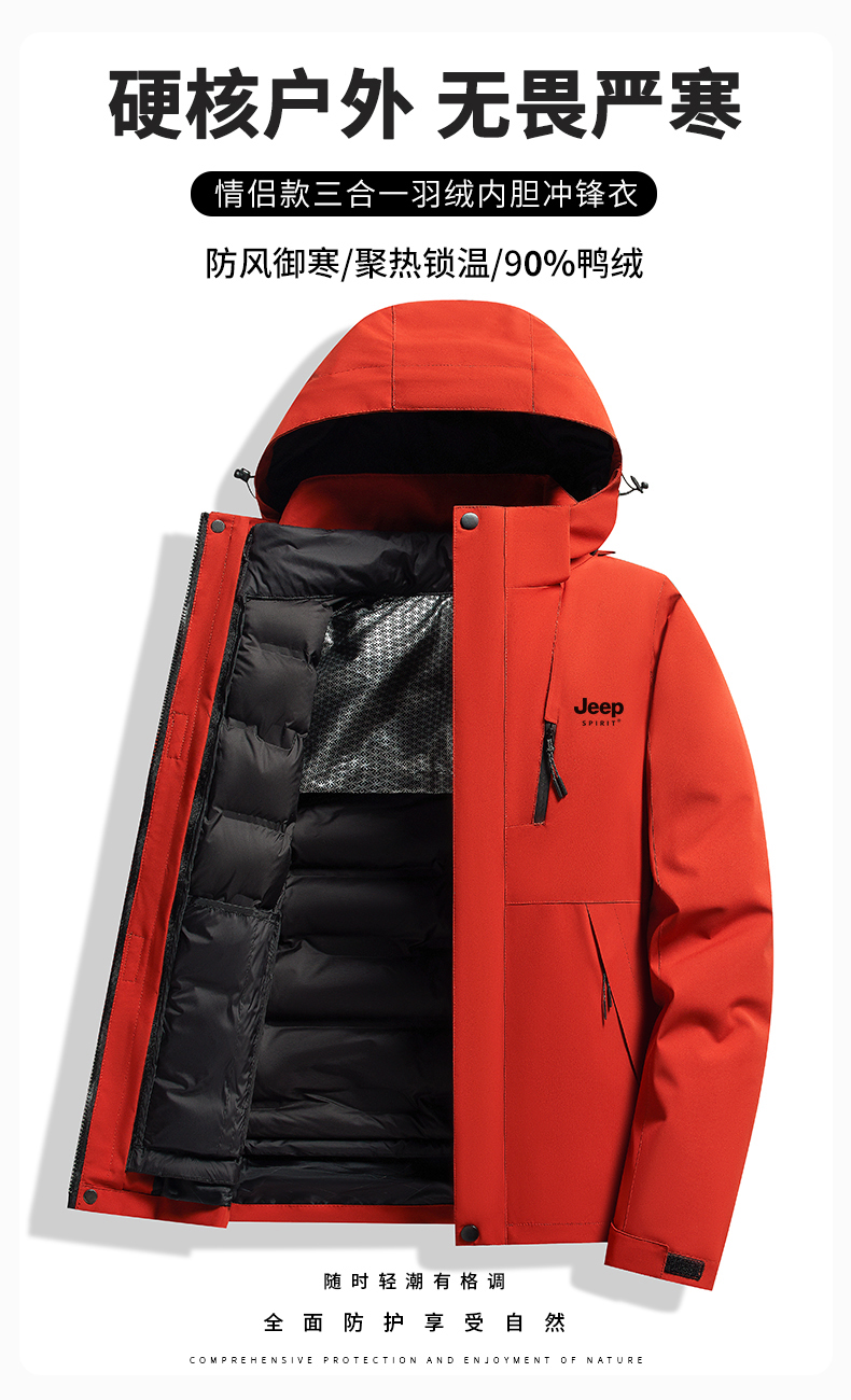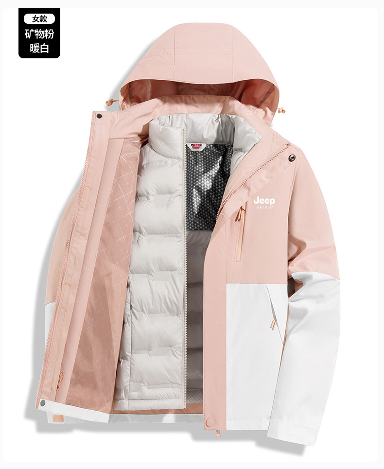 JEEP SPIRIT沖鋒衣羽絨服女2025新款春秋三合一內膽保暖加厚外套