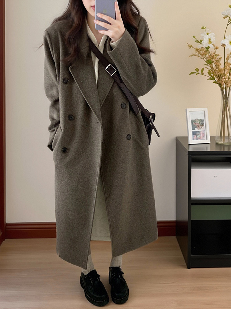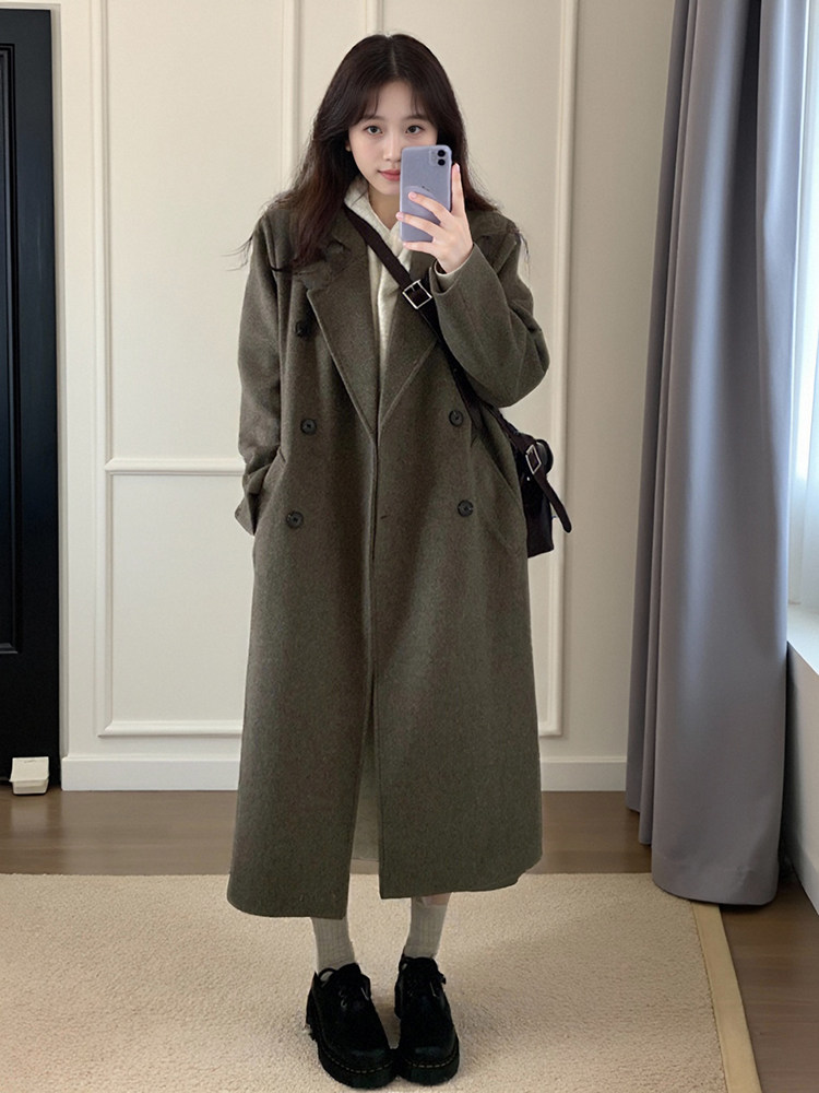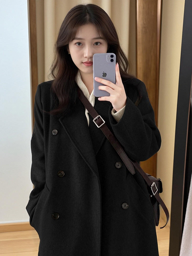 黑色毛呢外套女小個子2024新款秋冬季赫本風高級感厚羊毛呢子大衣
