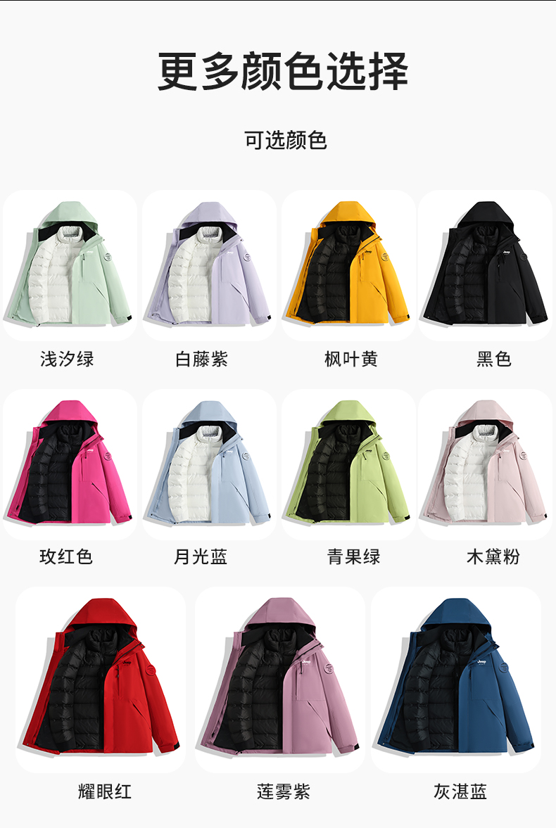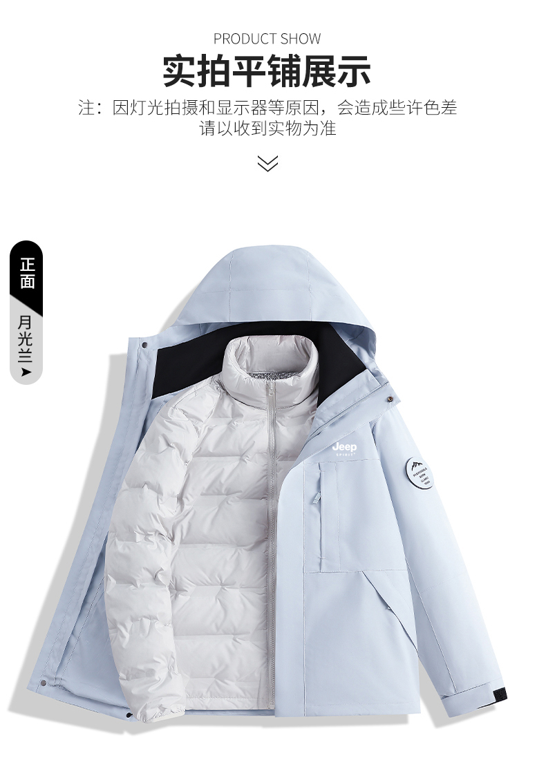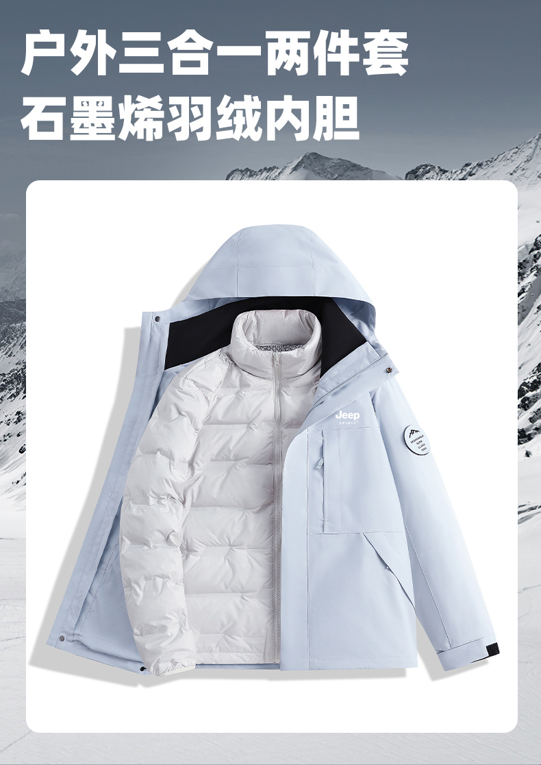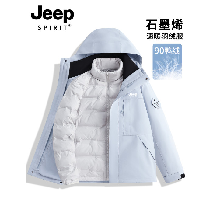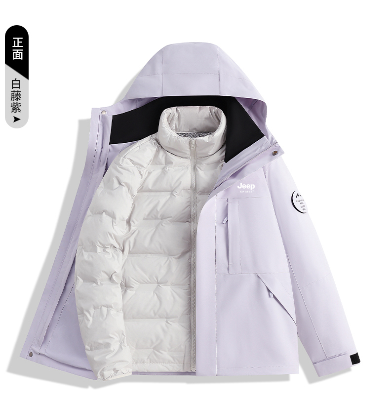 JEEP SPIRIT沖鋒衣羽絨服女2025新款冬季三合一內膽加厚滑雪外套