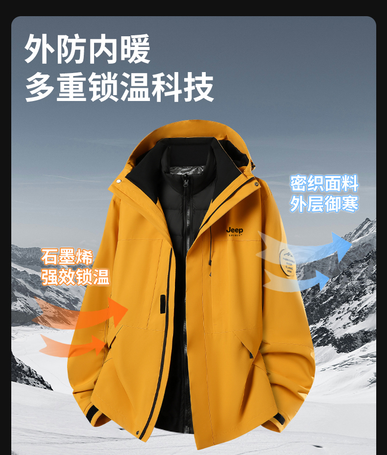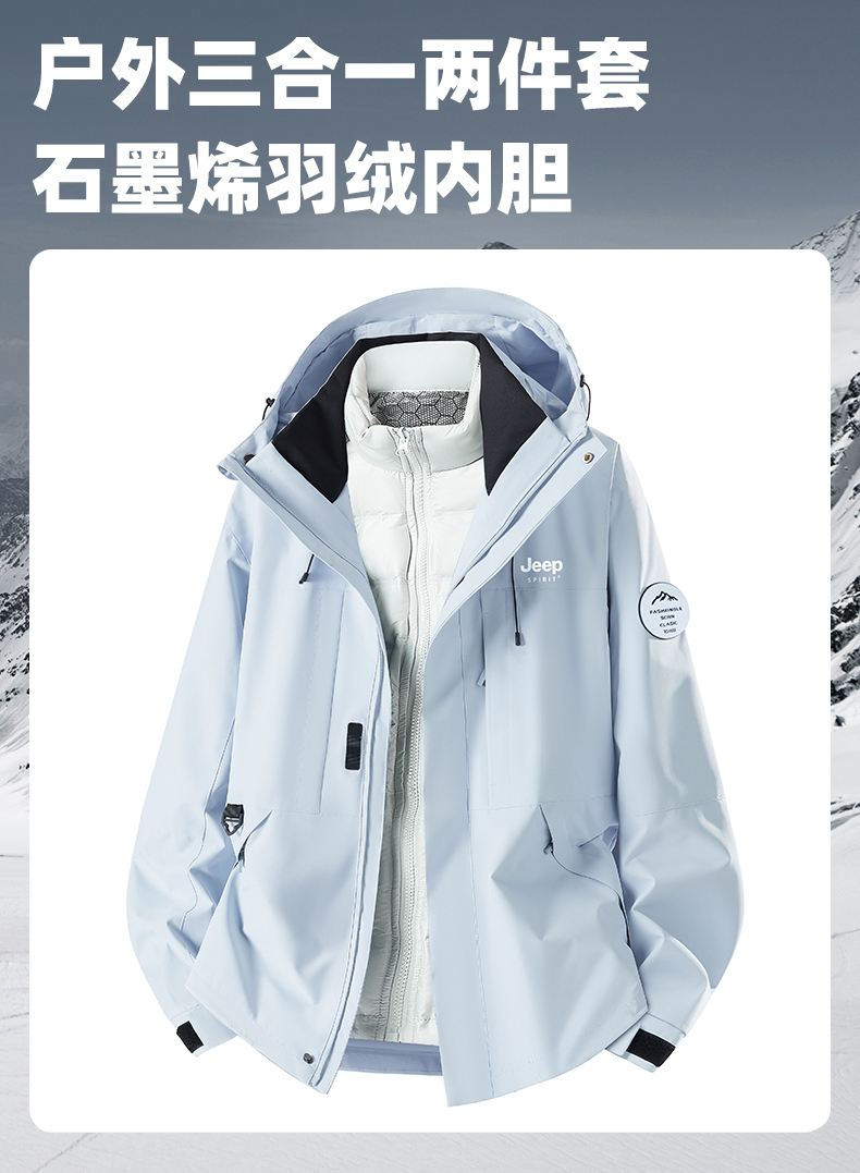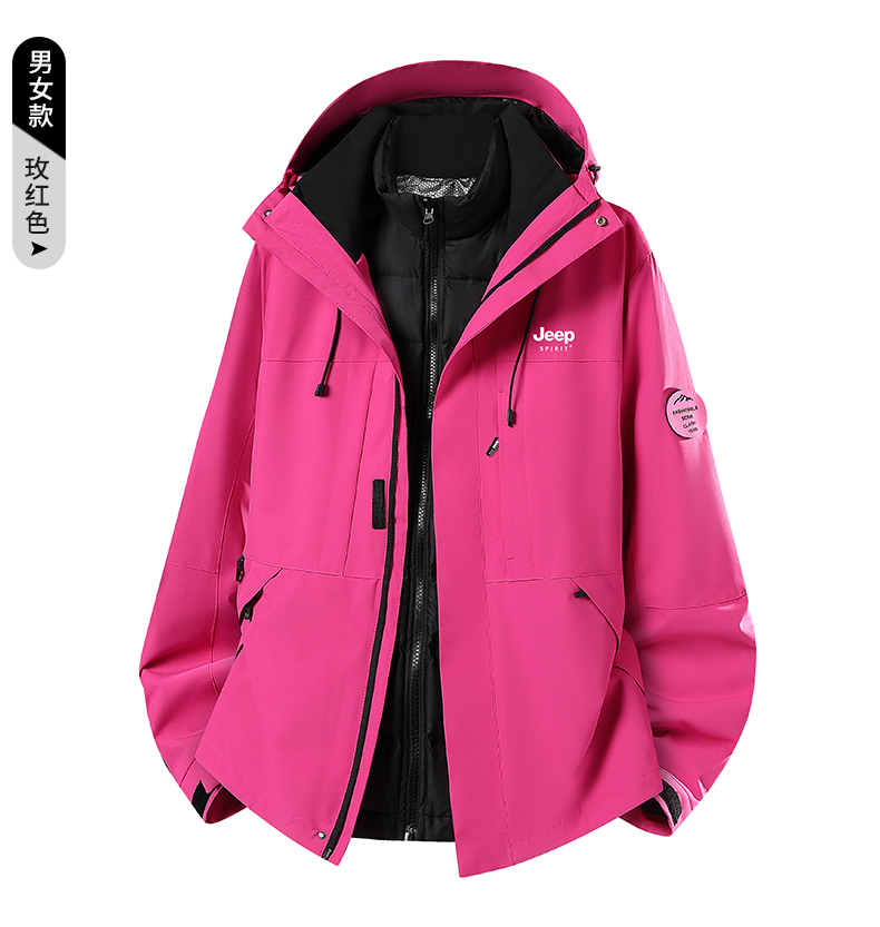 JEEP沖鋒衣羽絨服女款2025新款冬季三合一內膽防風加厚小個子外套