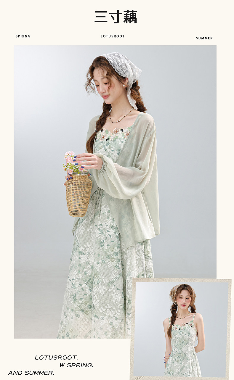 三寸藕【靈動青檸】2026春季新款綠色薄款防曬開衫搭配吊帶裙外套