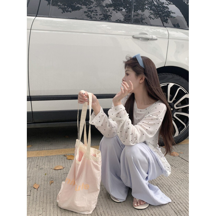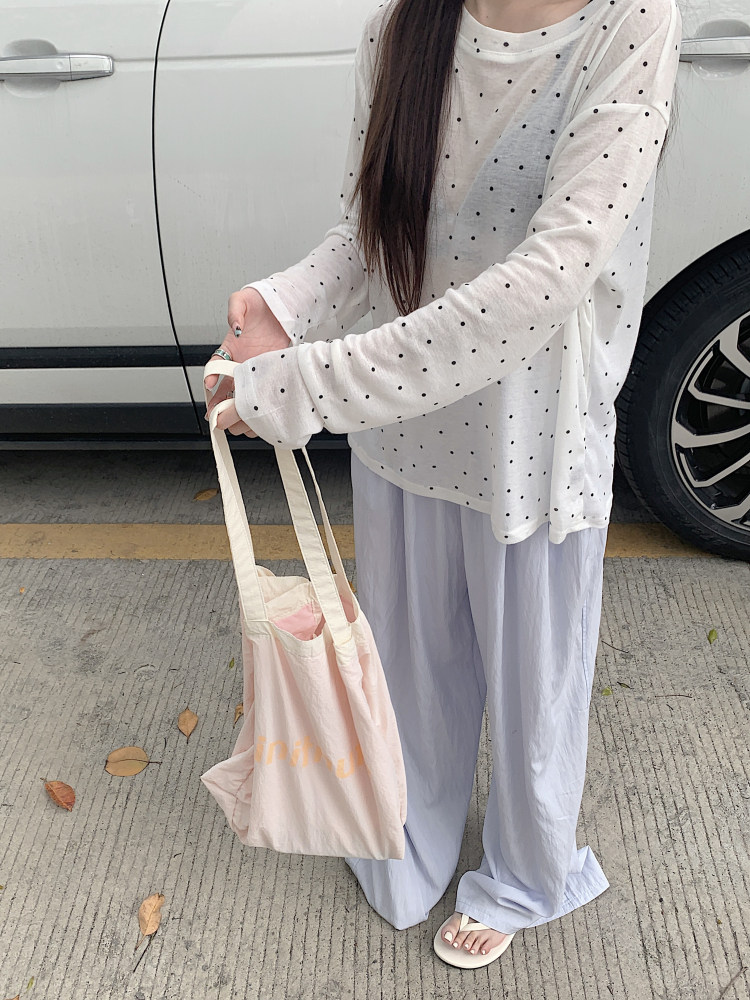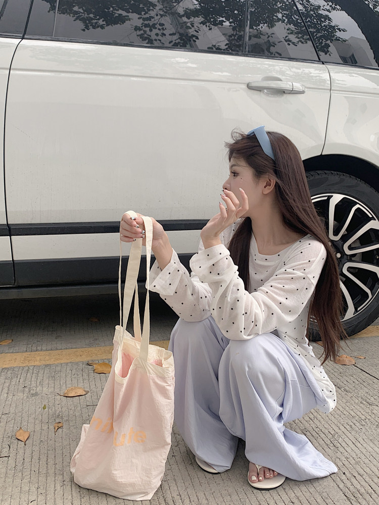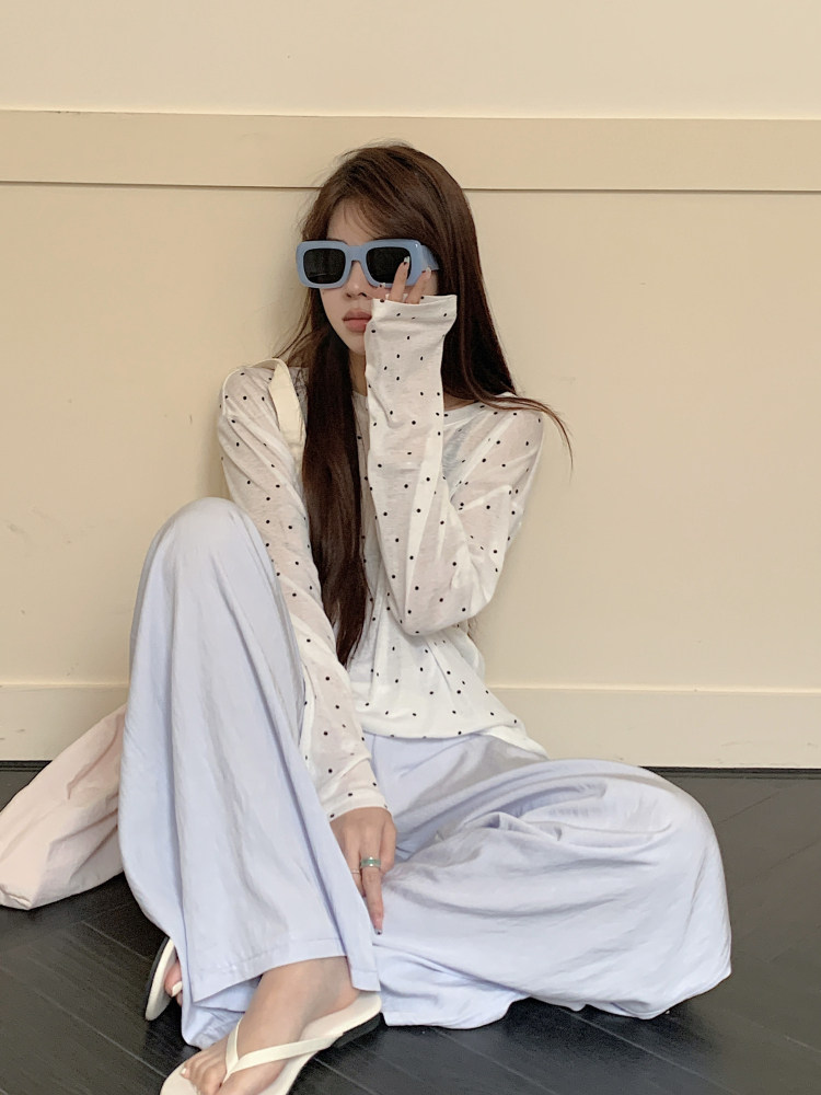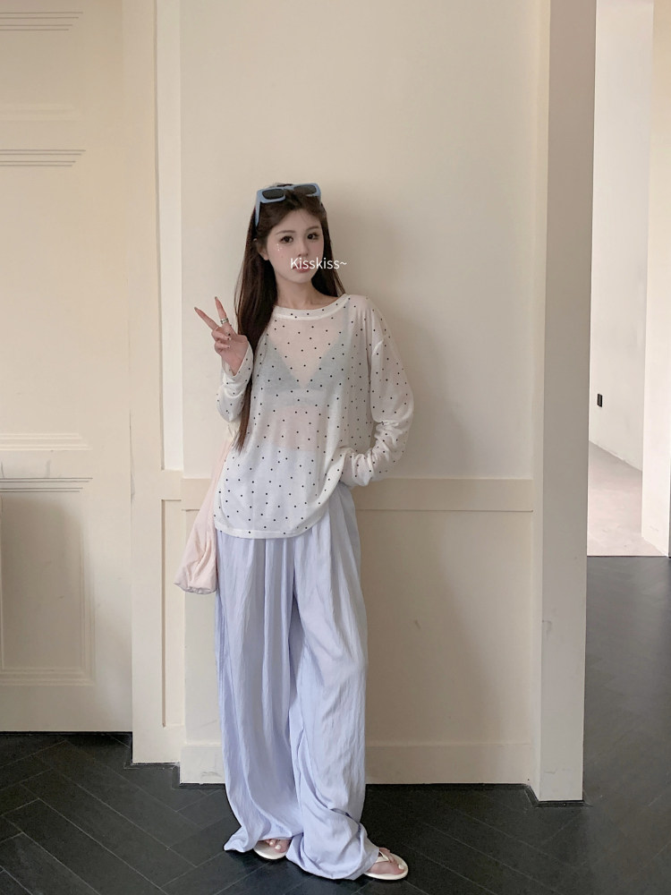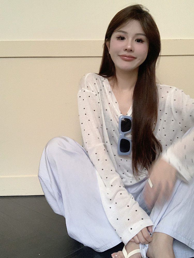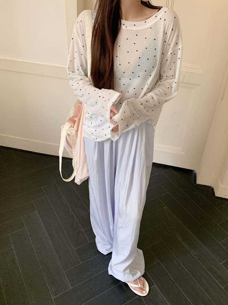 韓版簡約波點防曬罩衫薄款長袖T恤女夏季新款洋氣寬鬆休閒上衣潮