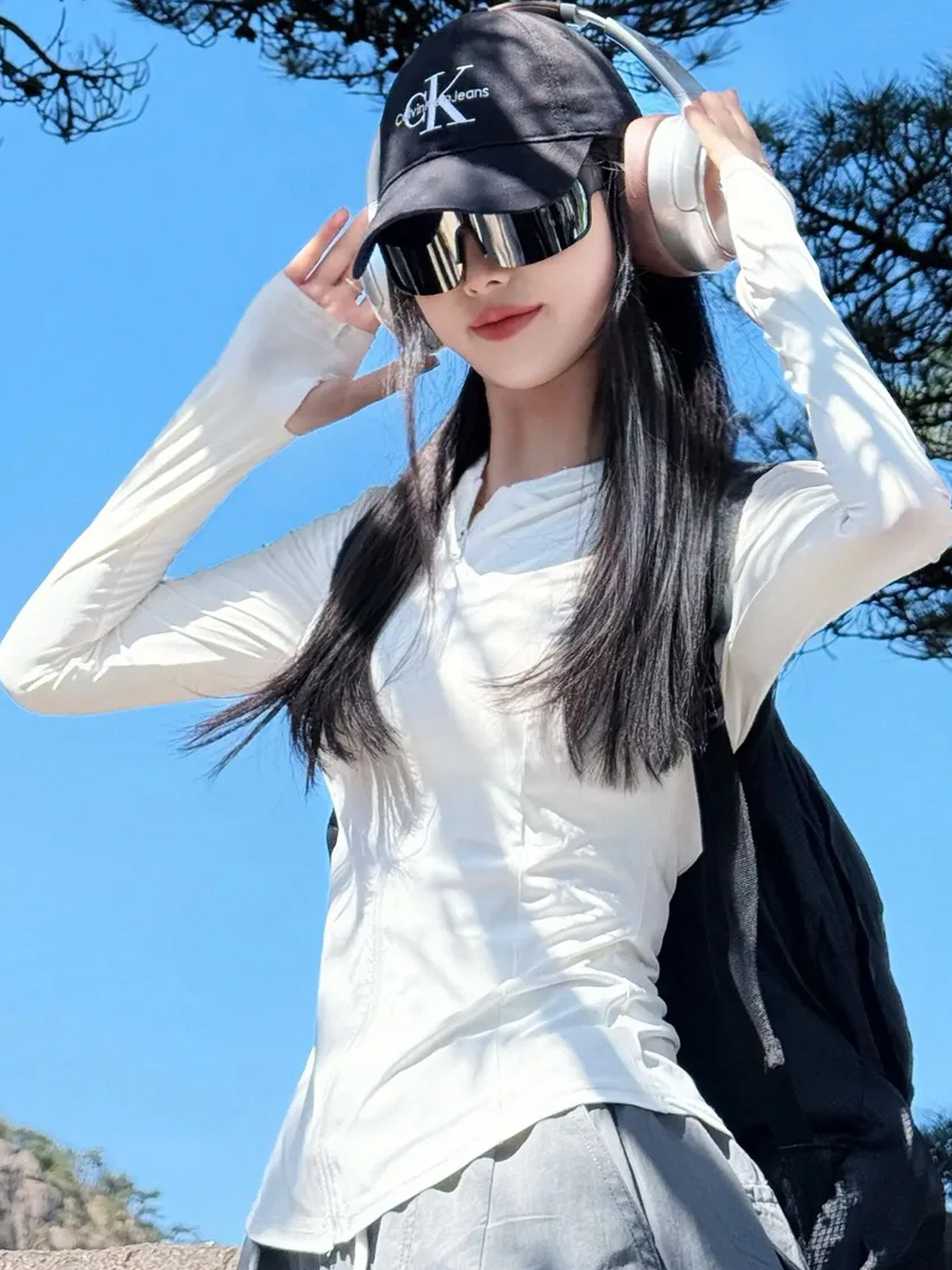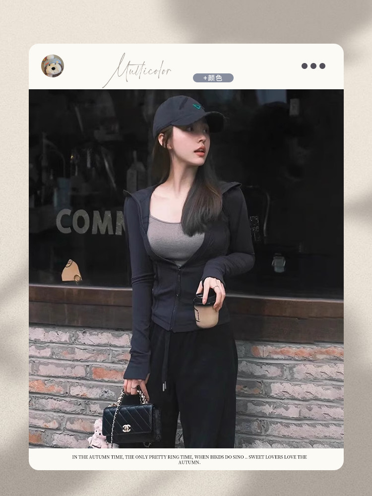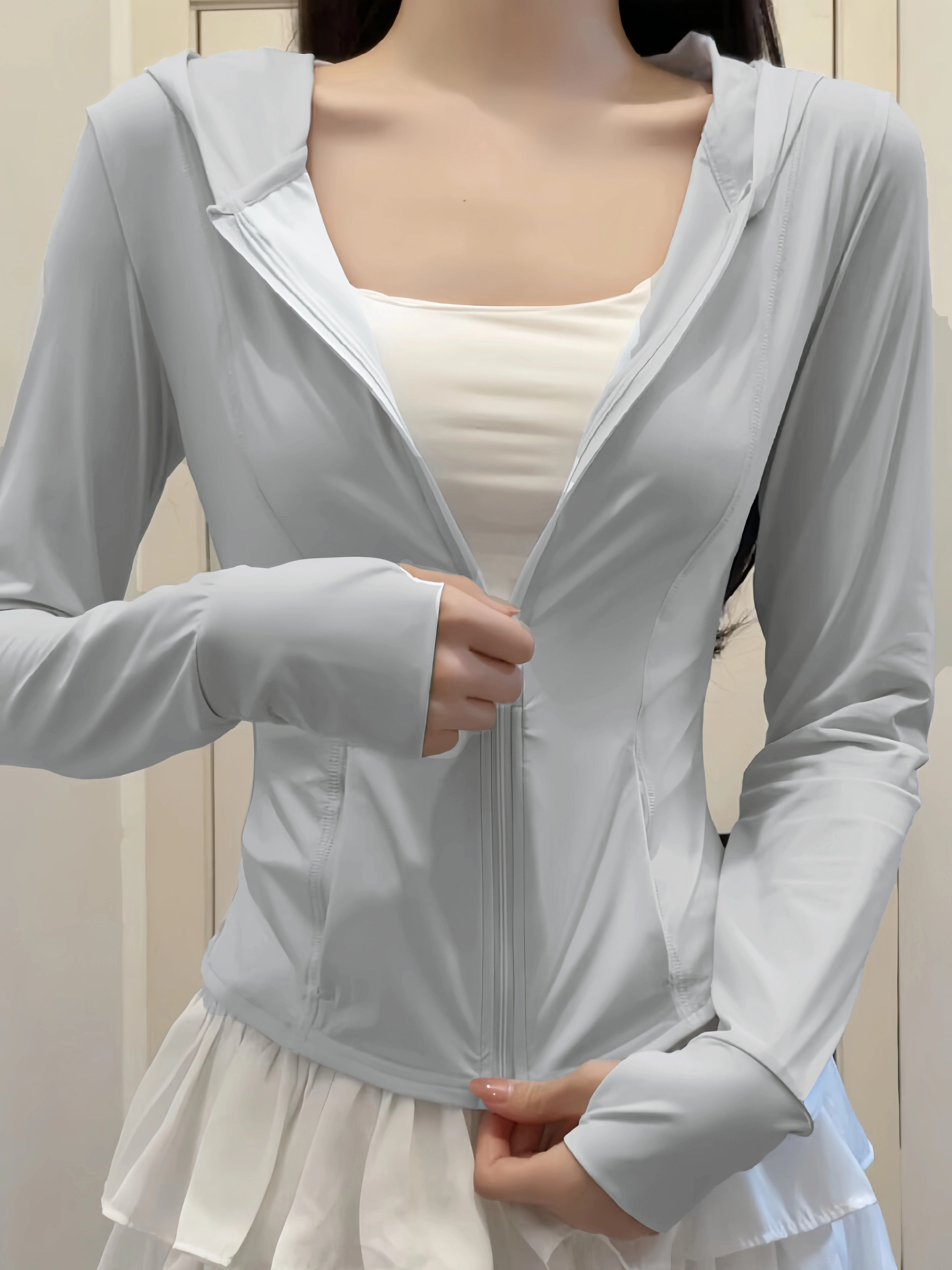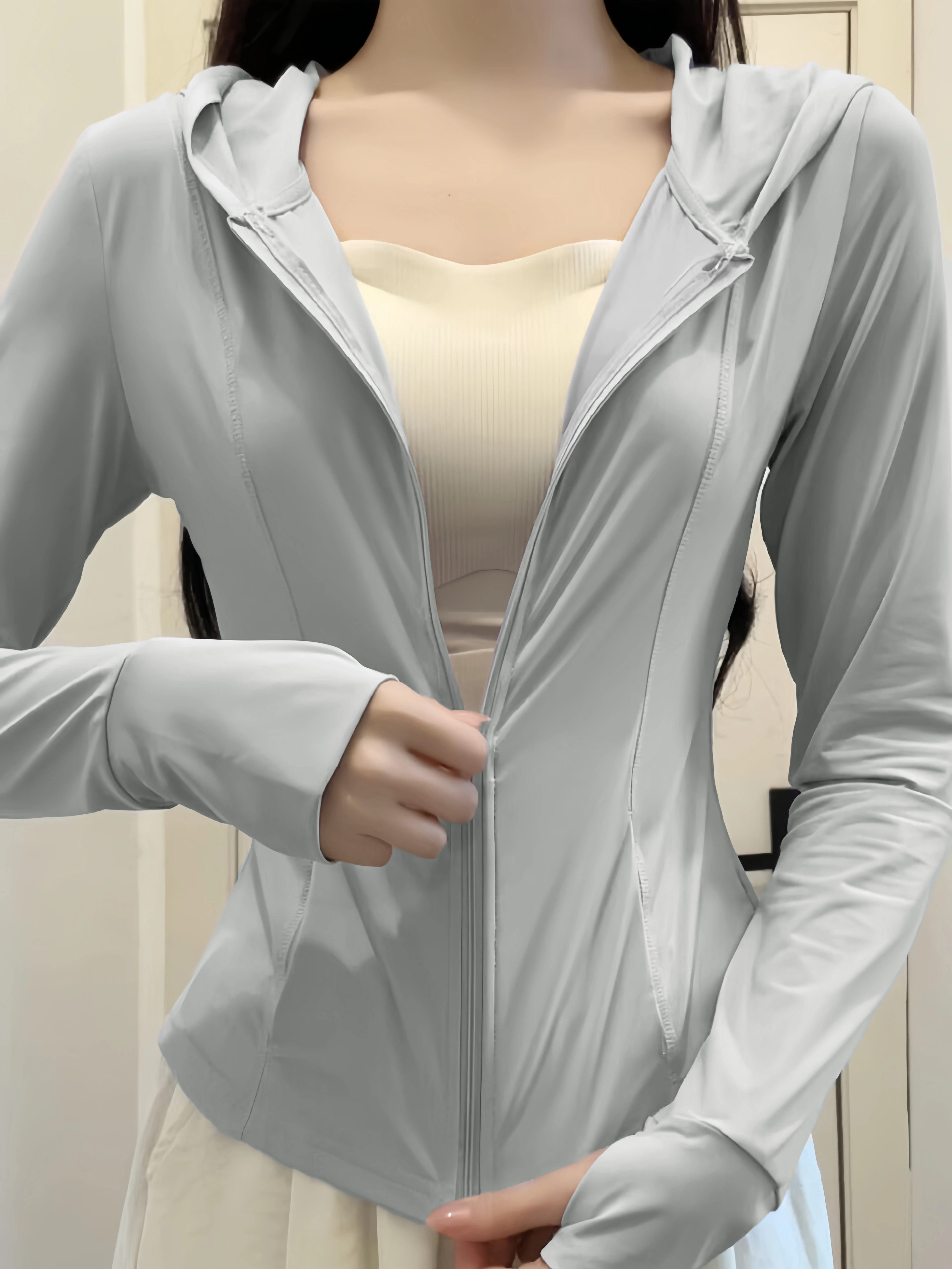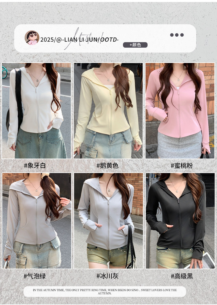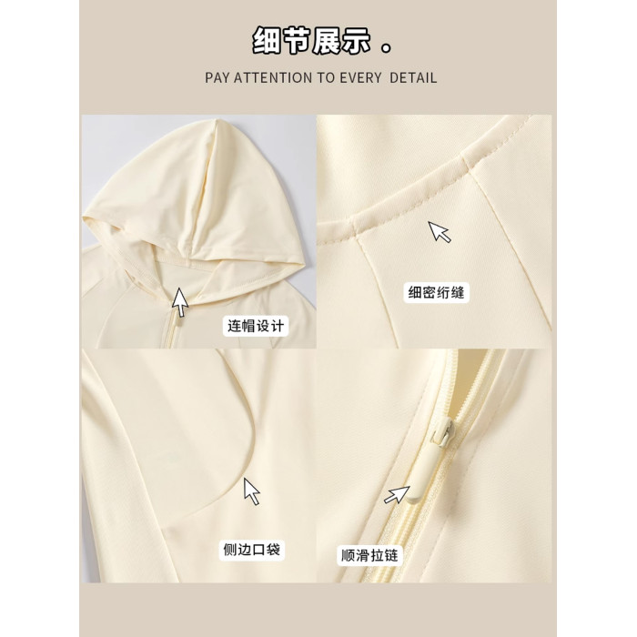 黑色冰絲防曬衣女款夏季透氣防紫外線修身顯瘦連帽運動瑜珈服外套