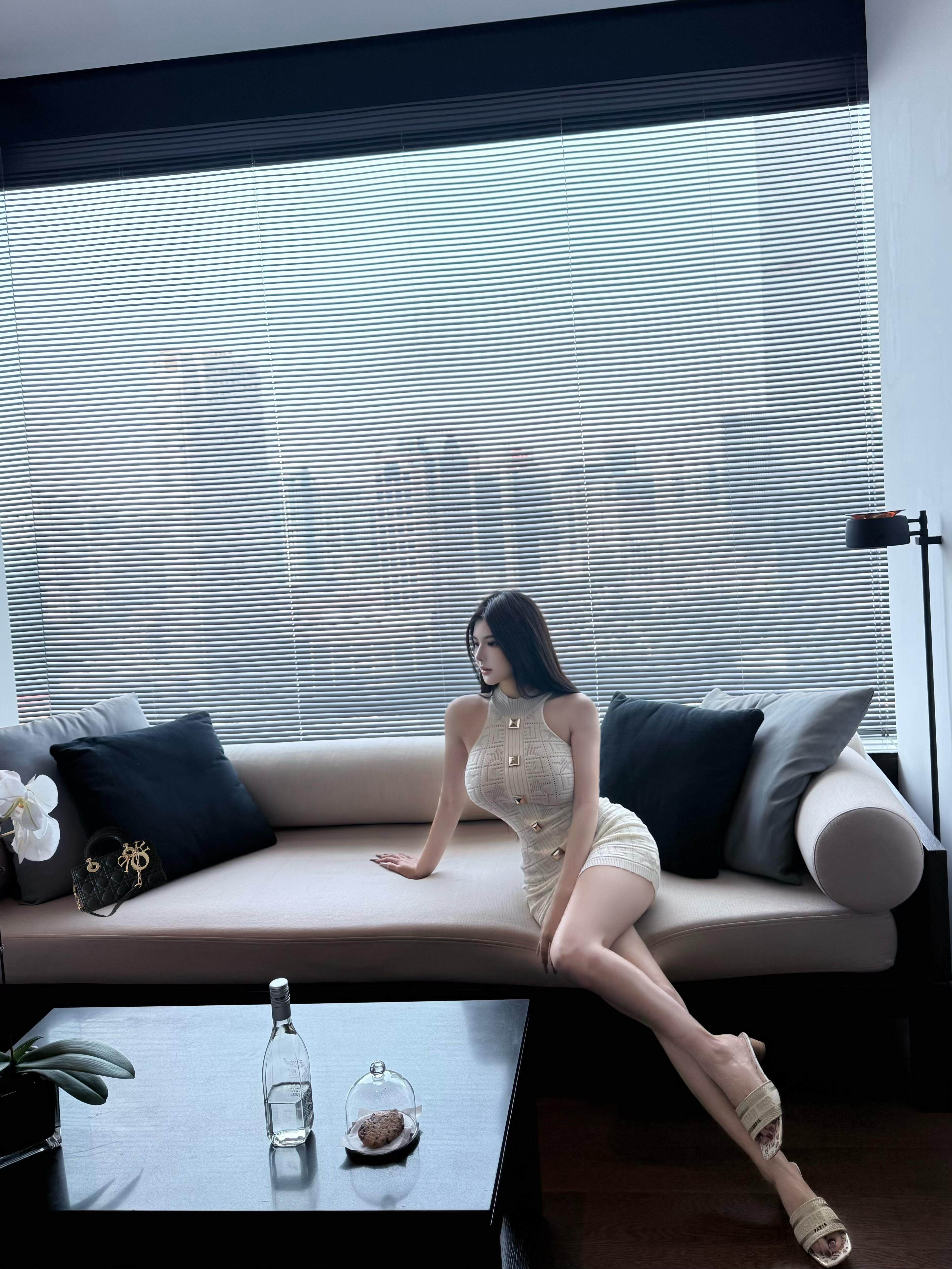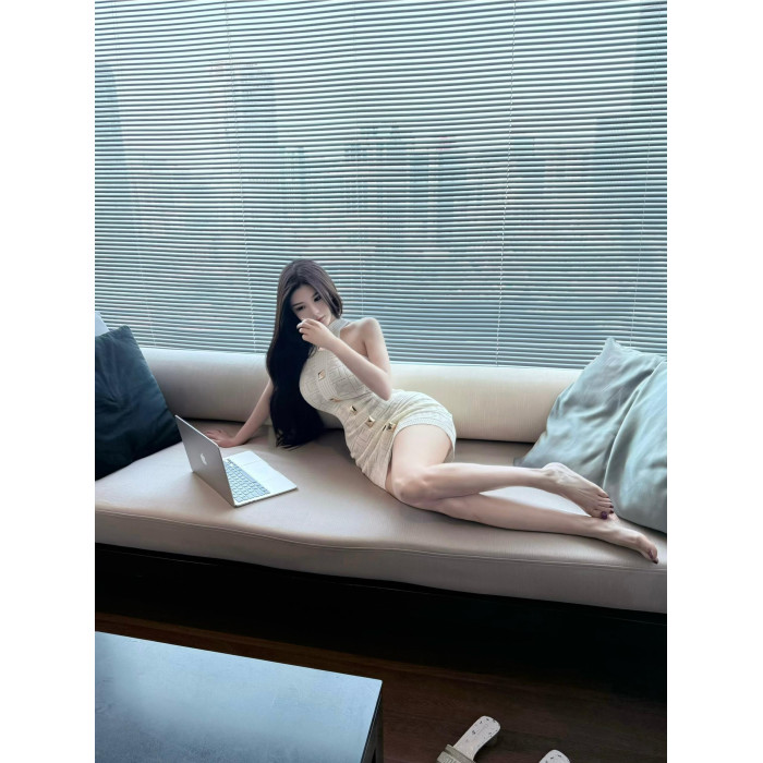 OUTFlT STUDIO 歐美辣妹風杏色針織連衣裙女夏季修身顯瘦包臀短裙
