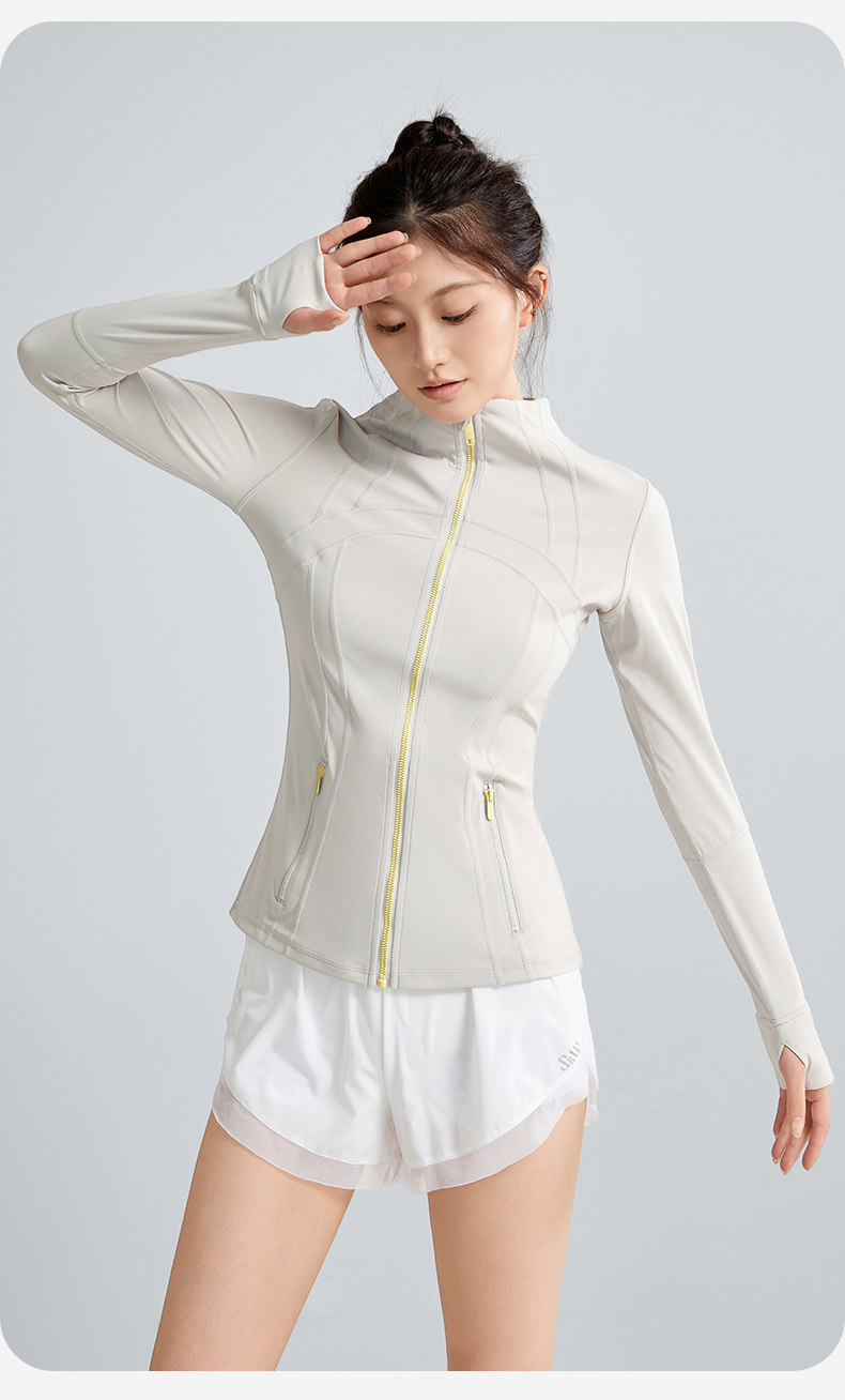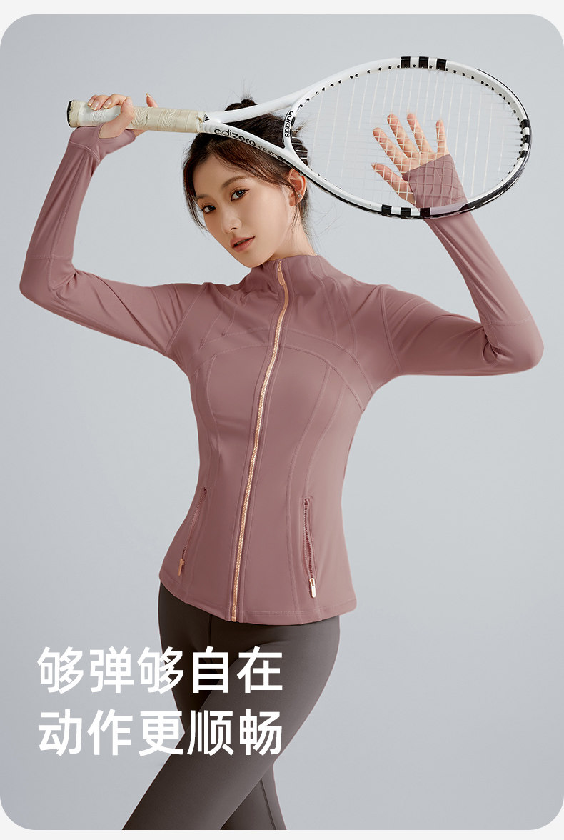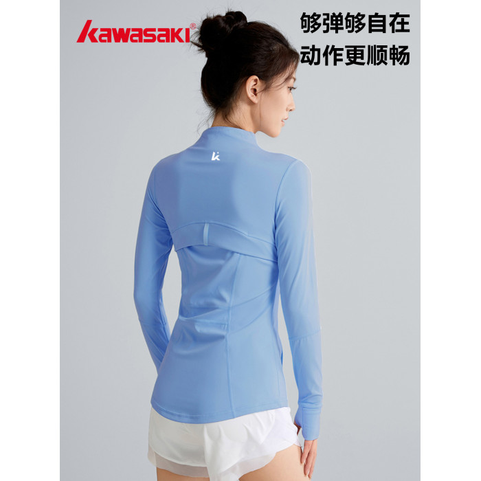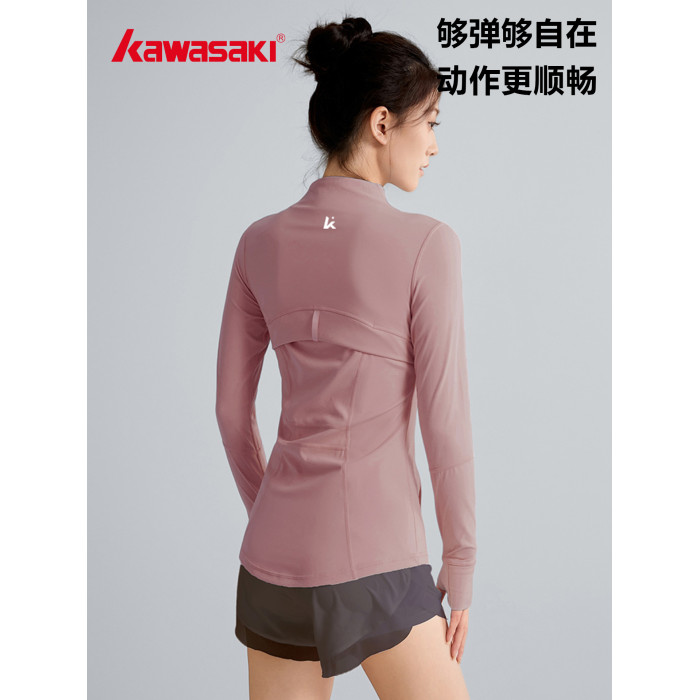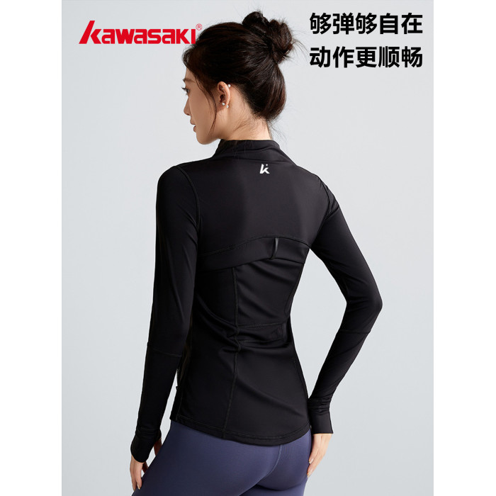 Kawasaki川崎正品健身運動長袖塑身女士簡約高級感短款瑜珈上衣女