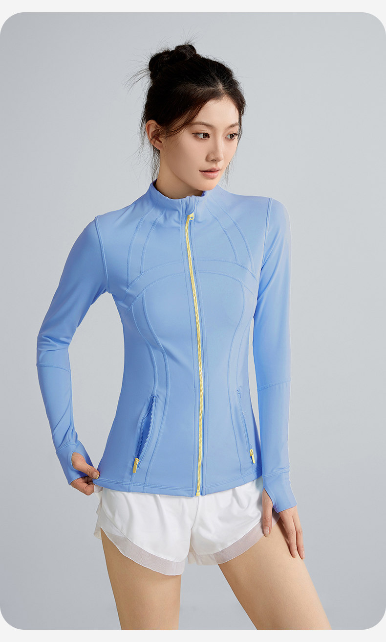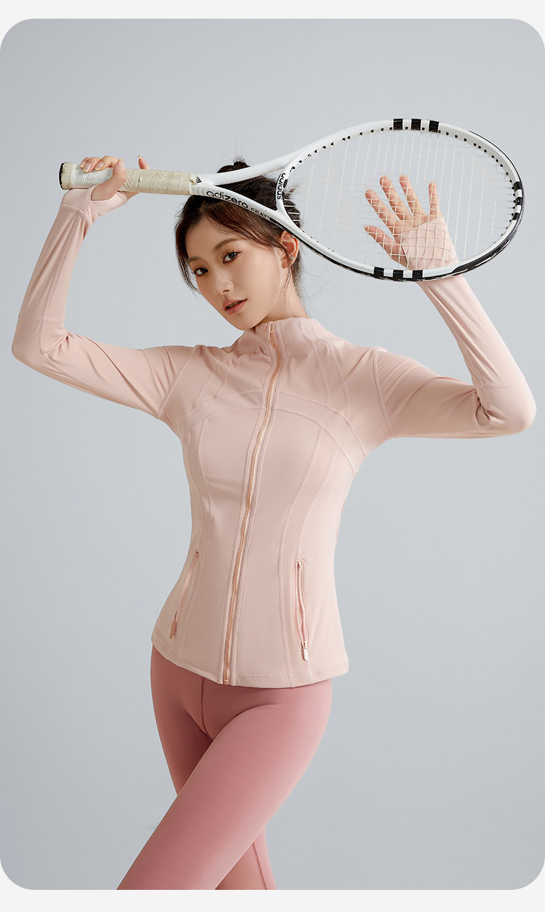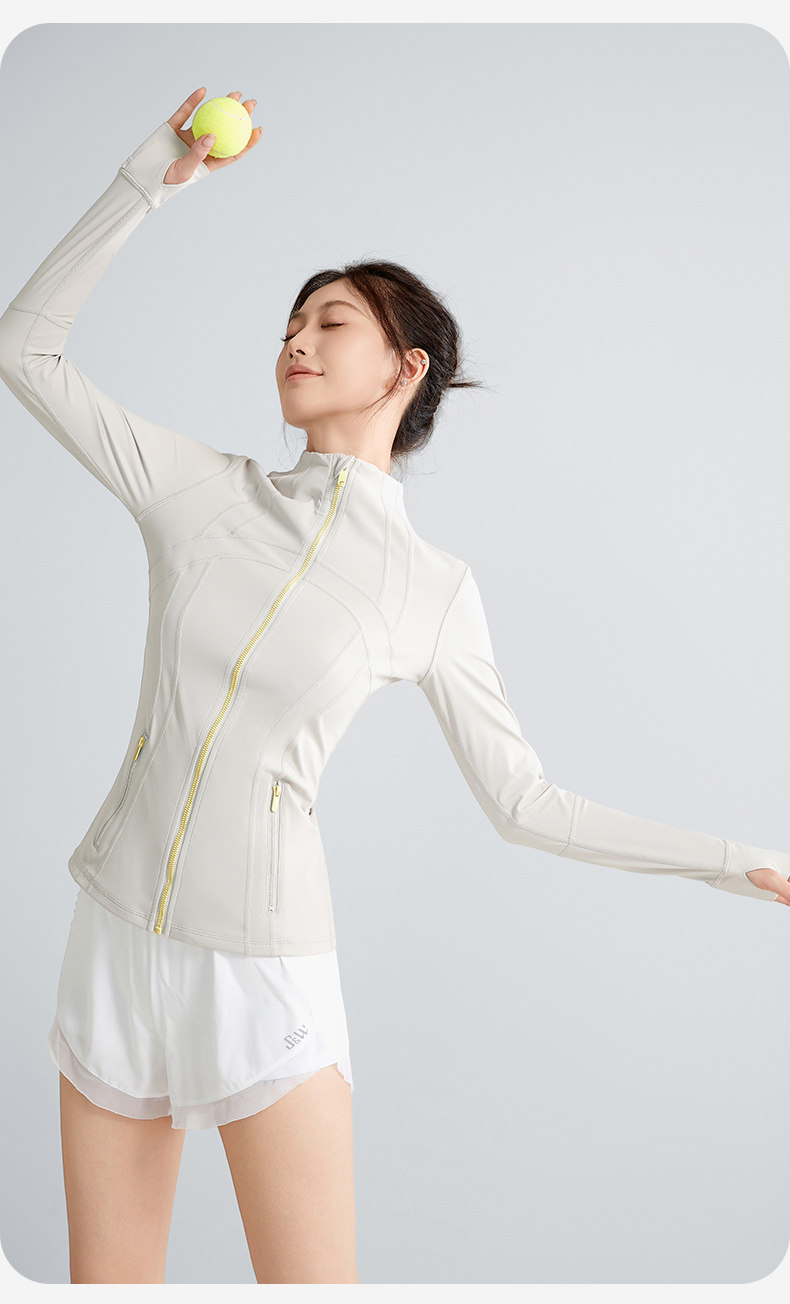 Kawasaki川崎正品健身運動長袖塑身女士簡約高級感短款瑜珈上衣女