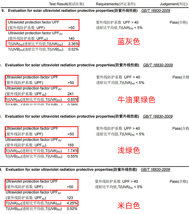 甚至牛油果綠款都做到了UVA透射率僅0.85%