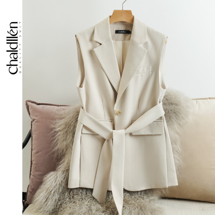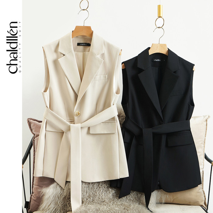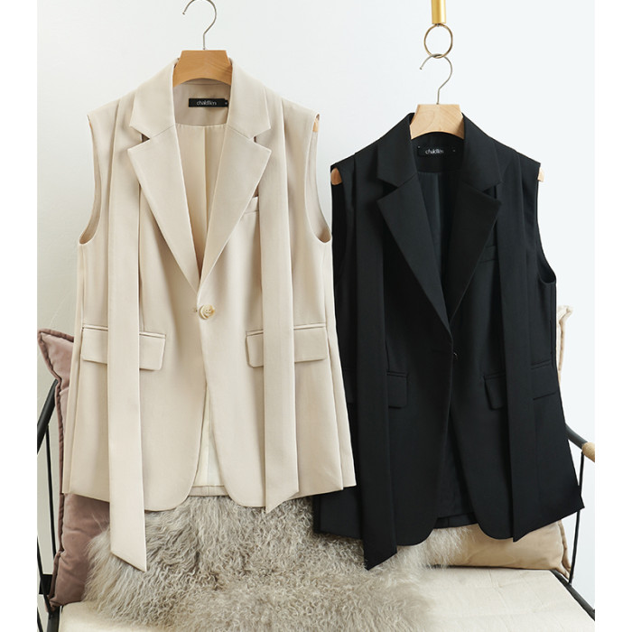 VastGlad 時尚西裝馬甲女新款春秋英倫休閒韓版無袖外搭米色885