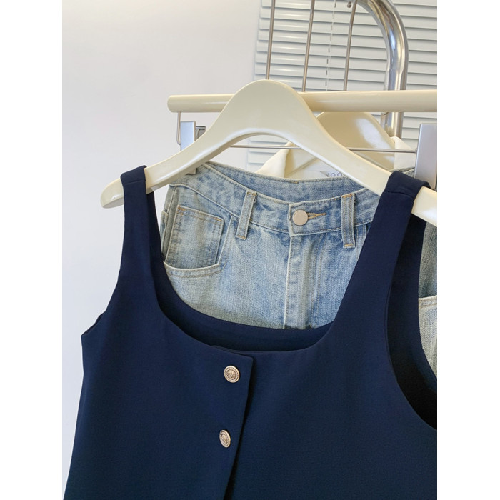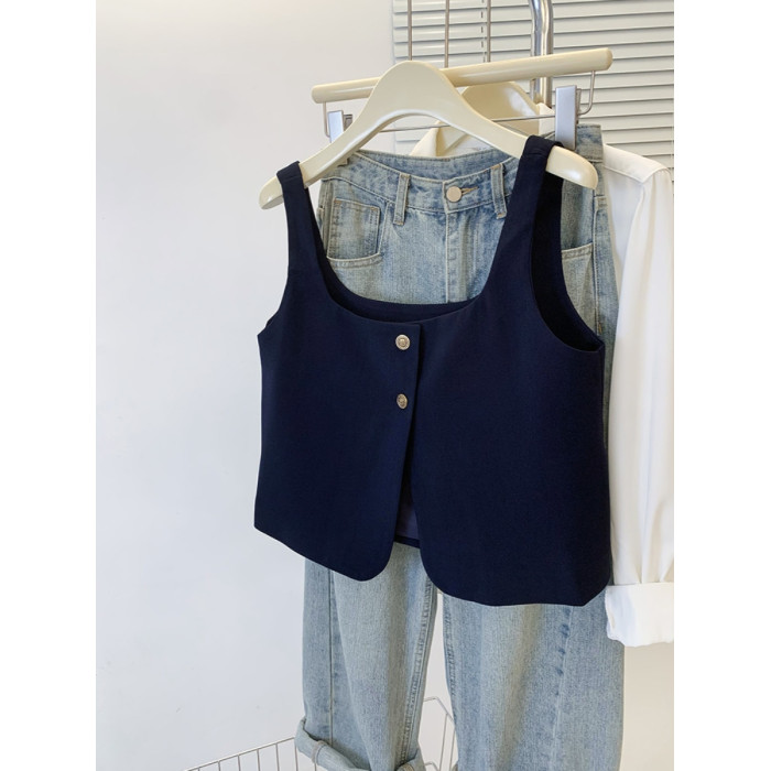 設計感曡穿外搭短款西裝馬甲女夏季新款高級感方領抹胸吊帶背心潮