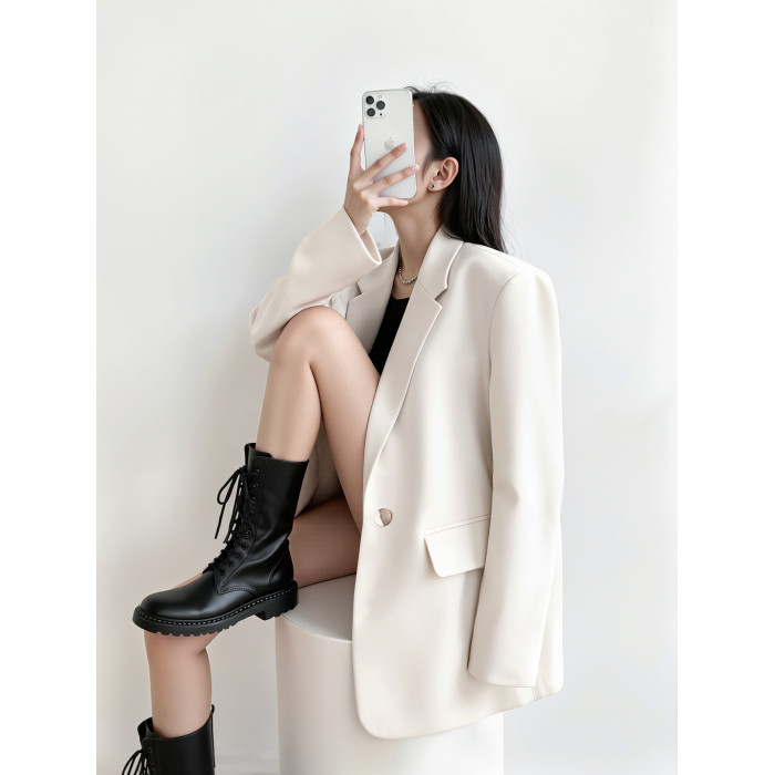 高米締小西裝外套女秋2025新款休閒高級感小個子獨特漂亮米白西服