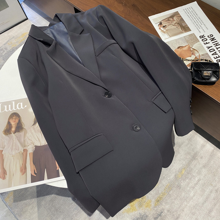 寬松小衆設計感小西裝外套女2025秋季韓版後背一粒釦開叉休閒西服