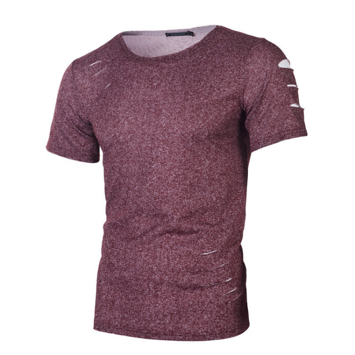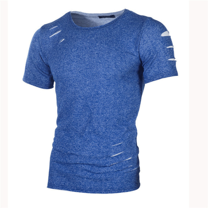 夏季新款男士休閒時尚短袖破洞T恤 5色