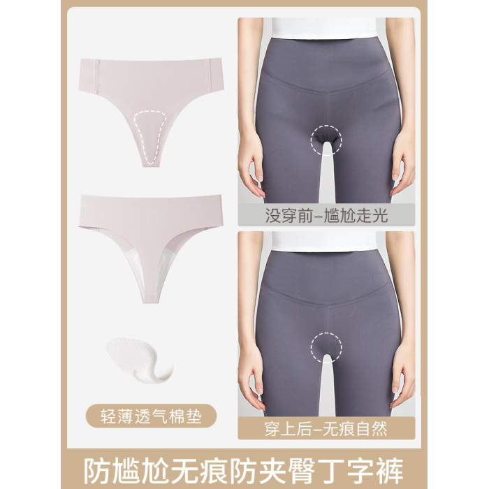 擧重妖精冰絲無痕運動內褲女夏抗菌透氣瑜珈三角褲隱形健身丁字褲