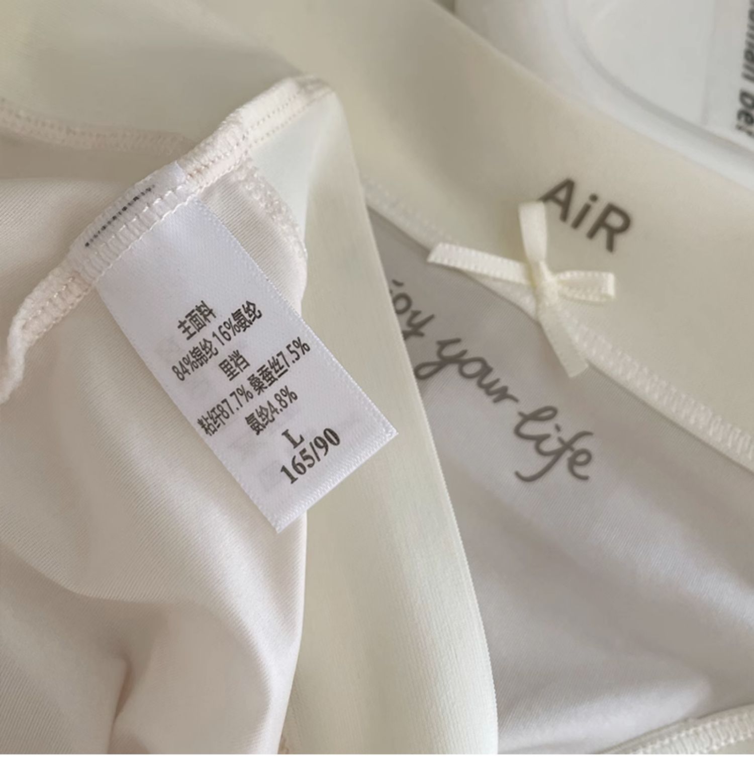 | 襠部材質成分 | 粘膠纖維(粘纖)87.7% 桑蠶絲7.5% 聚氨酯彈性纖維(氨綸)4.8% |