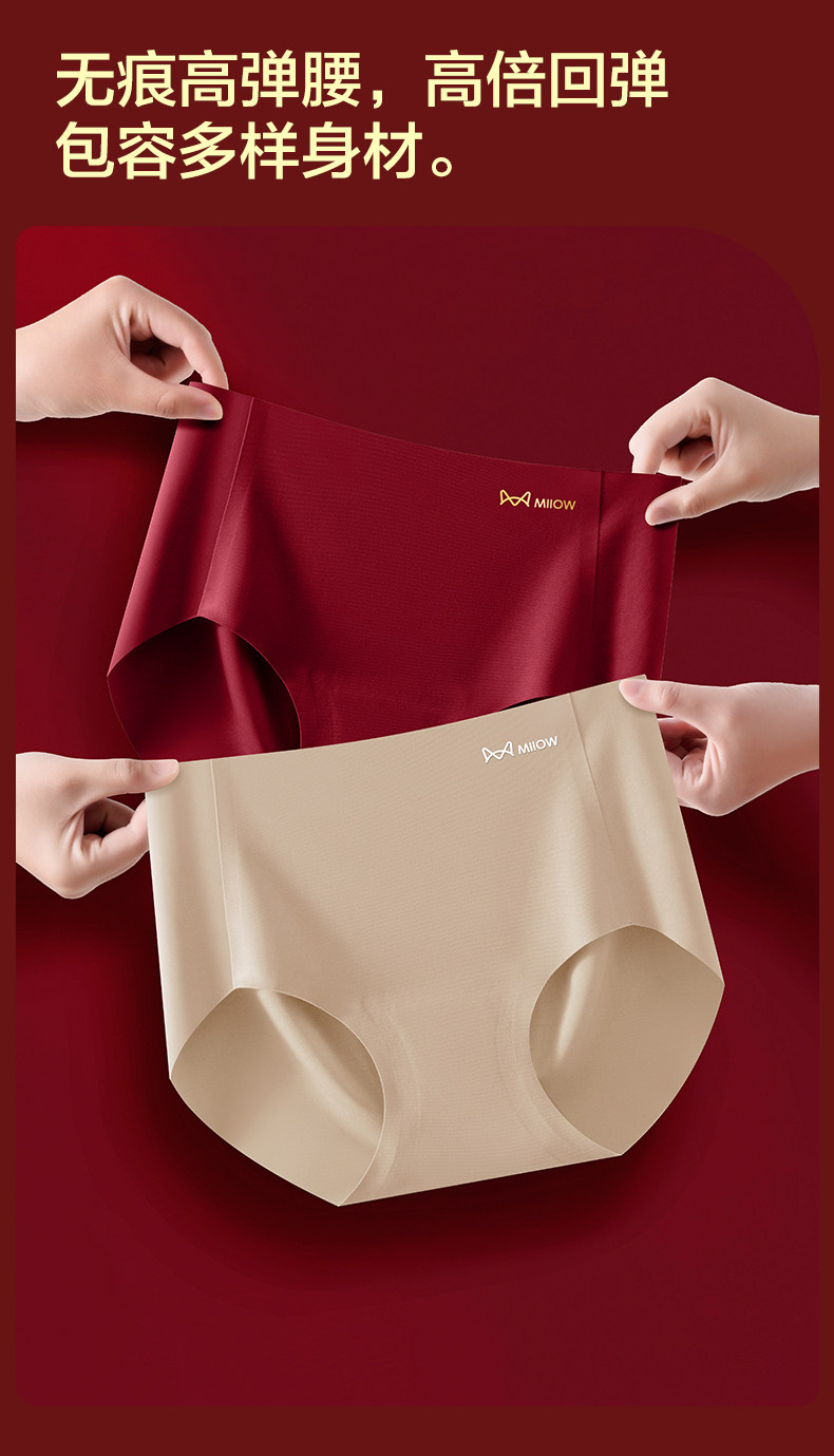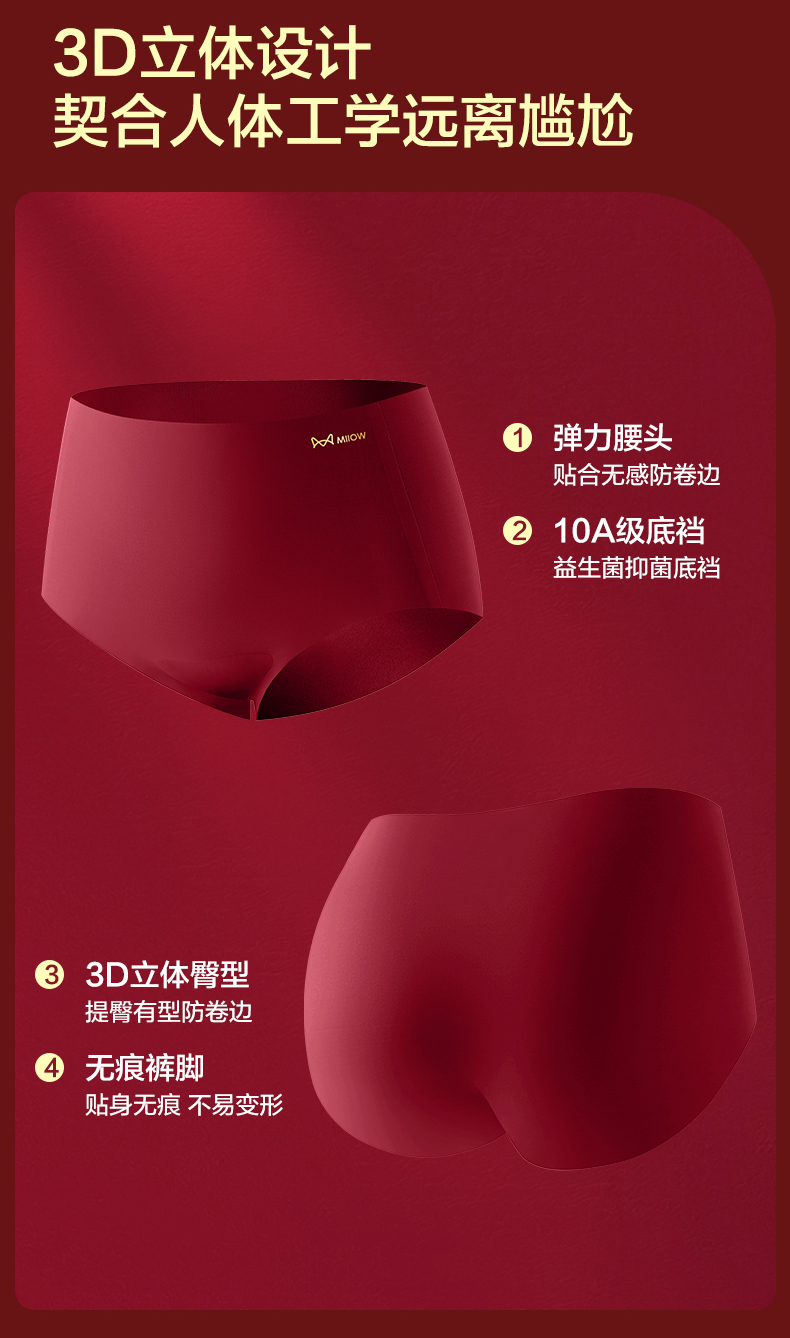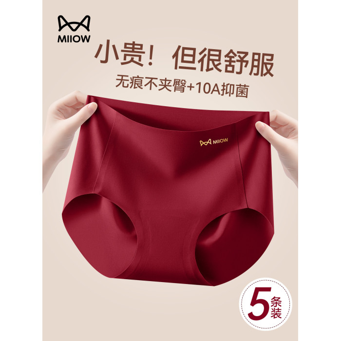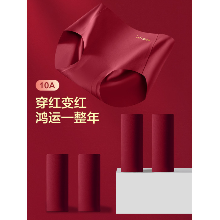 貓人無痕紅色內褲女士2025新款本命年結婚抗菌冰絲不夾臀三角短褲