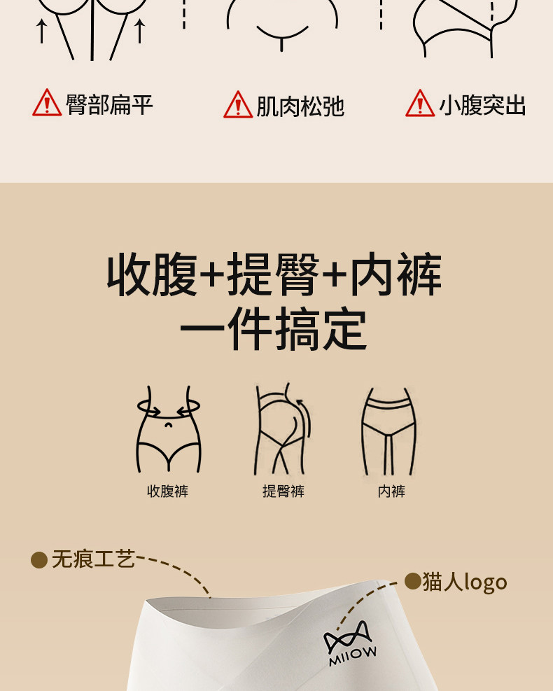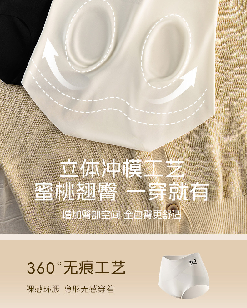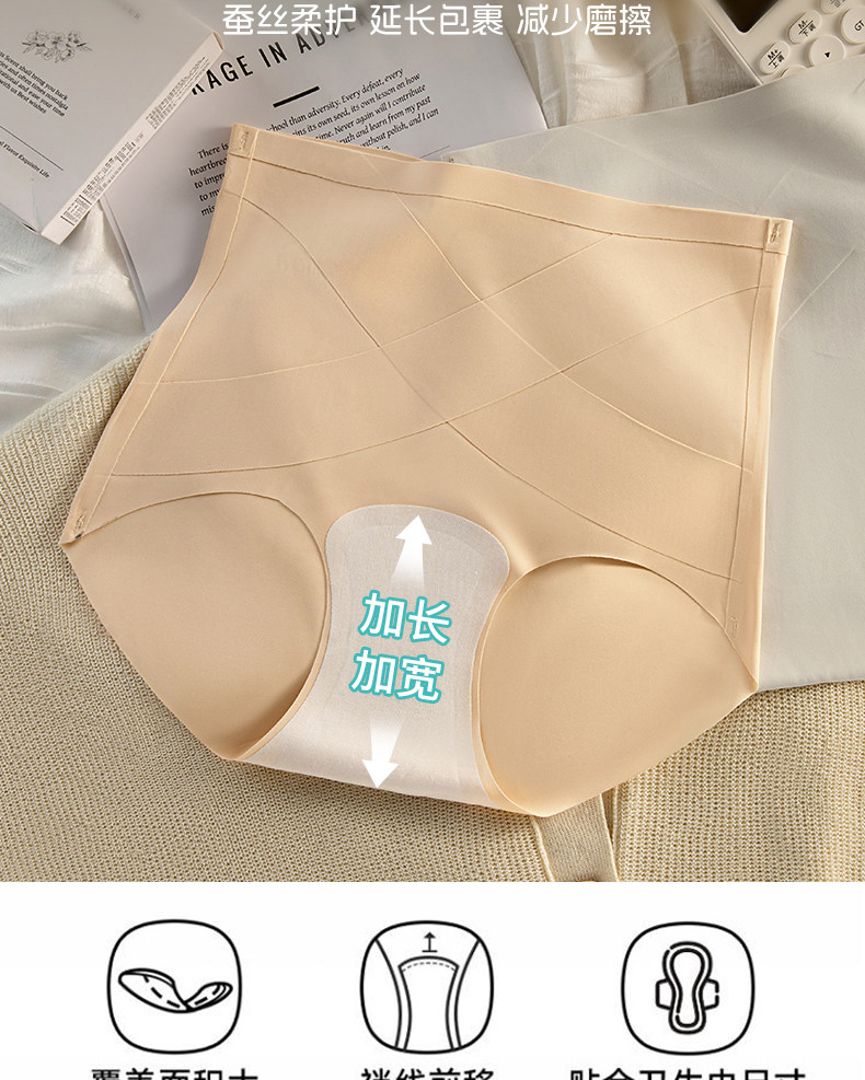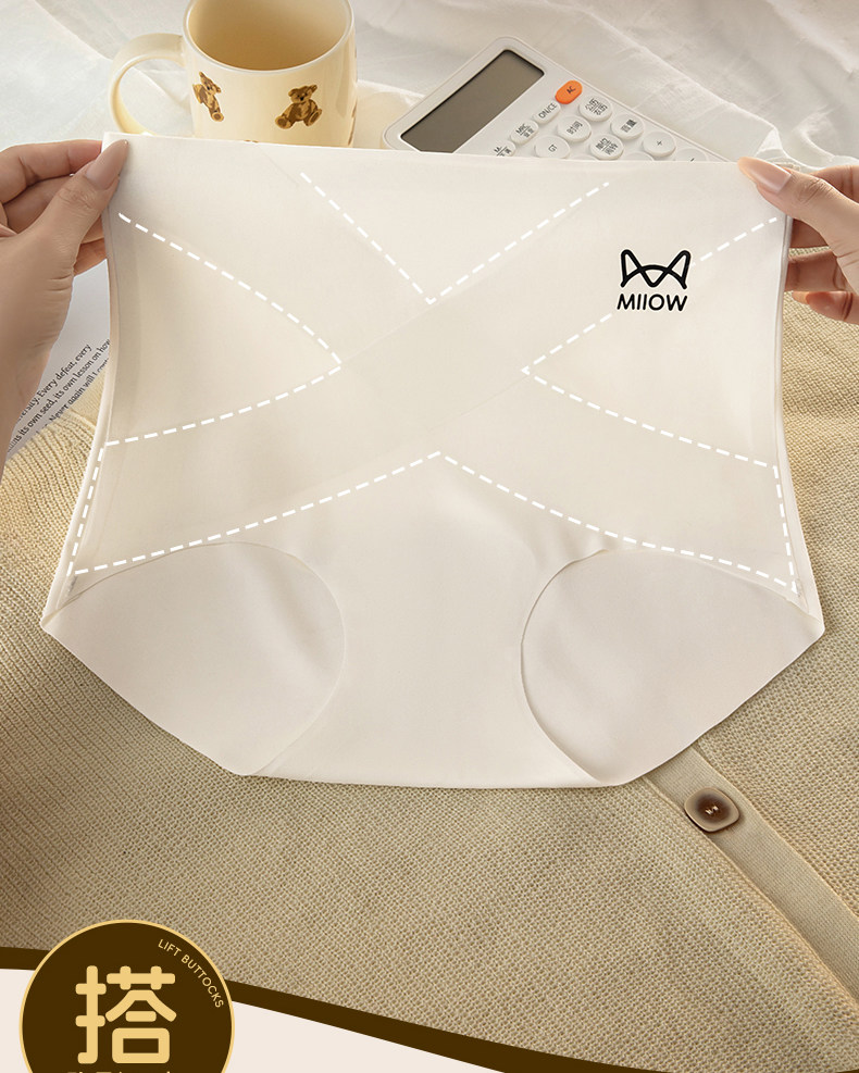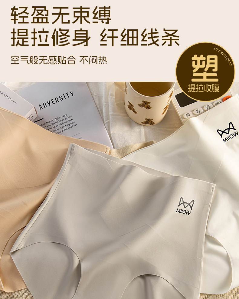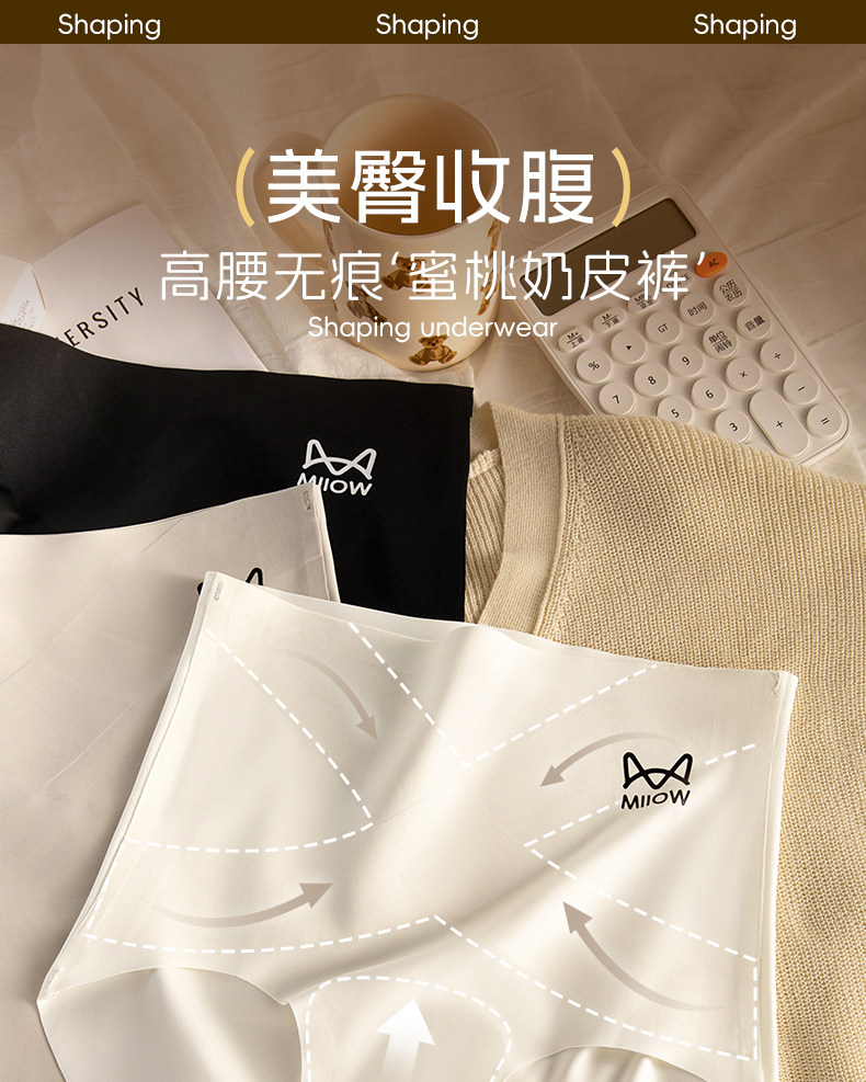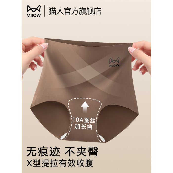 貓人內褲女高腰收腹無痕奶皮桑蠶絲10A抗菌襠大碼女生三角褲新款