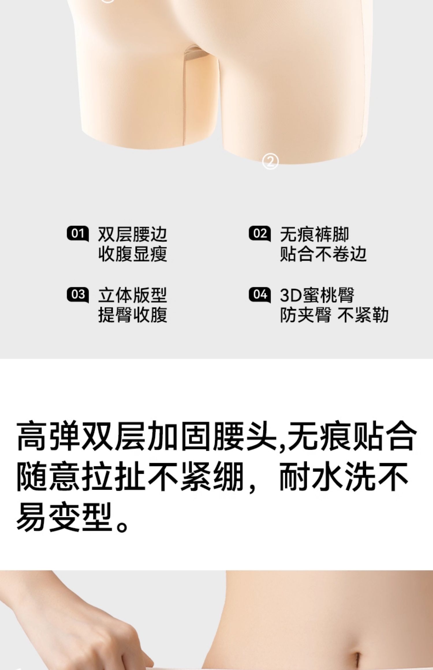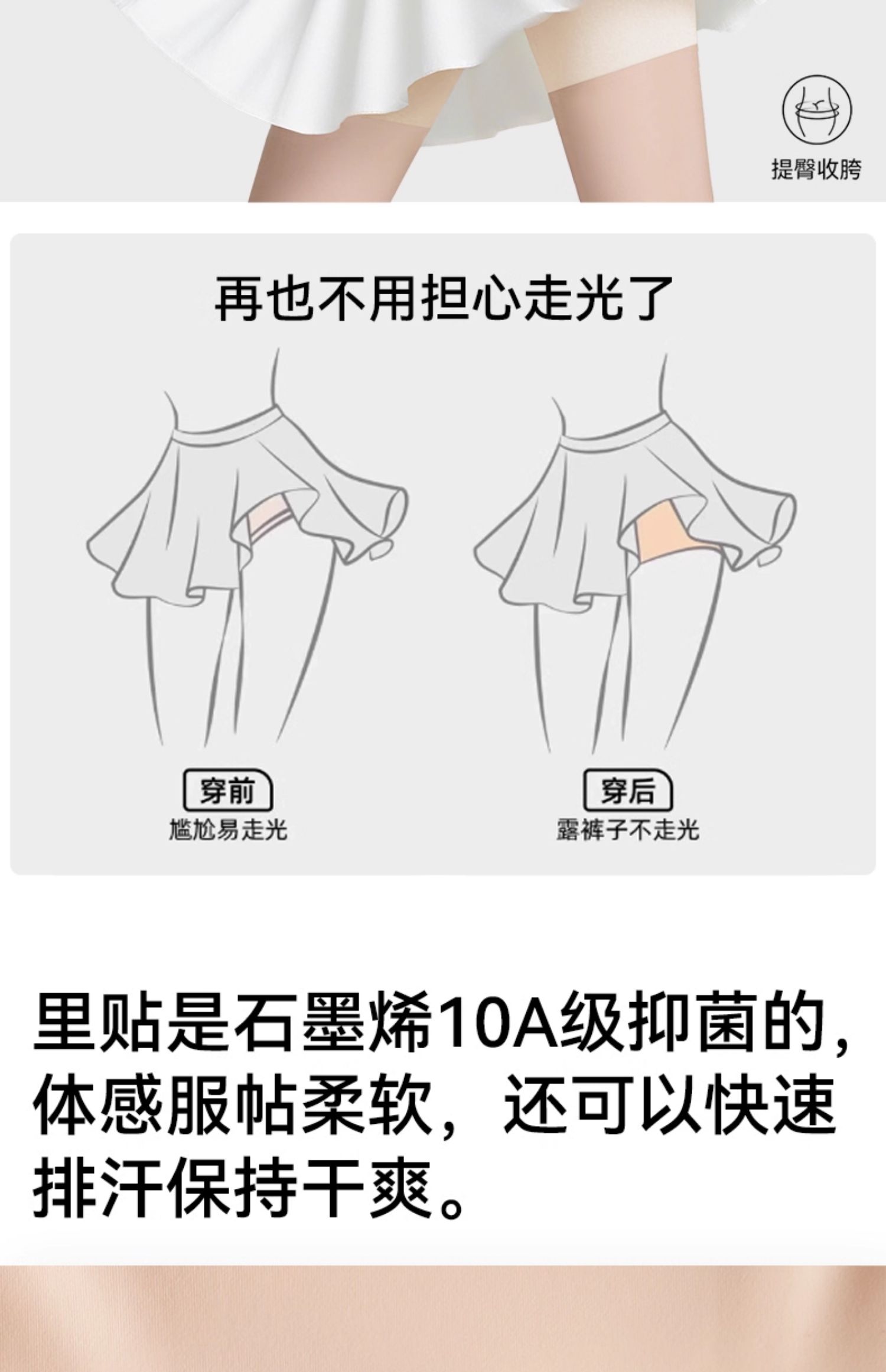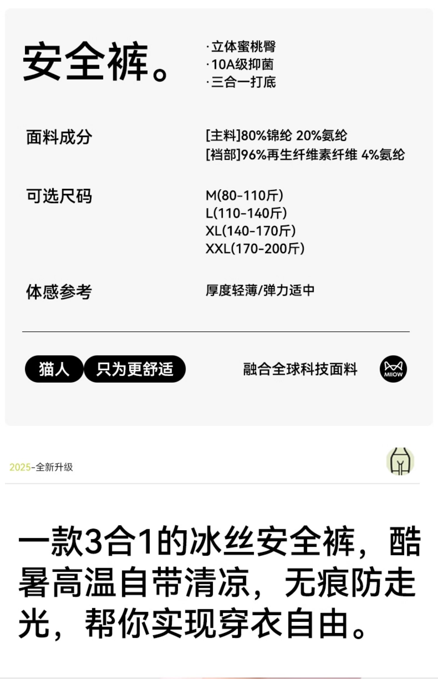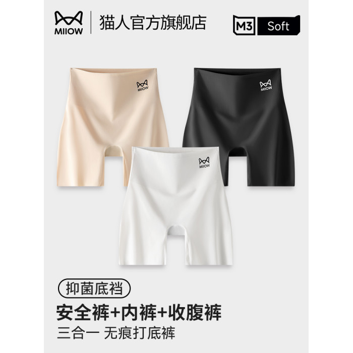 貓人冰絲無痕安全褲防走光女收腹提臀夏季薄款二三合一不卷邊打底