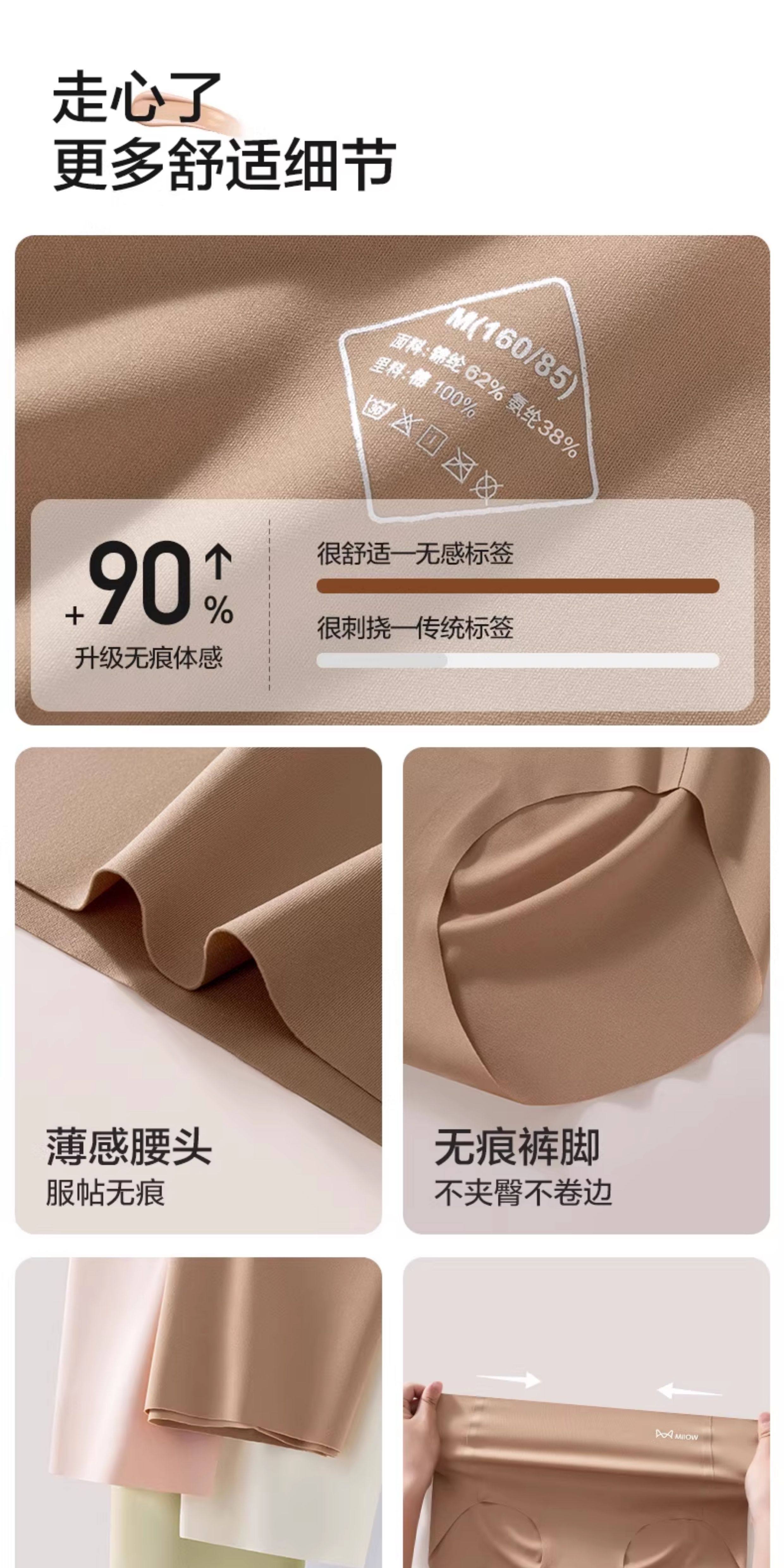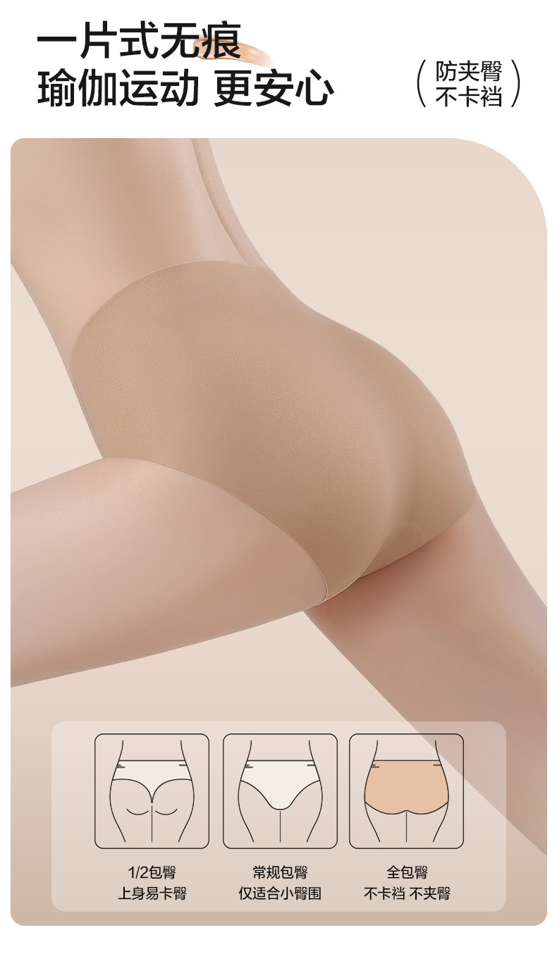 貓人粉底液無痕內褲女士不夾臀冰絲2025新薄款瑜珈健身運動三角褲