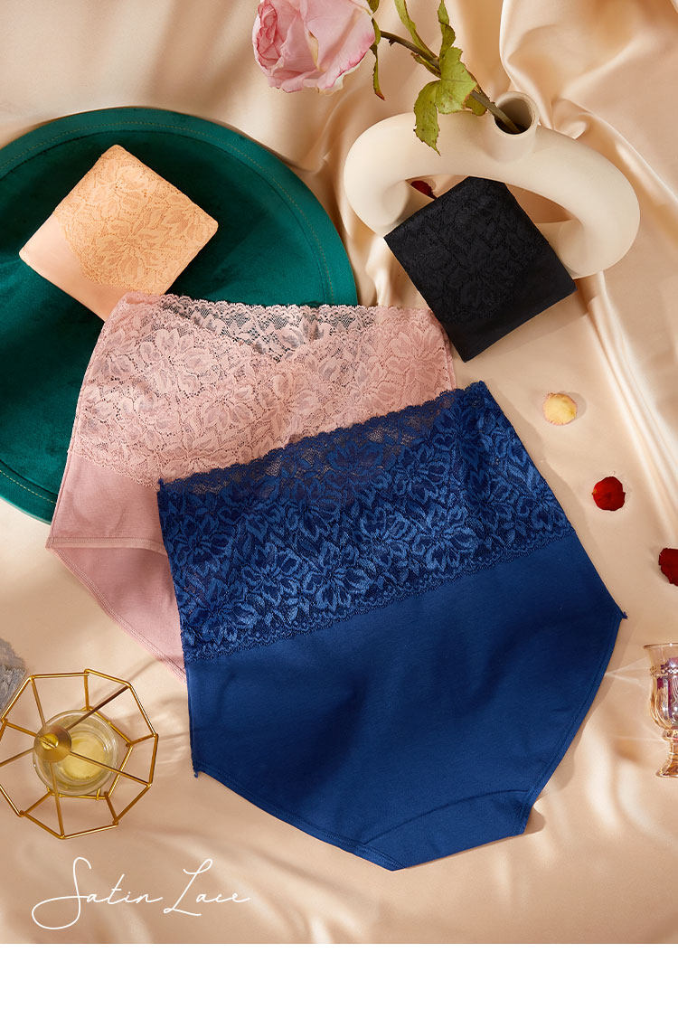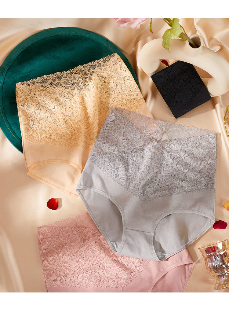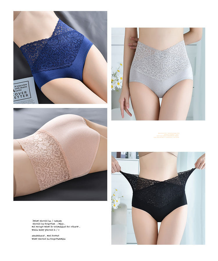 4條 高腰收腹內褲女生純棉蕾絲女士大碼全棉短褲收小肚子夏季薄款