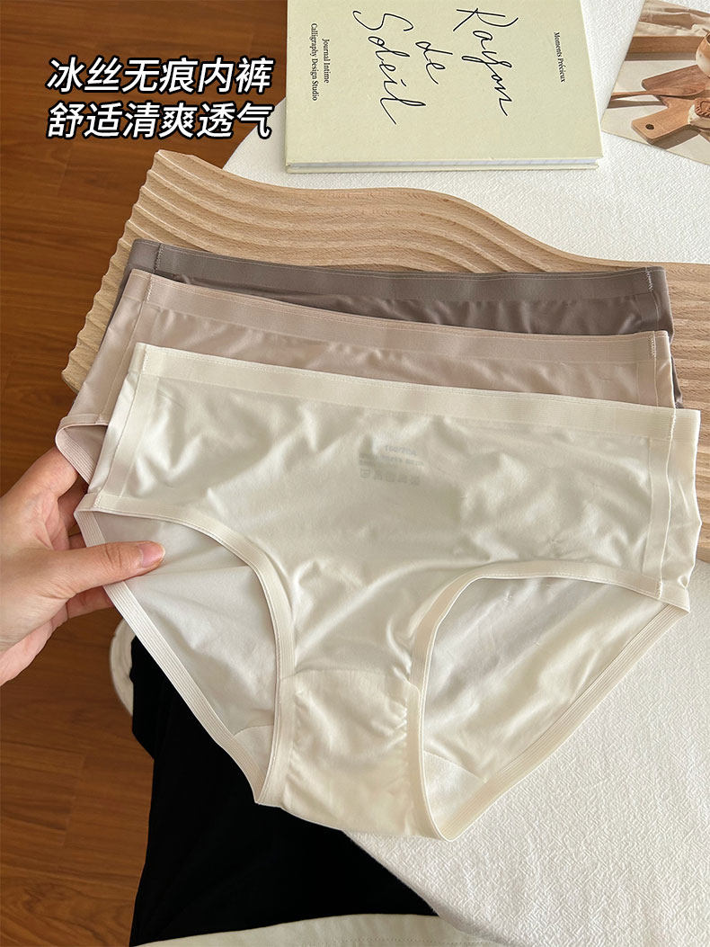 冰絲內褲女士純棉全棉抑菌襠女生2025新款中腰無痕夏季薄款三角褲