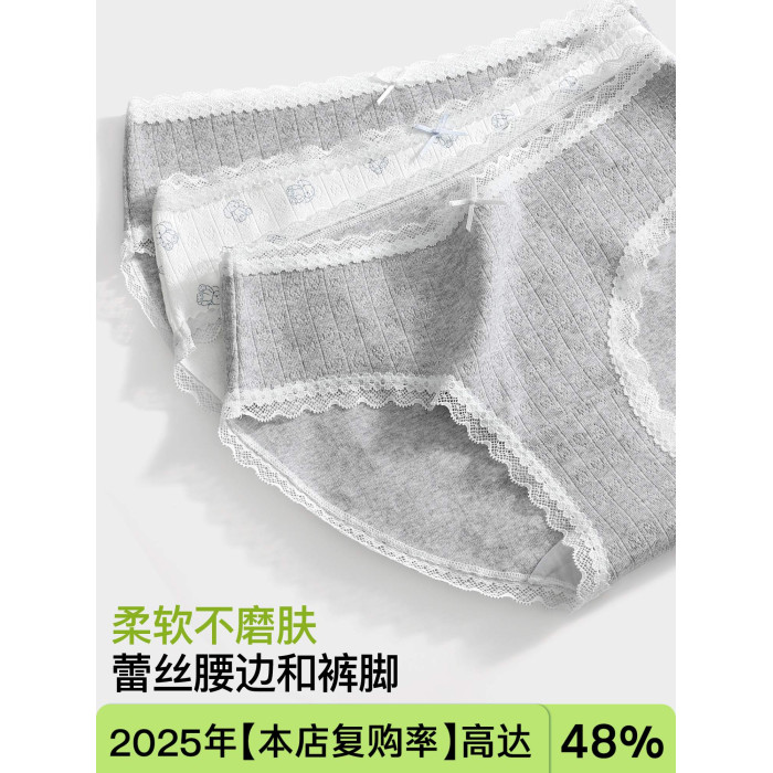 內褲女純棉抑菌全棉襠中腰舒適可愛蕾絲邊少女內褲2025新款三角褲
