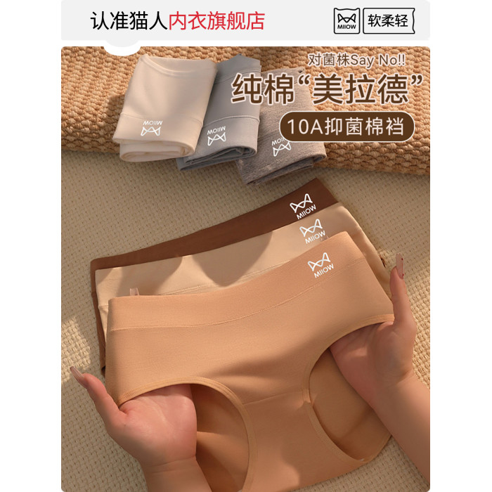 貓人內褲女士純棉抗菌襠2025新款秋冬美拉德無痕運動中腰三角短褲