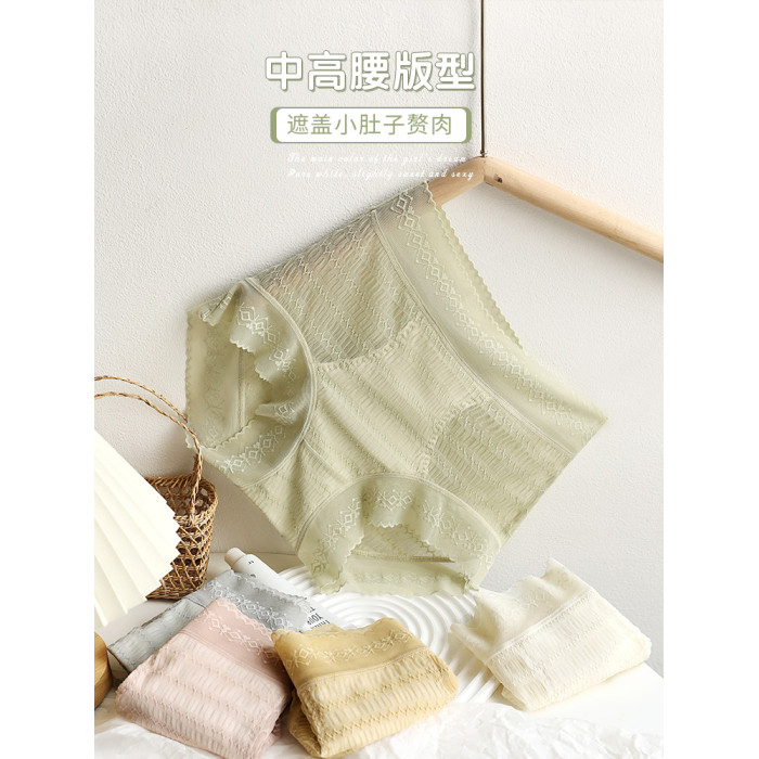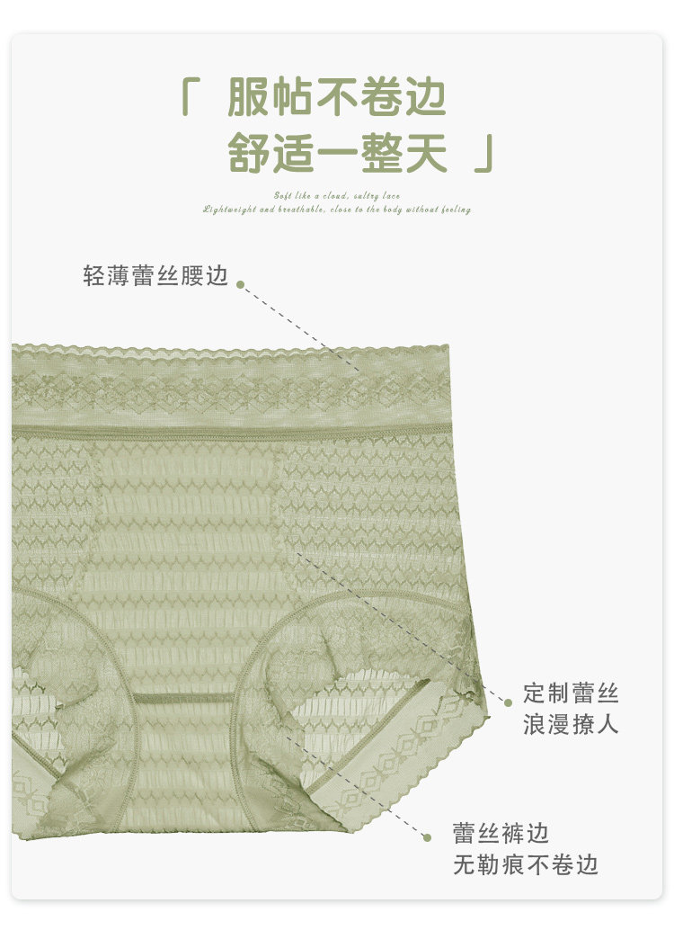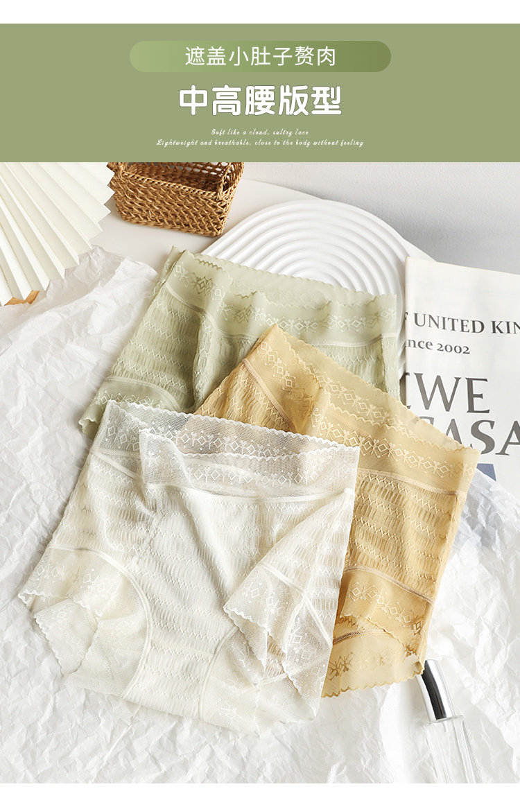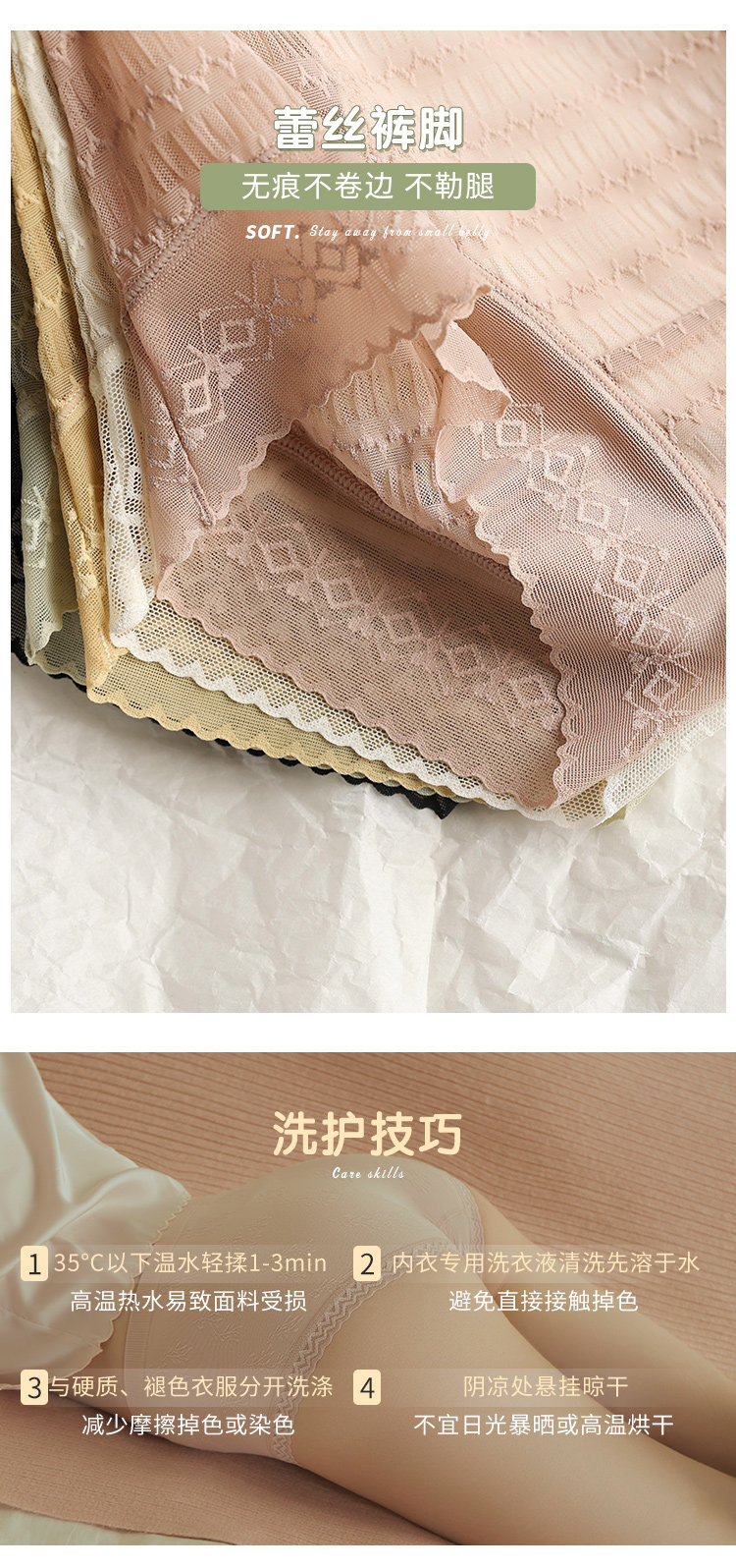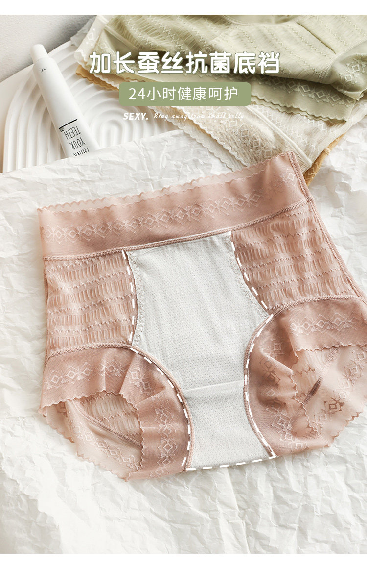 美宅高腰內褲女蕾絲無痕隱形收腹2025新款蠶絲襠大碼輕奢貴婦高級