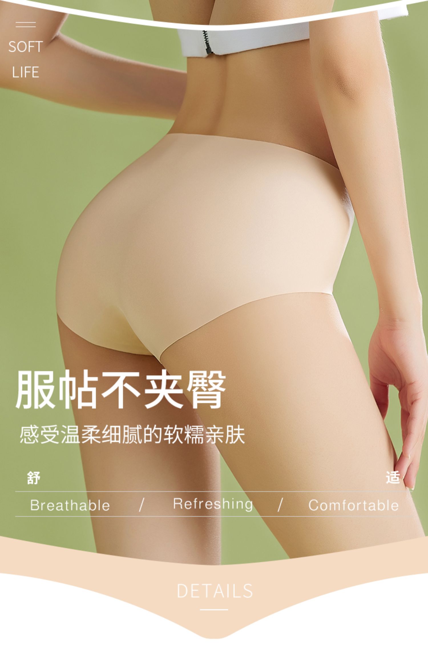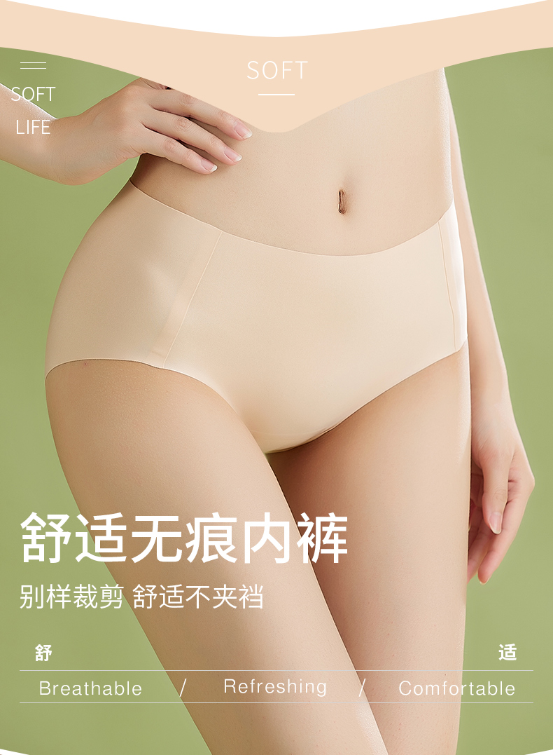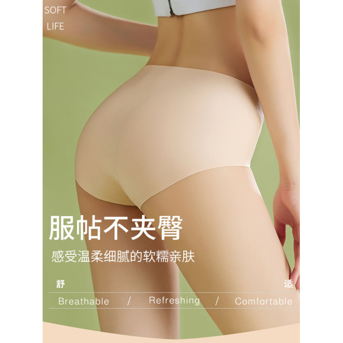 無痕內褲女純棉襠冰絲夏季中腰薄款三角女士透氣大碼褲頭舒適高彈