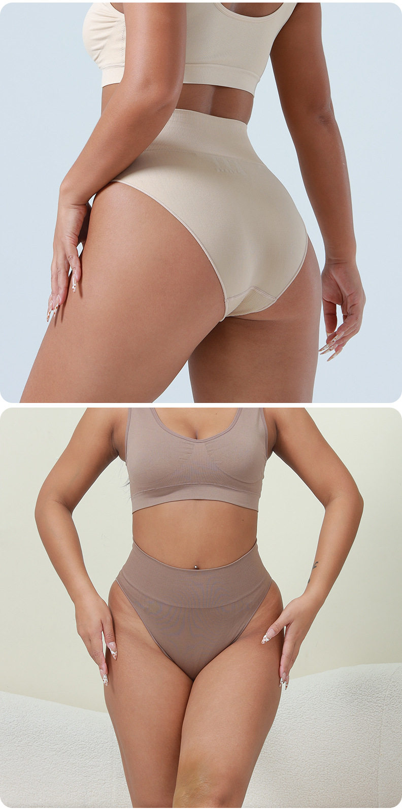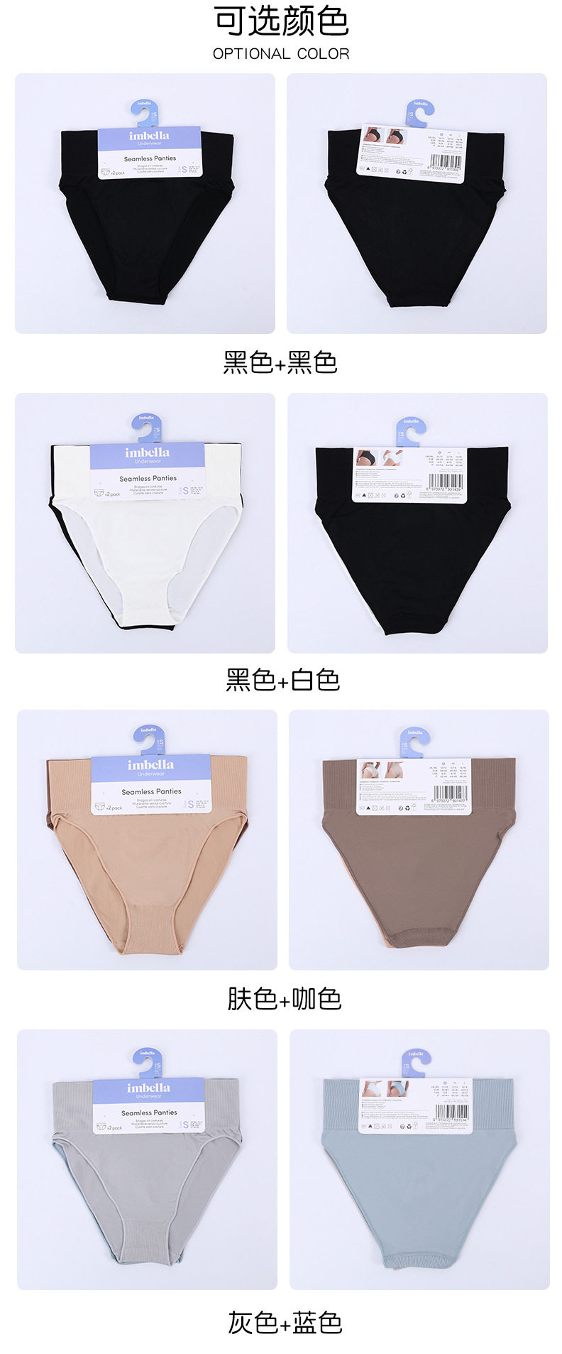 2條裝 高腰收腹無縫內褲大碼純色透氣一體式無感無痕女士運動內褲