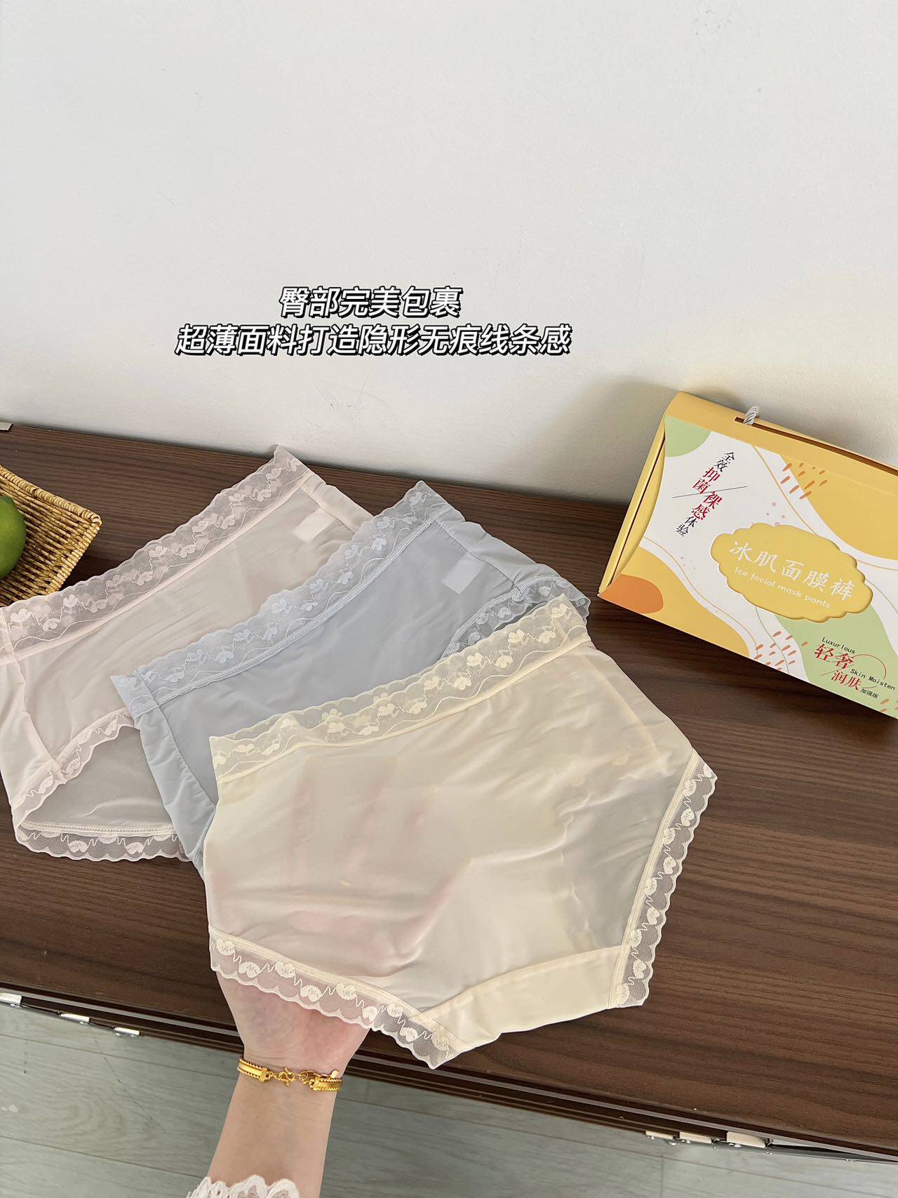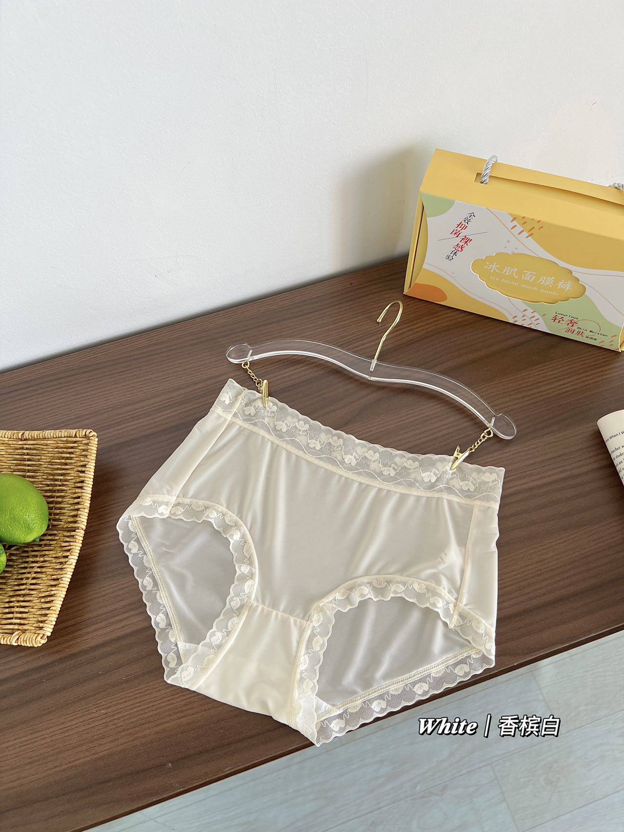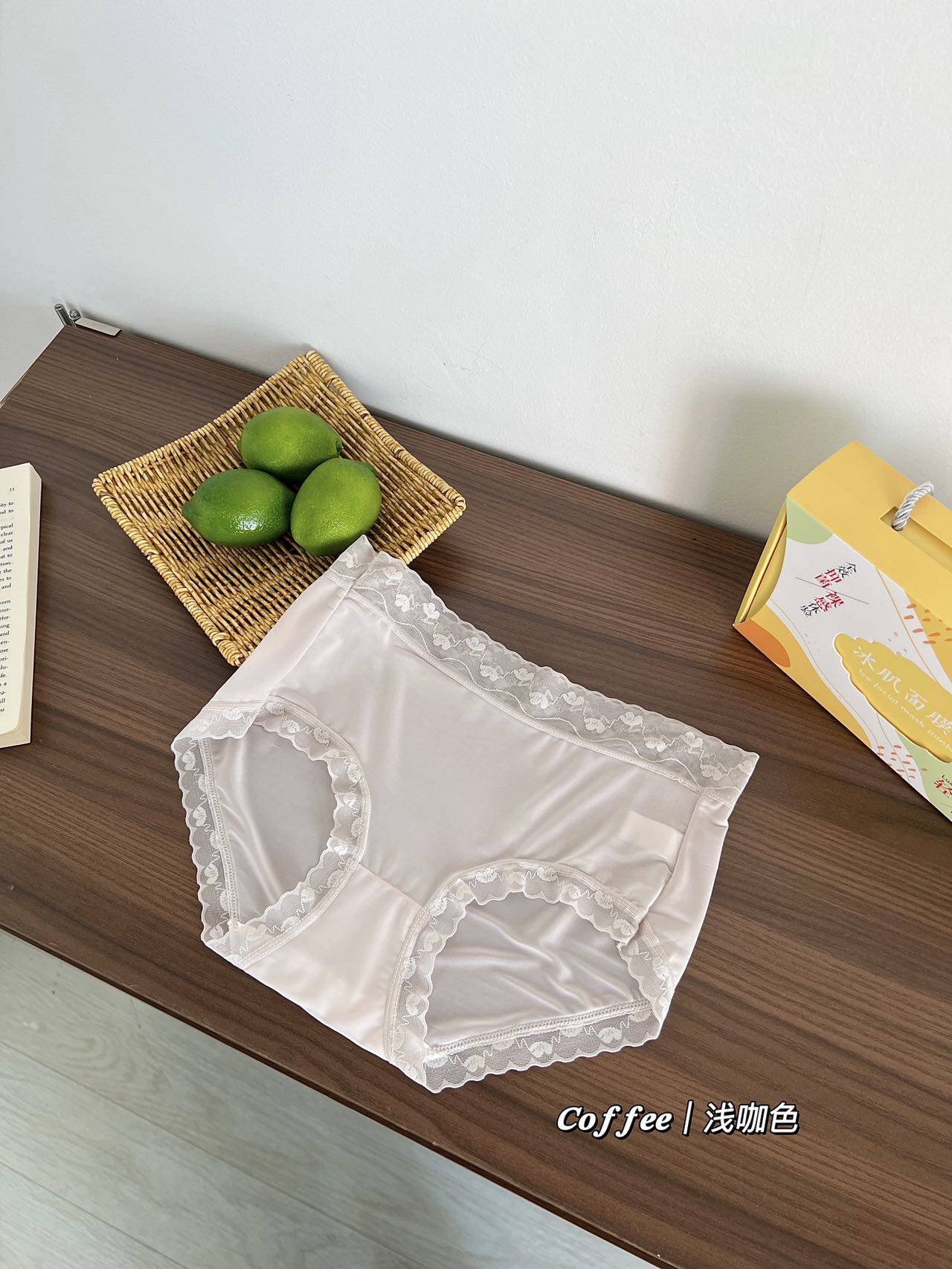 10A桑蠶絲冰肌面膜褲9002#夏季內褲女超薄透氣中腰蕾絲少女三角褲