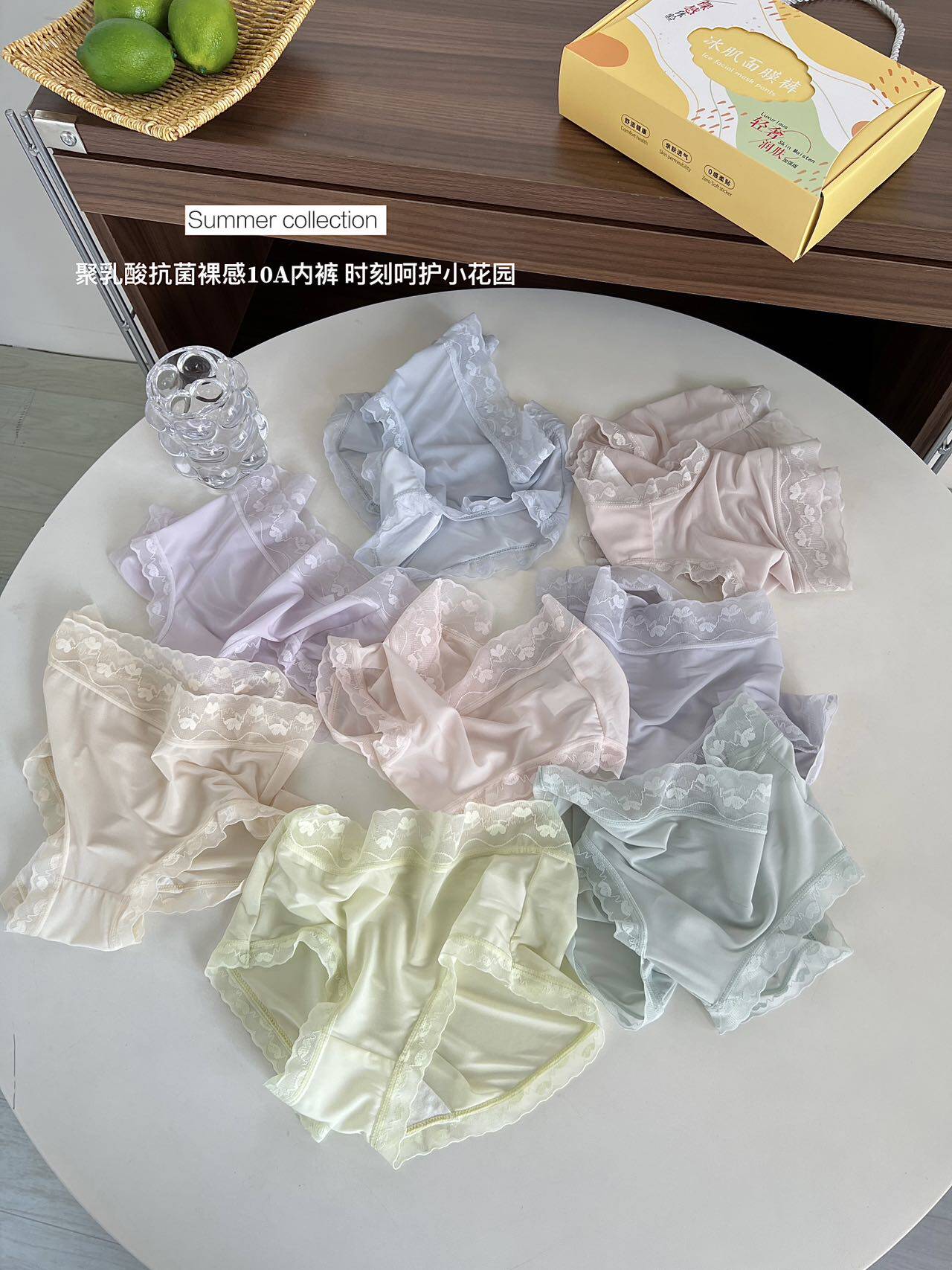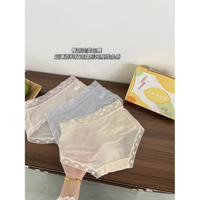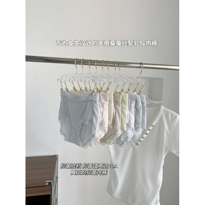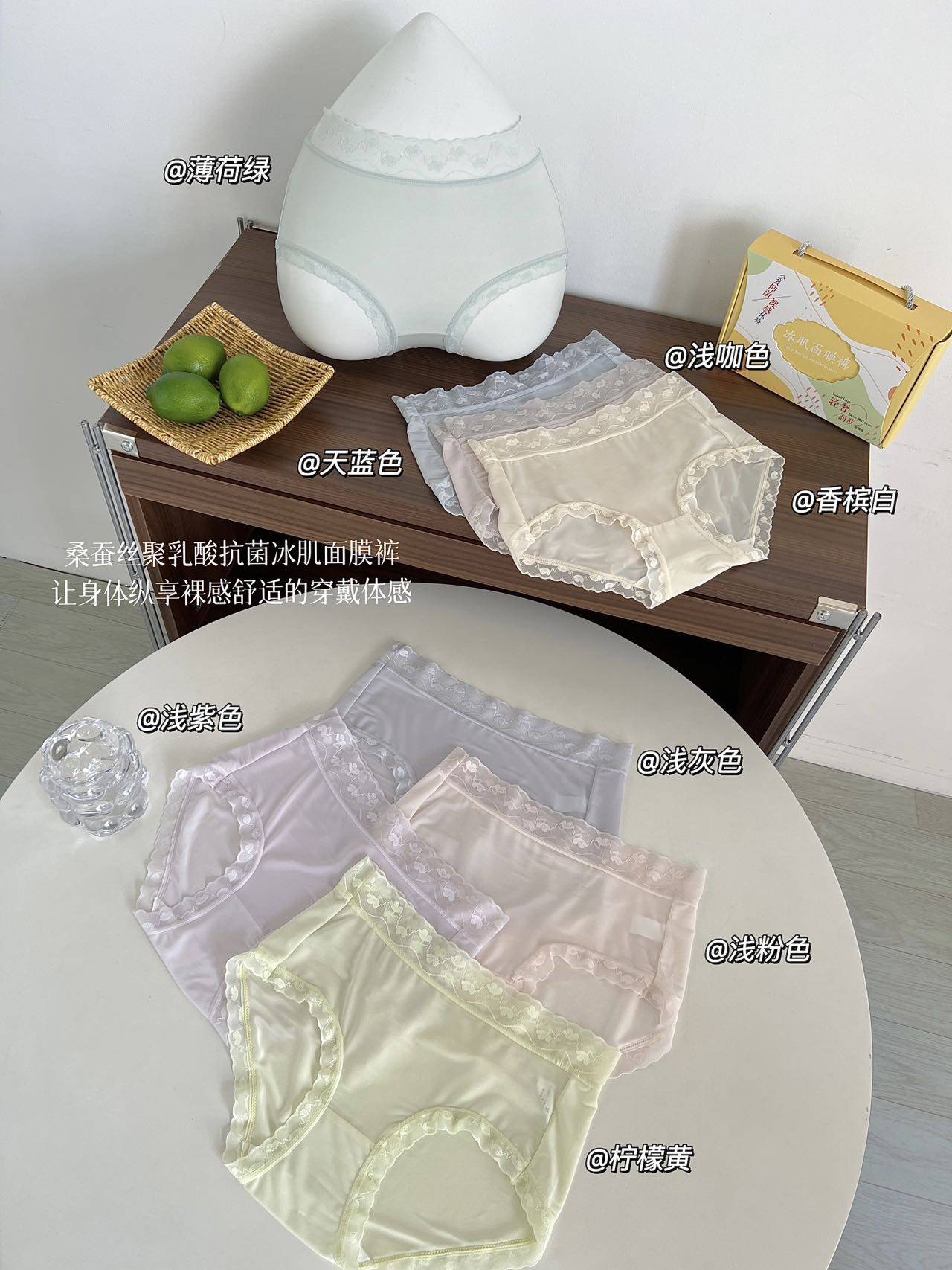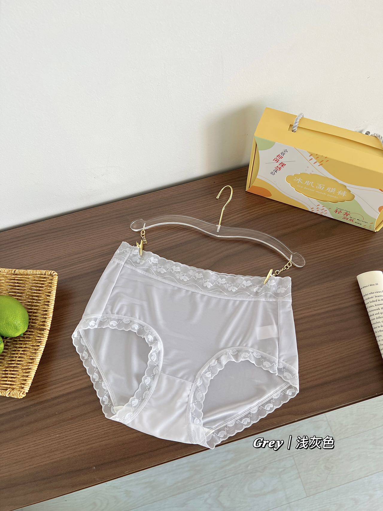 10A桑蠶絲冰肌面膜褲9002#夏季內褲女超薄透氣中腰蕾絲少女三角褲