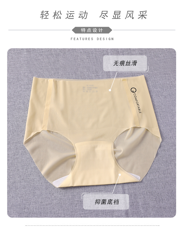 輕薄裸感一片式無痕冰絲運動內褲中腰透氣簡約舒適親膚少女三角褲