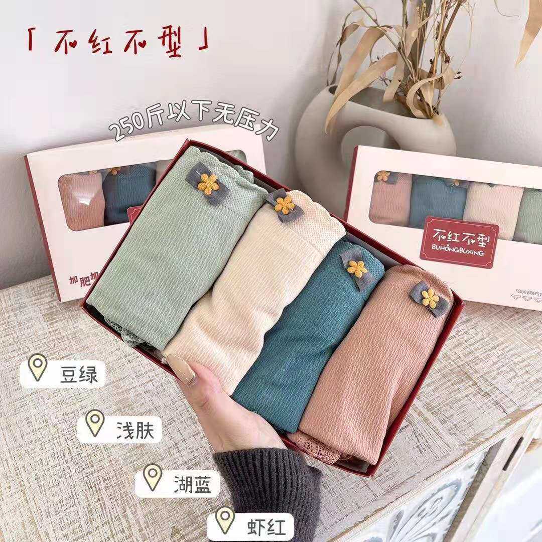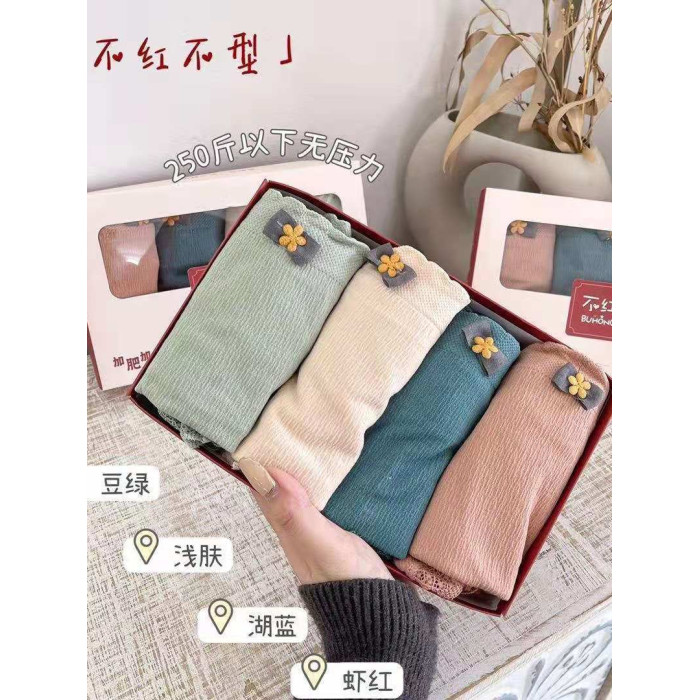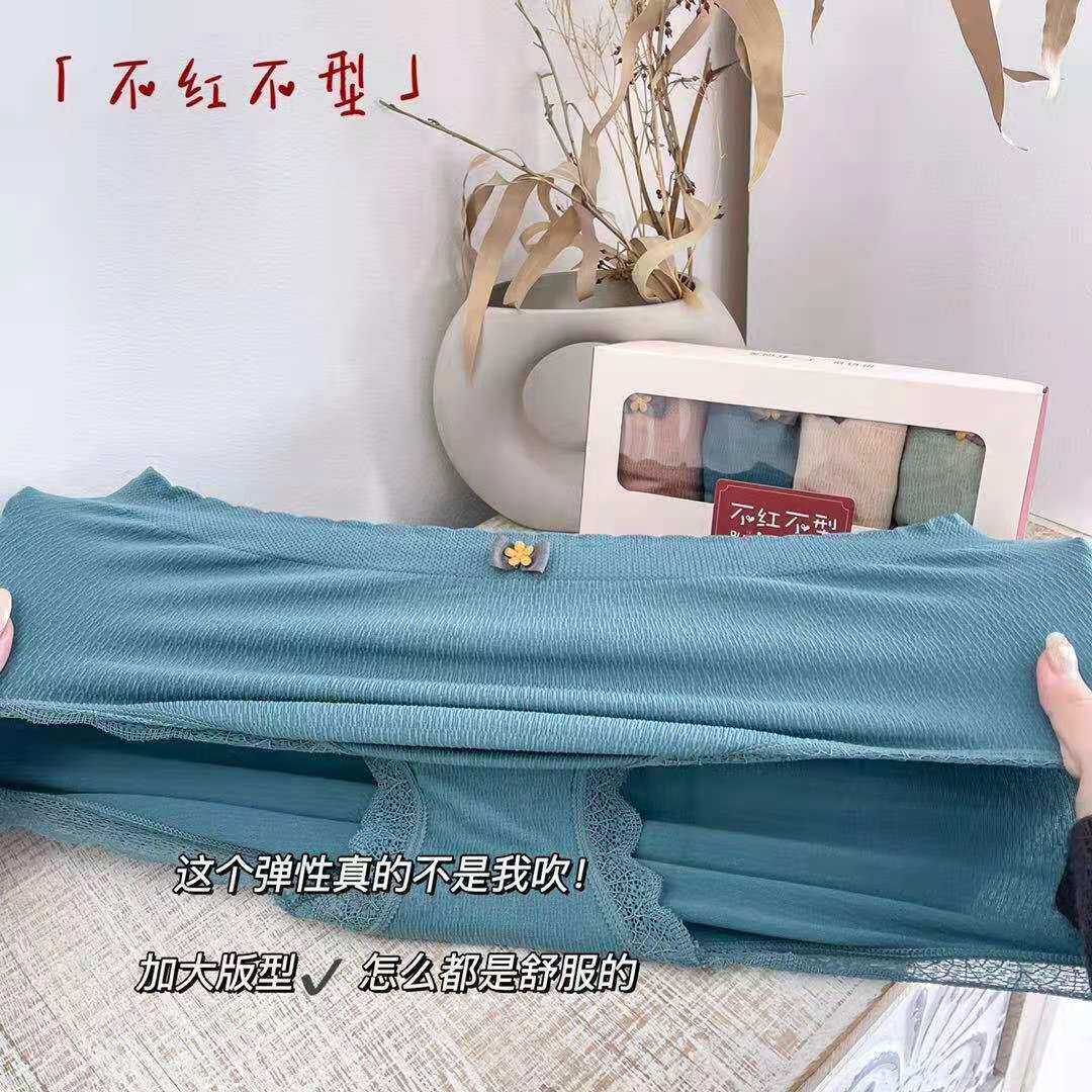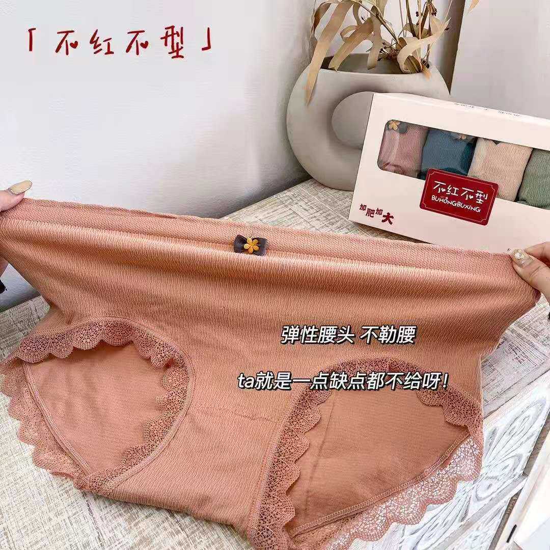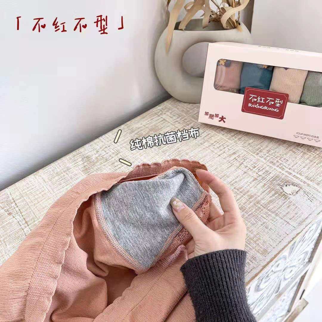 四條裝加大碼內褲女純棉抗菌襠胖mm收腹無痕提臀甜美中高腰三角褲