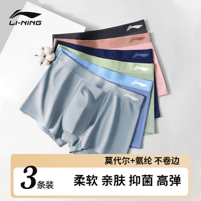 李甯運動內褲男士莫代爾棉純抗菌透氣青少年跑步四角平角褲馬拉松