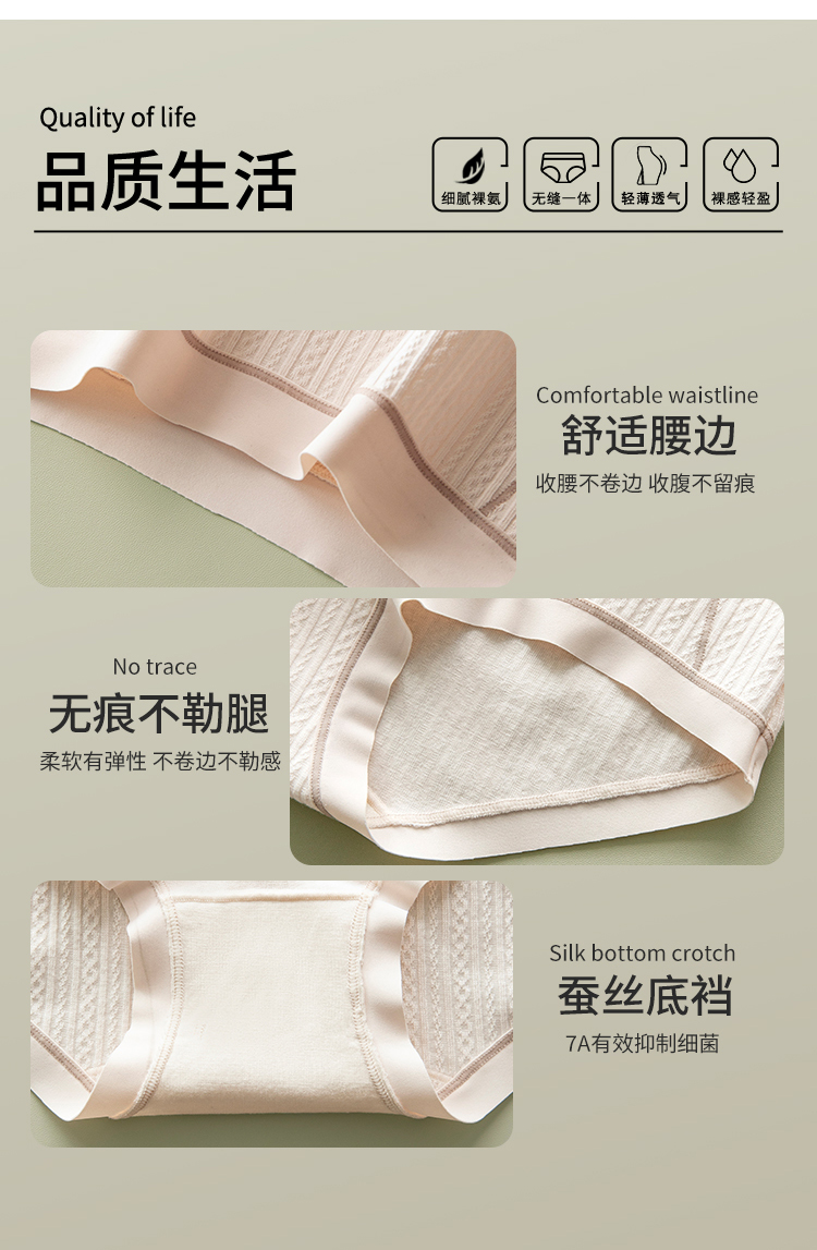 好寵A類棉女士內褲7A蠶絲抗菌襠中腰純色棉感透氣不夾臀2025新款