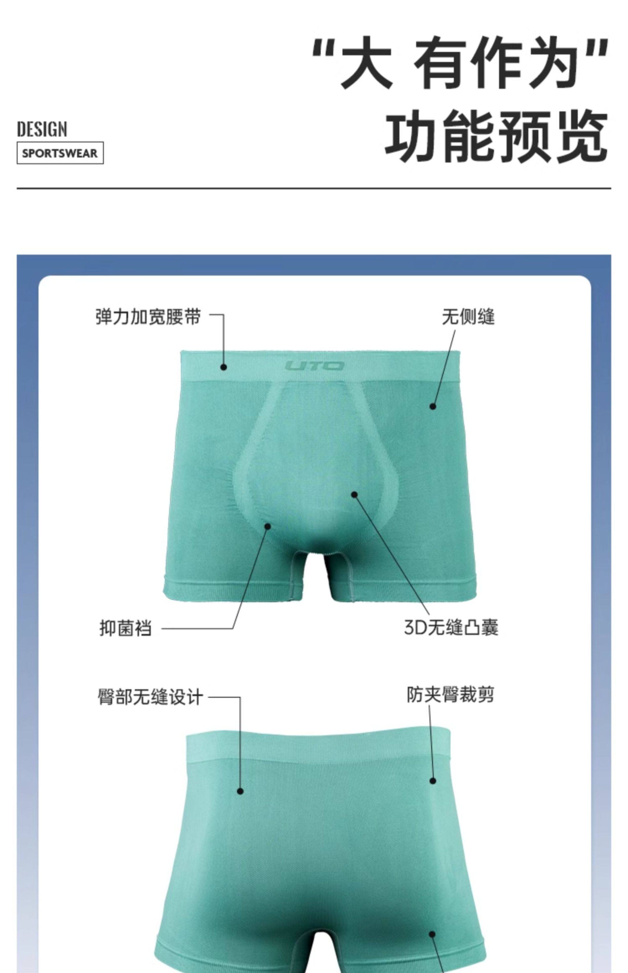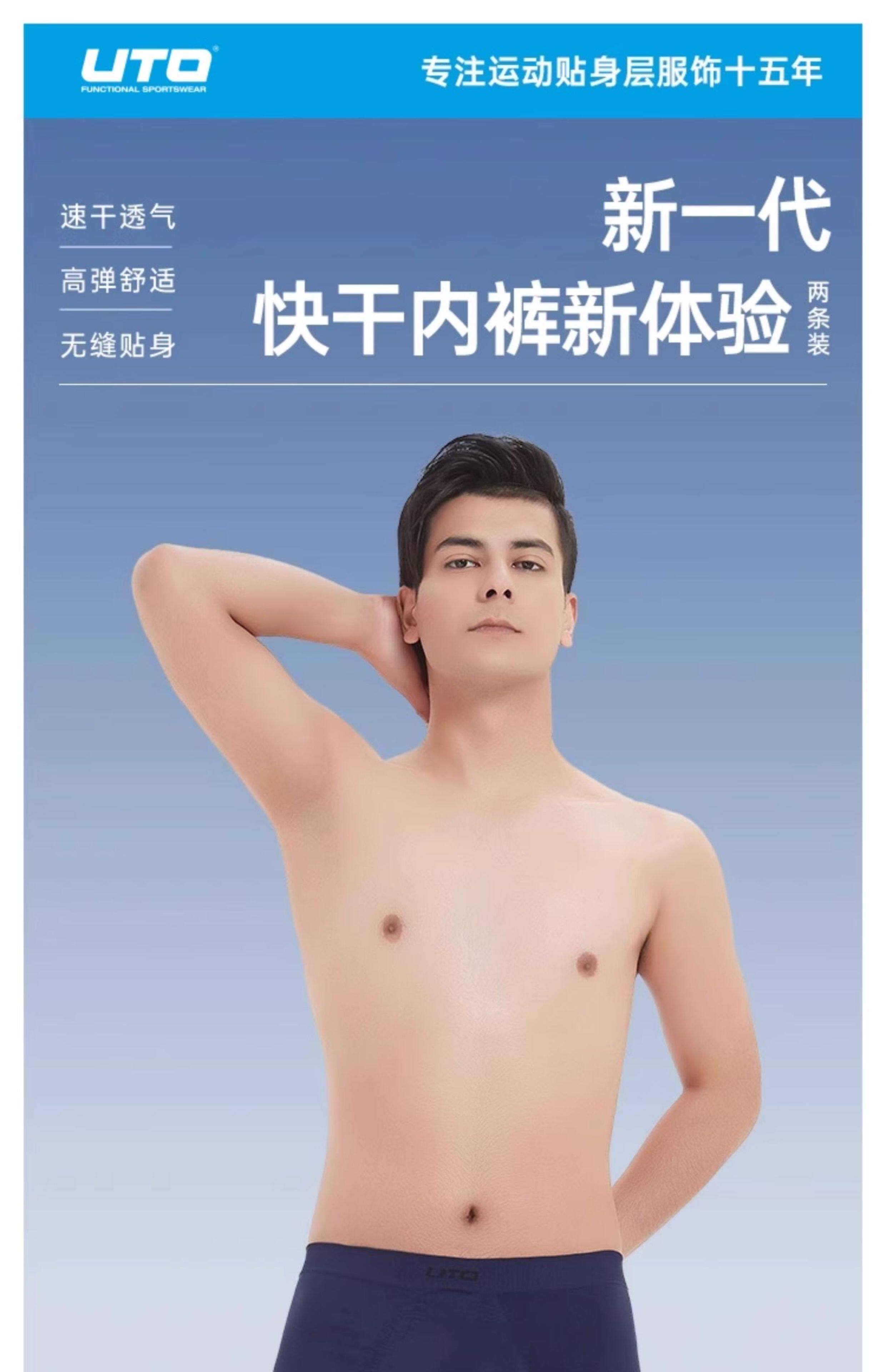 UTO男士運動內褲專業跑步內褲透氣防磨襠排汗速乾內褲2條裝平角褲