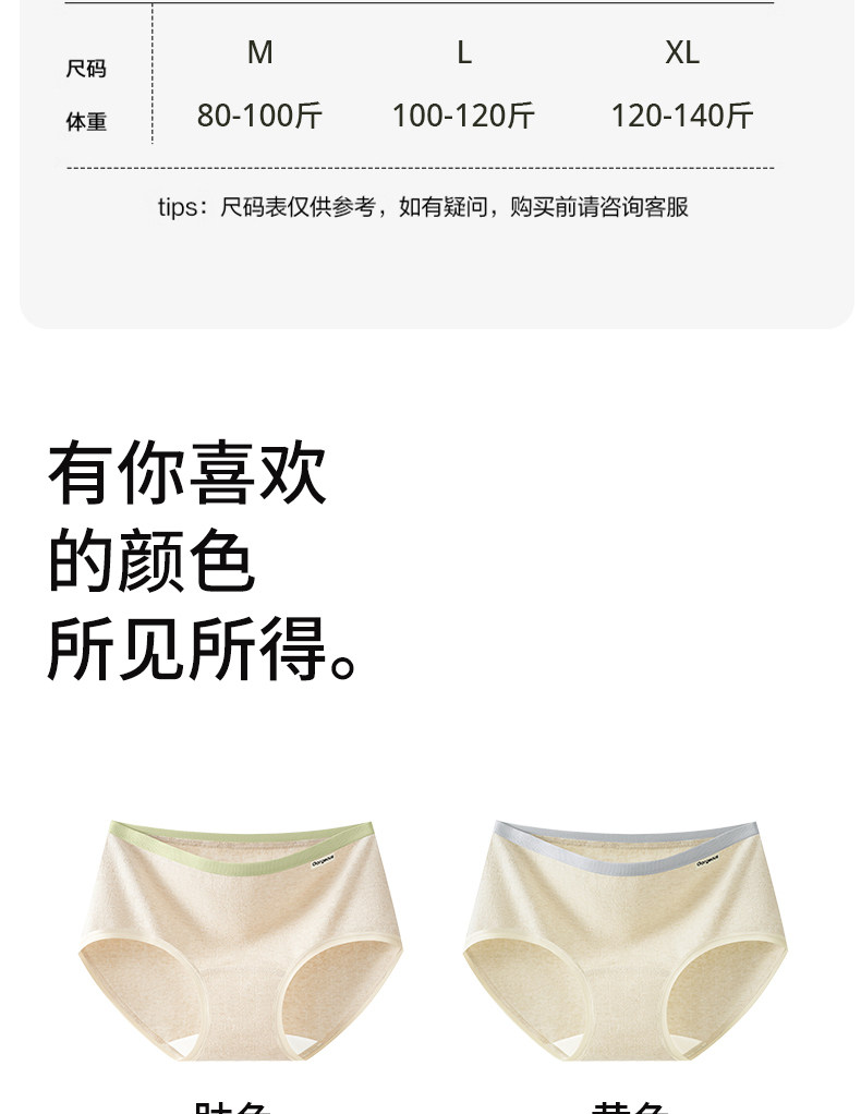 內褲女士純棉10A抗菌100%全棉襠中腰無痕a類棉少女生透氣三角短褲