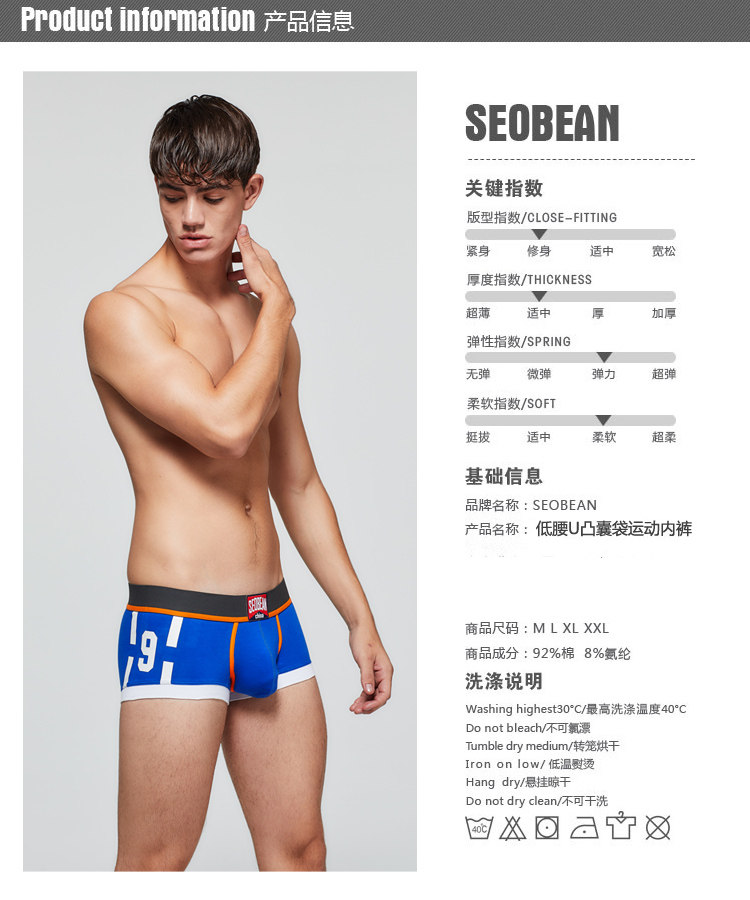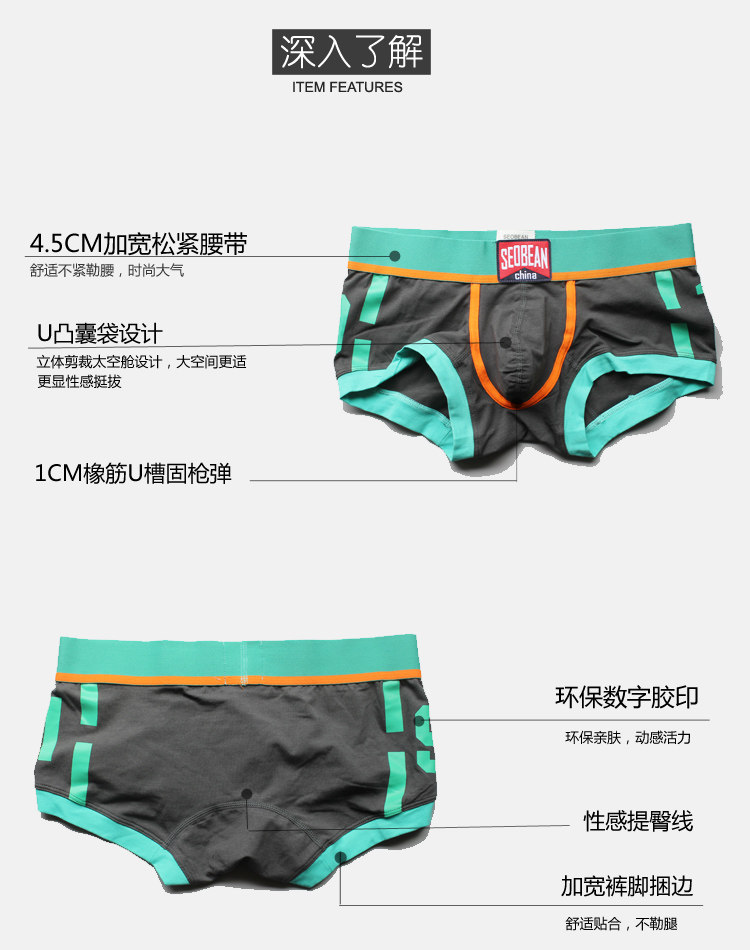低腰U凸囊袋男平角內褲青年純棉透氣緊身性感四角褲頭運動內褲潮