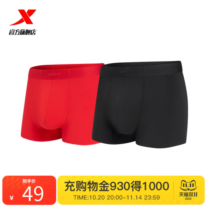 【2條裝】特步運動內褲男2025春季新款透氣高彈不易變形平角褲