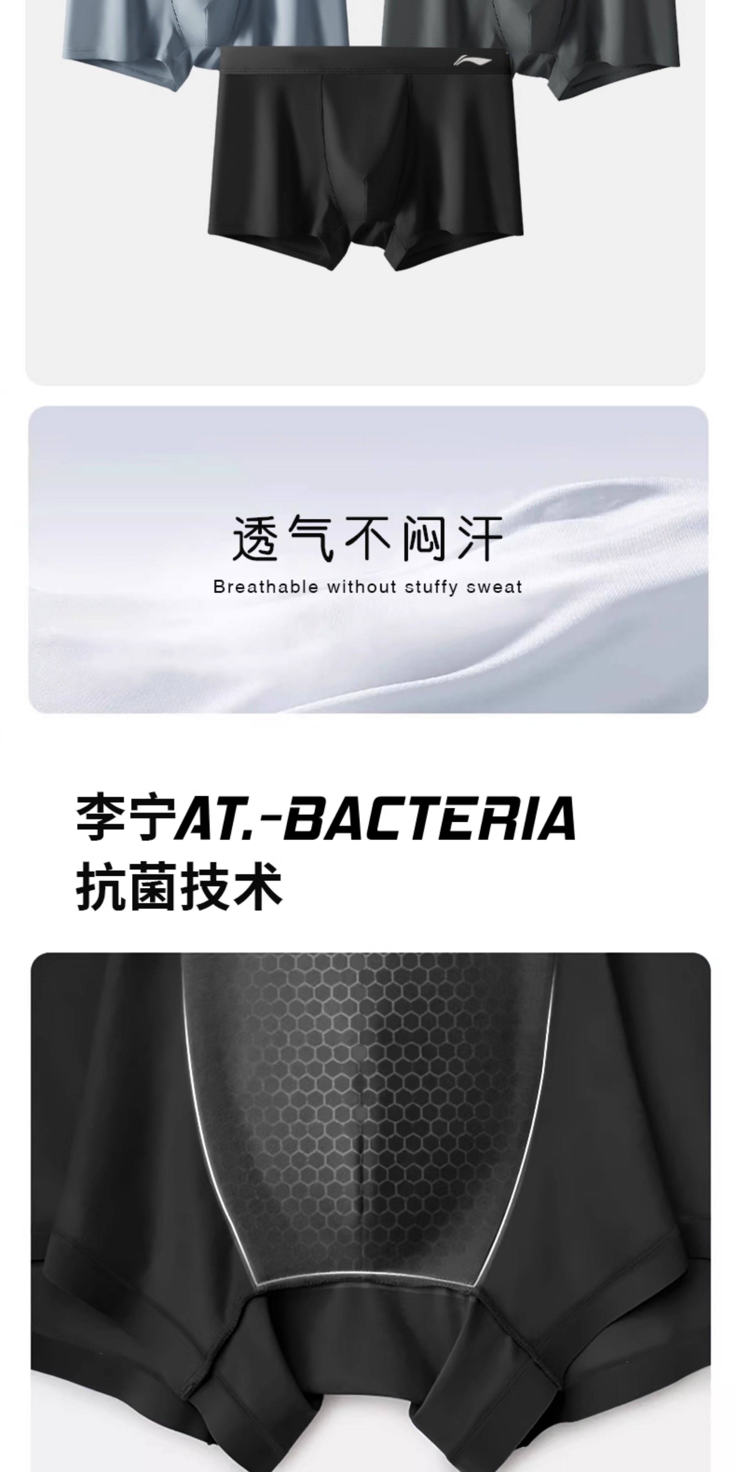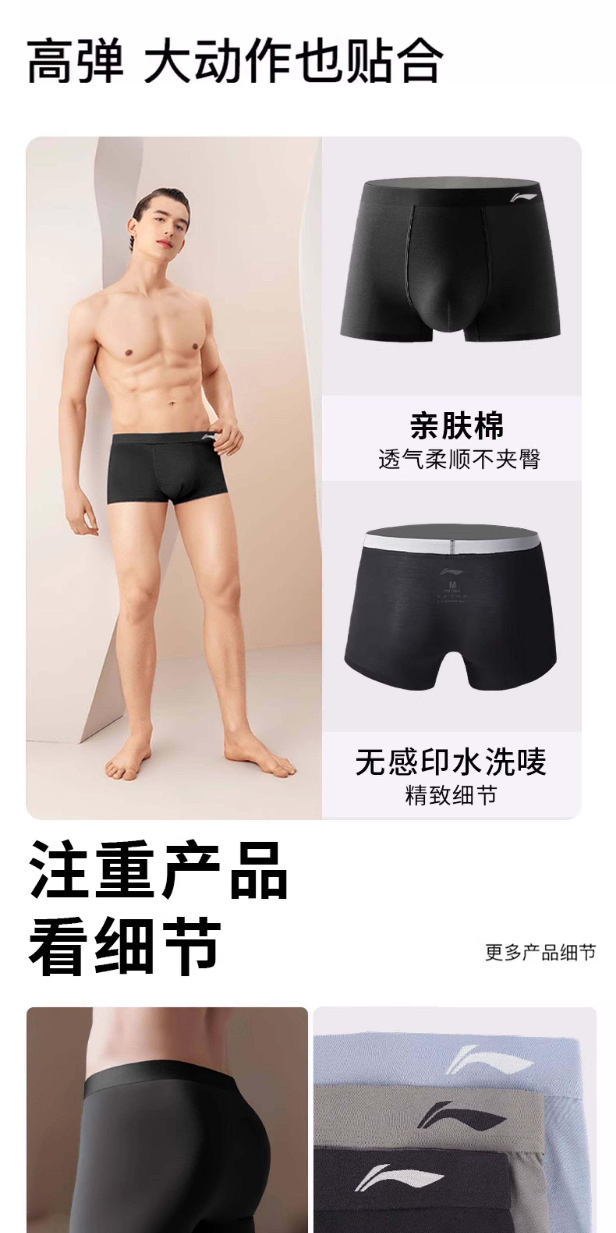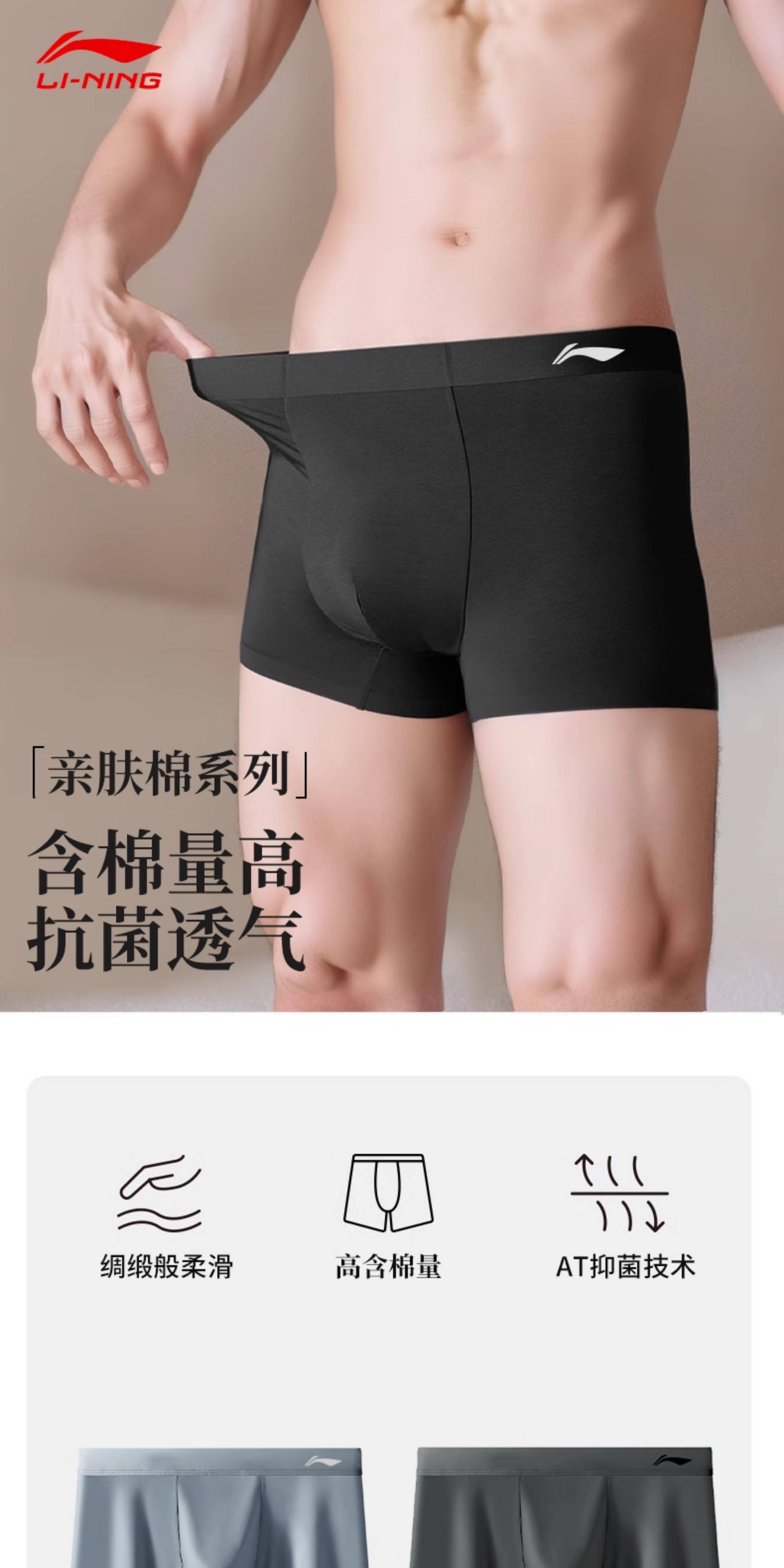 李甯運動內褲男士莫代爾棉純四角褲2025新款透氣跑步訓練平角內褲
