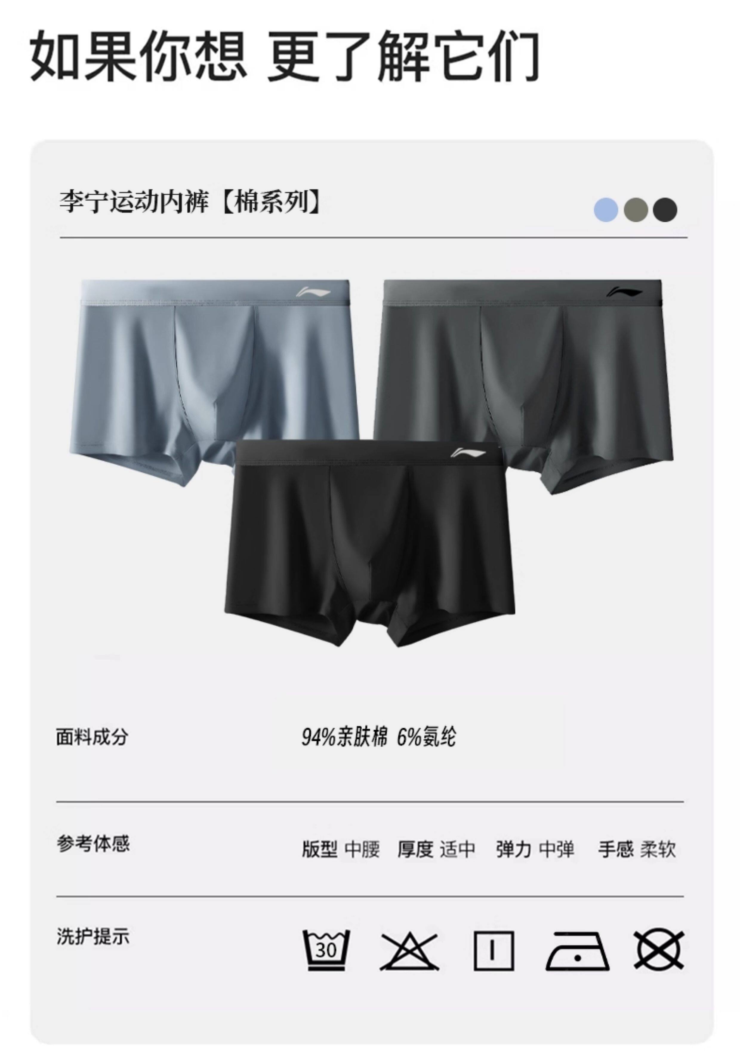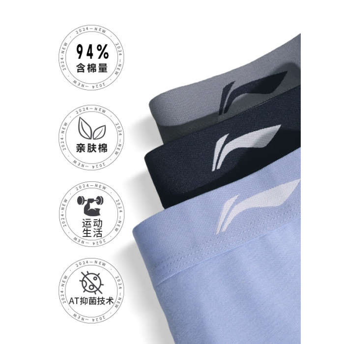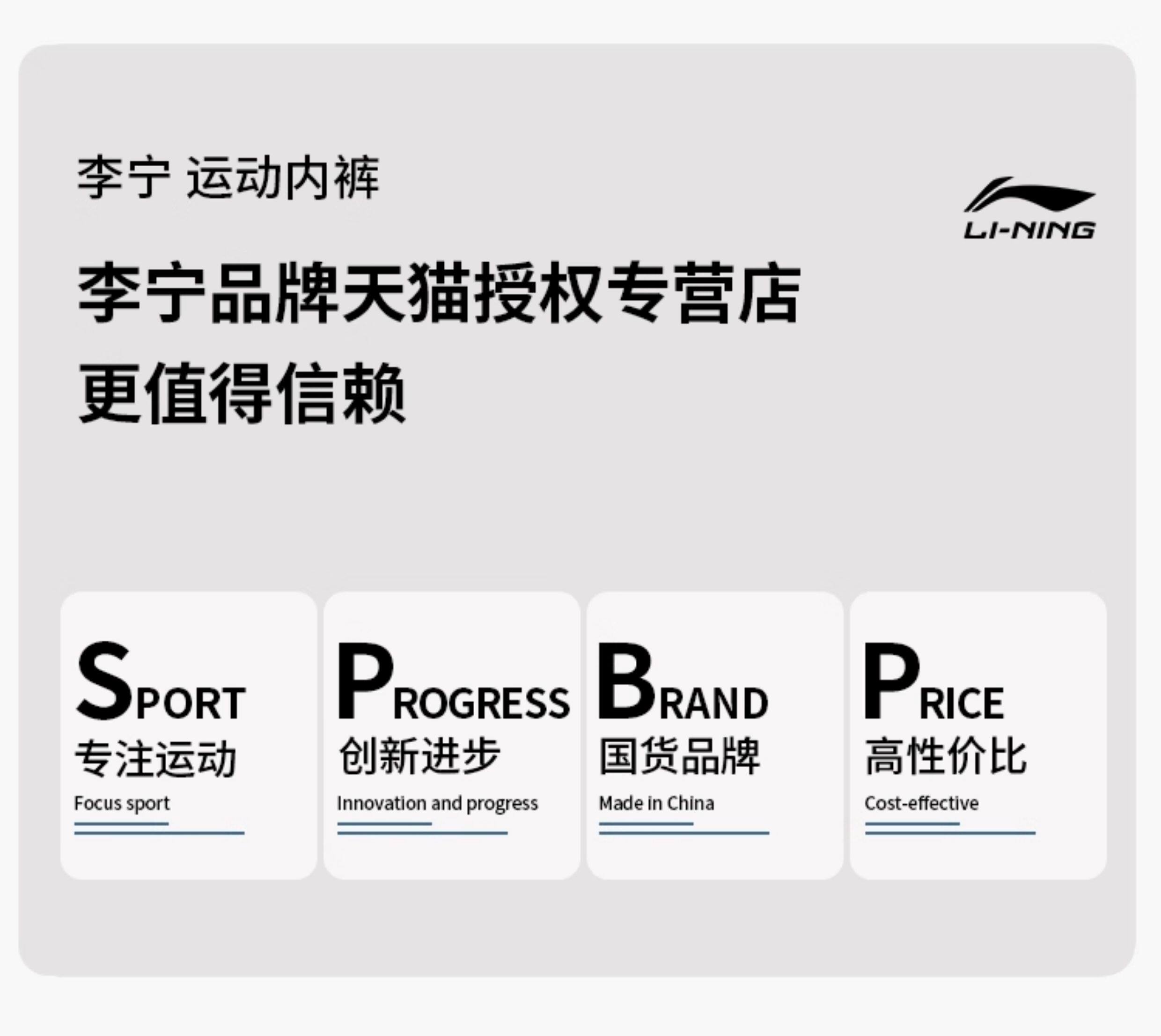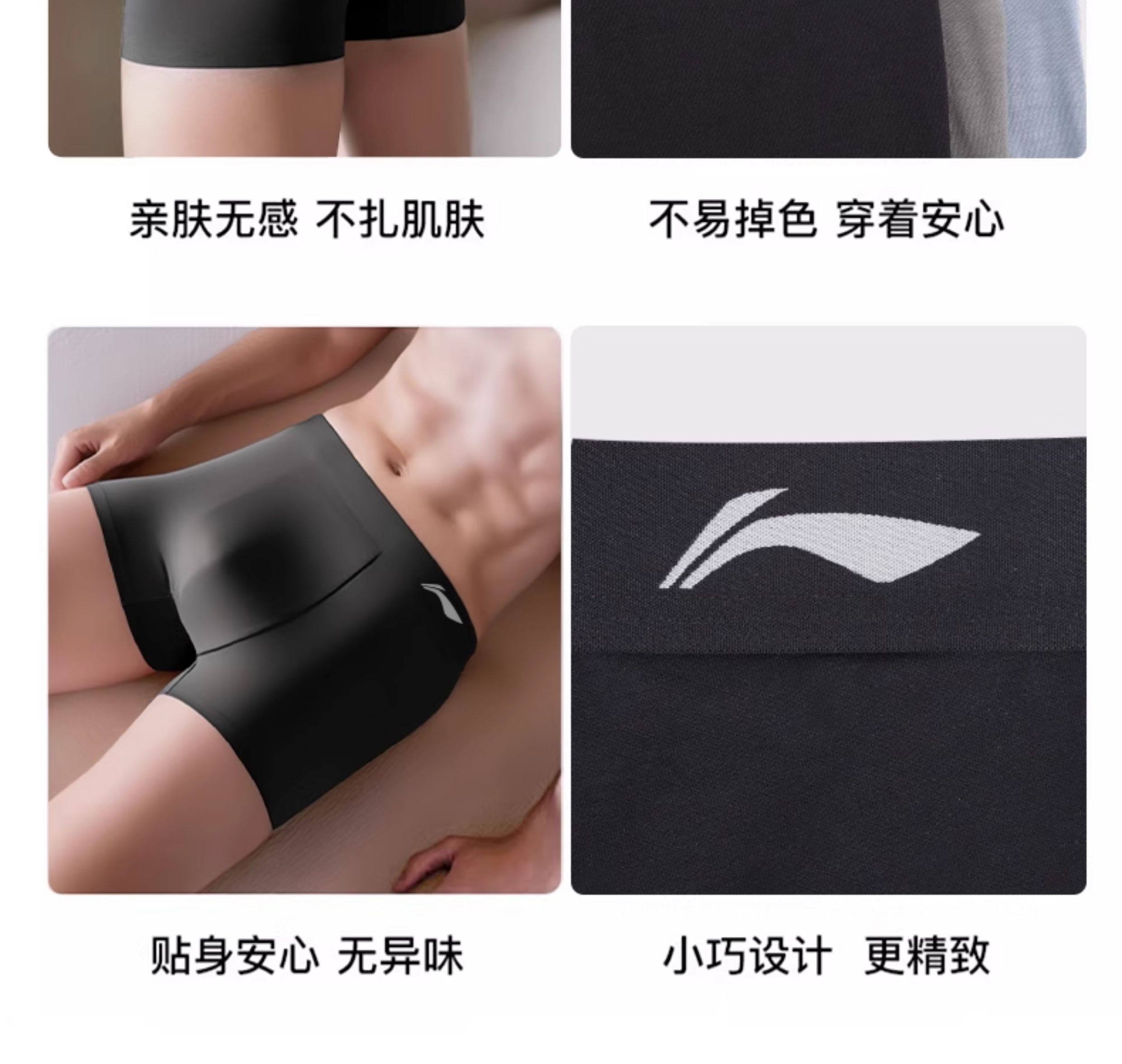 李甯運動內褲男士莫代爾棉純四角褲2025新款透氣跑步訓練平角內褲