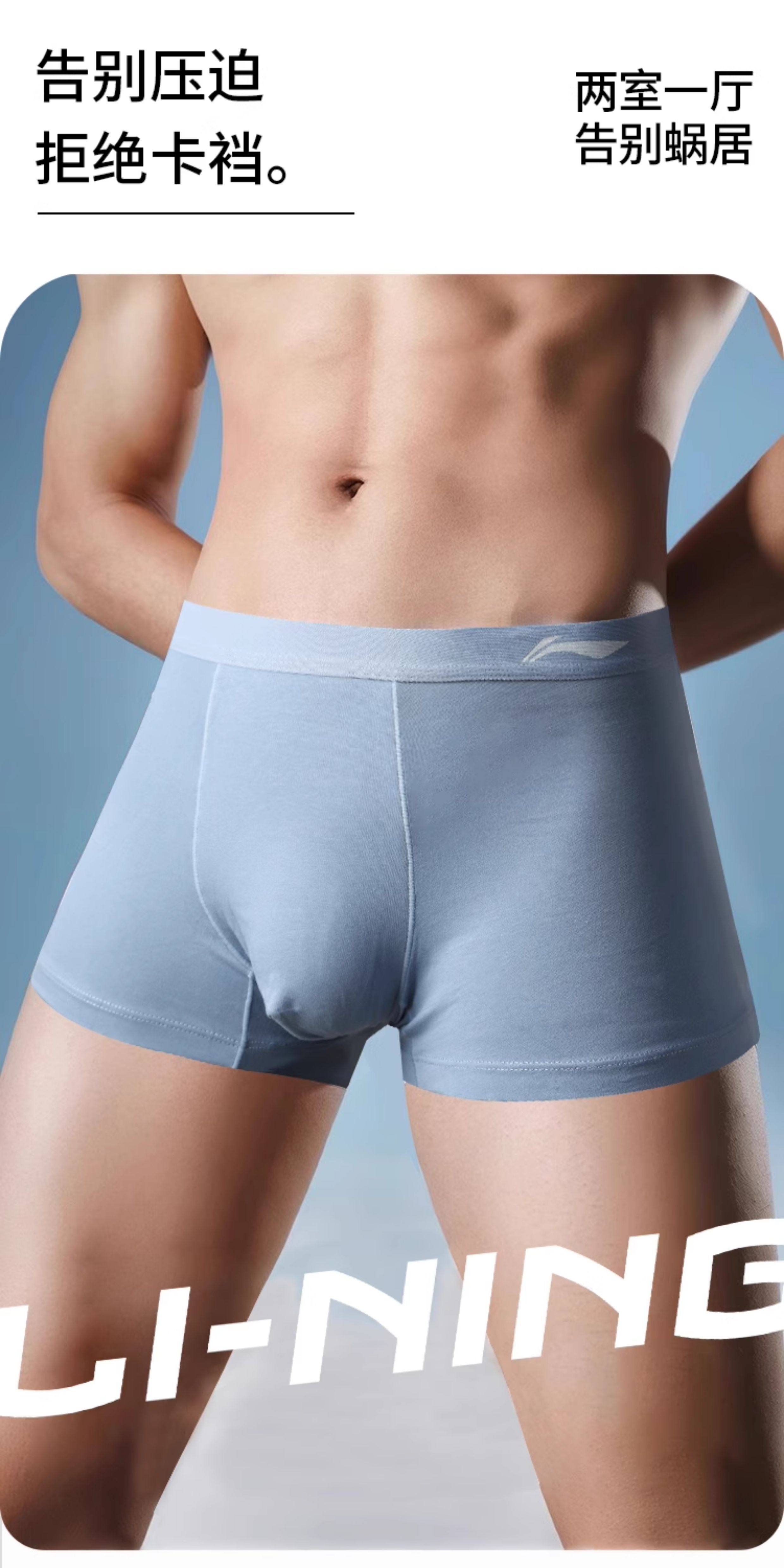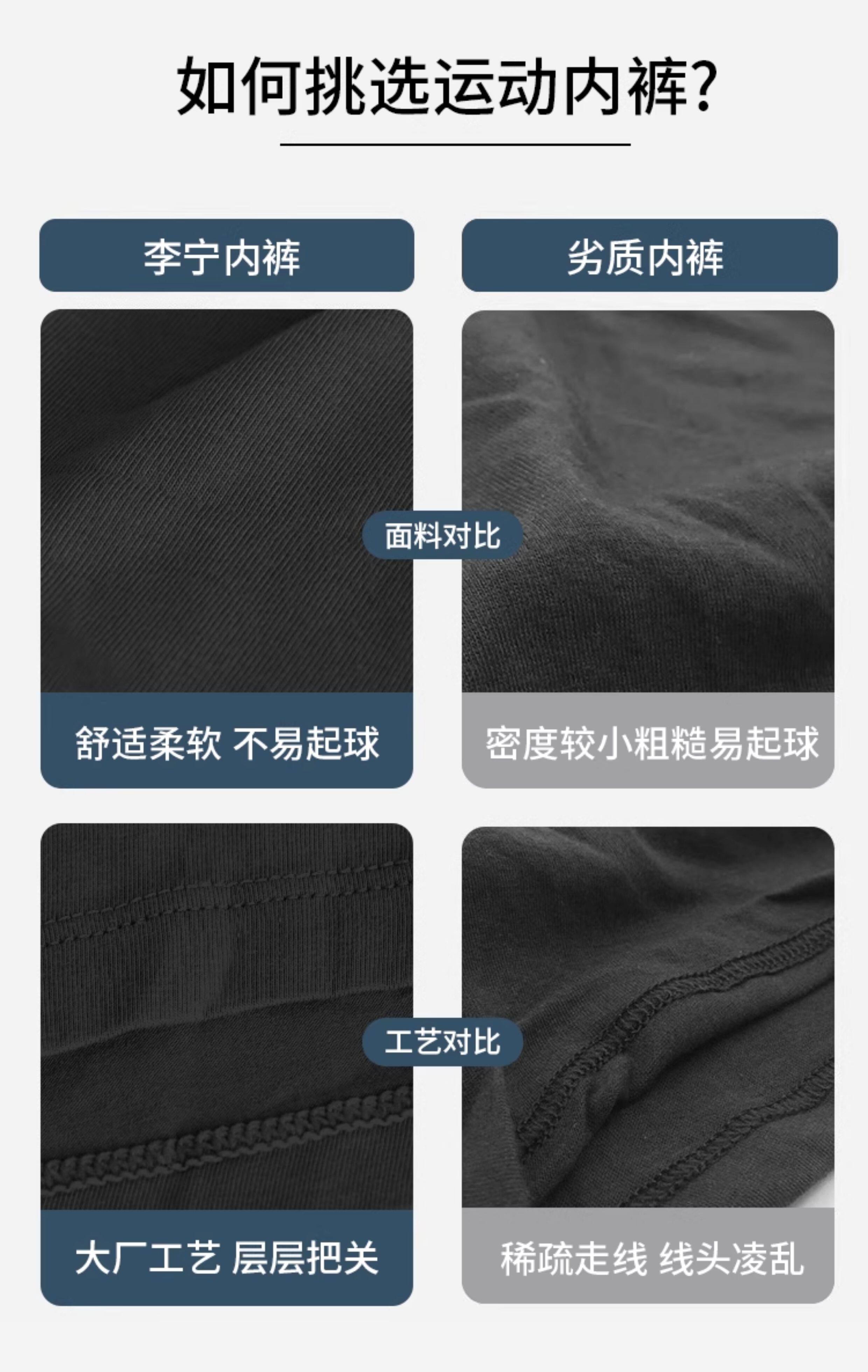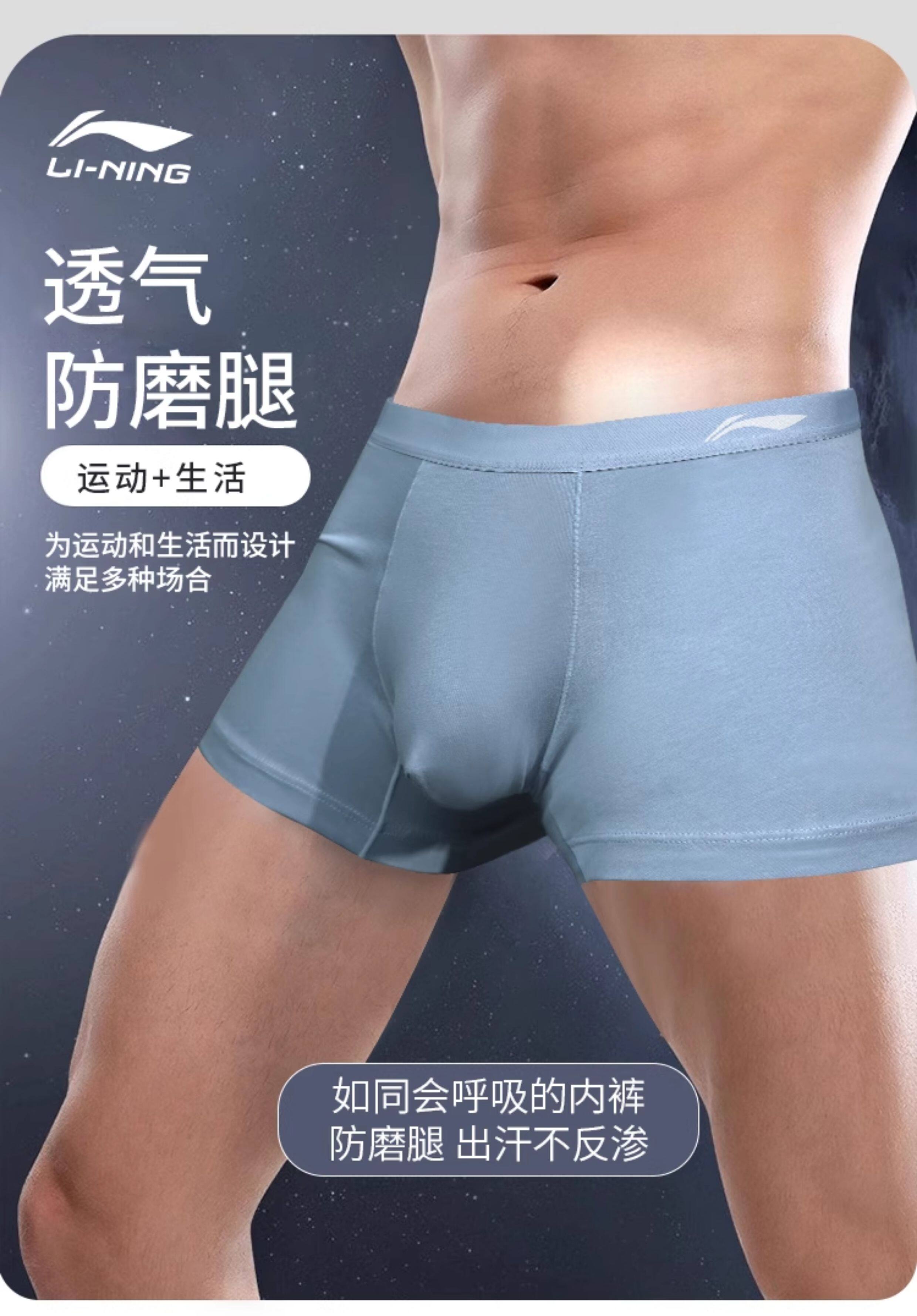 李甯運動內褲男顯大2025年新款非純棉透氣跑步健身防磨四角平角褲