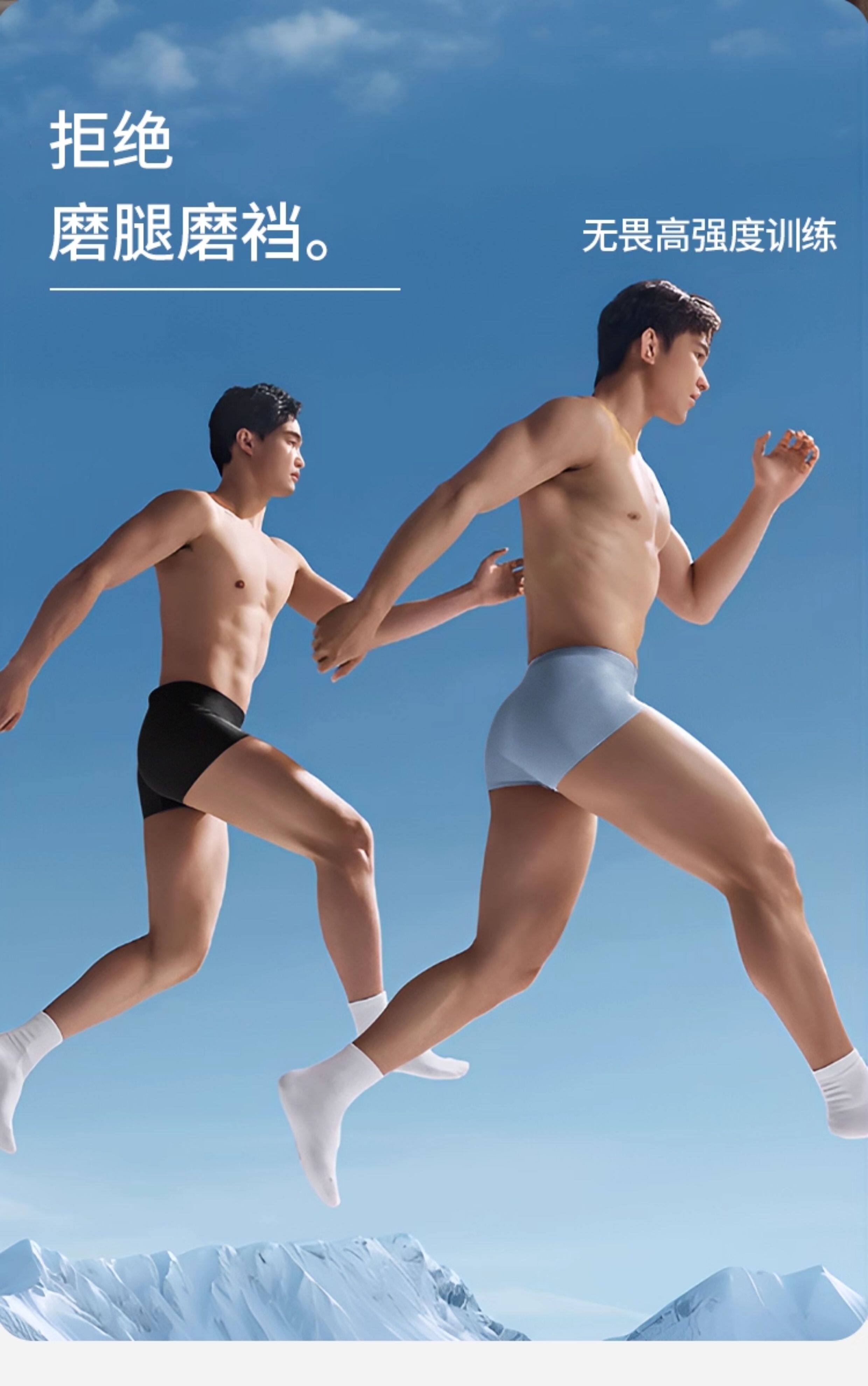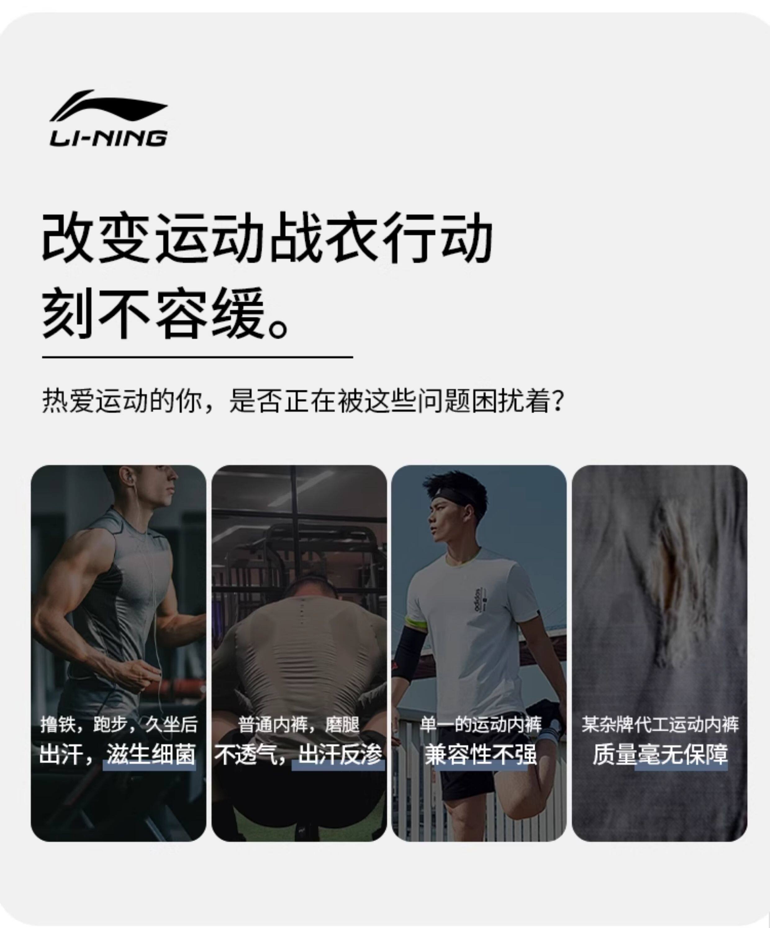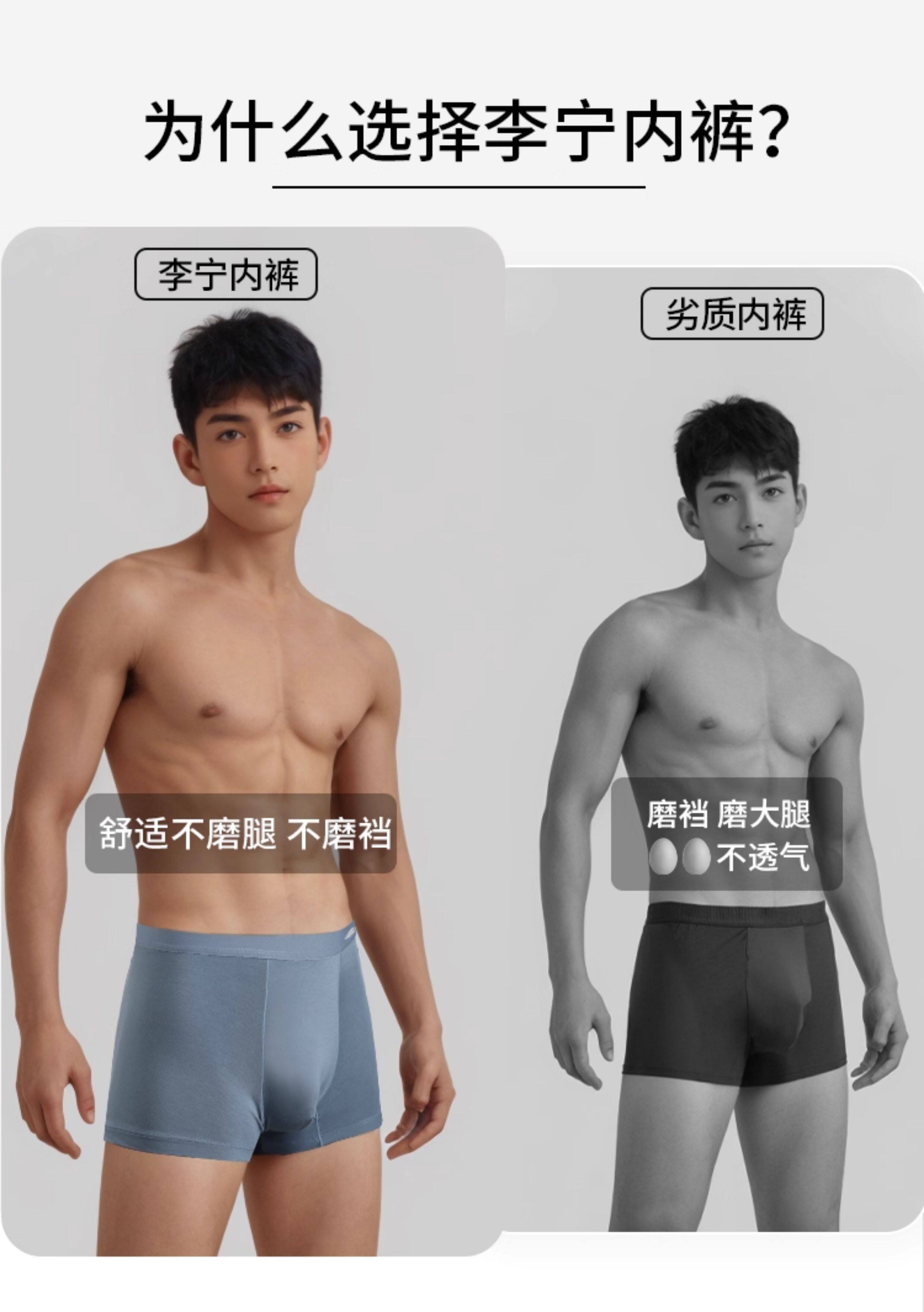 李甯運動內褲男顯大2025年新款非純棉透氣跑步健身防磨四角平角褲